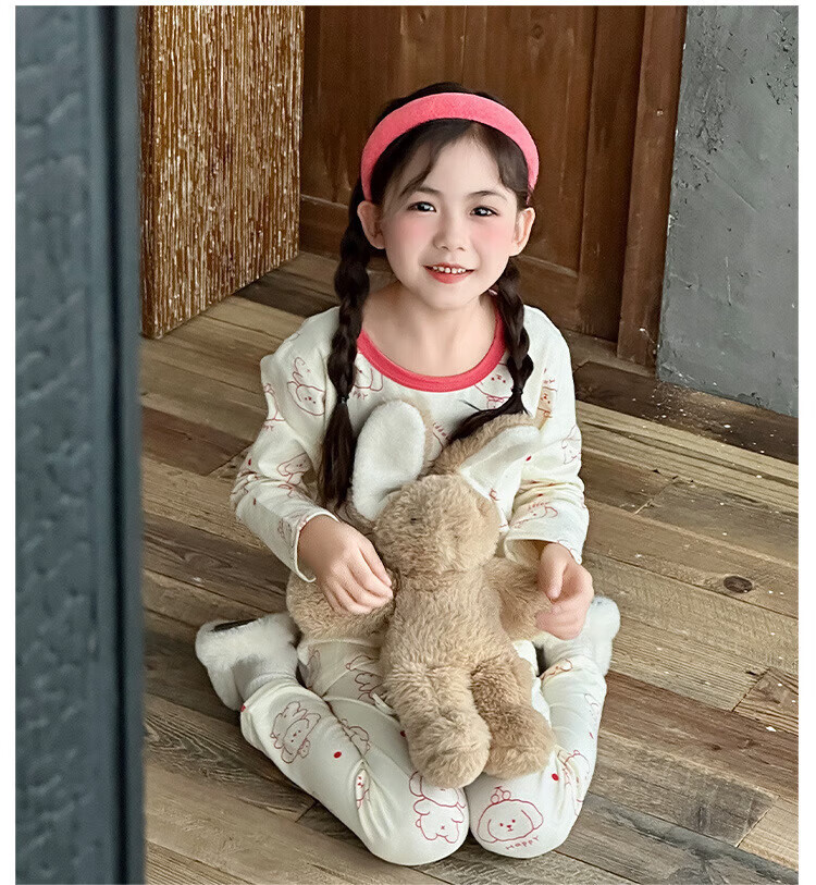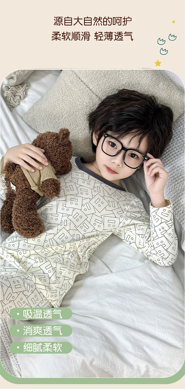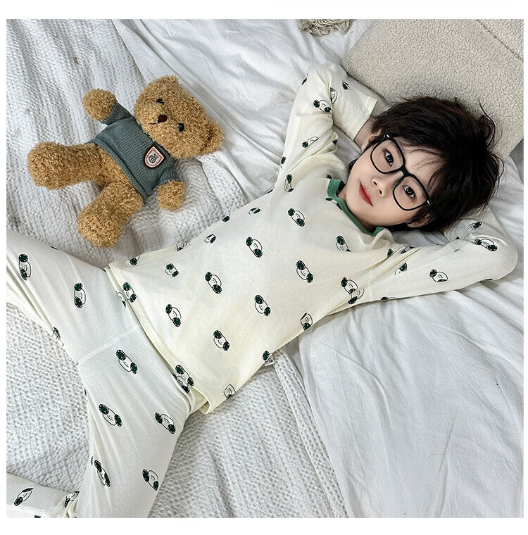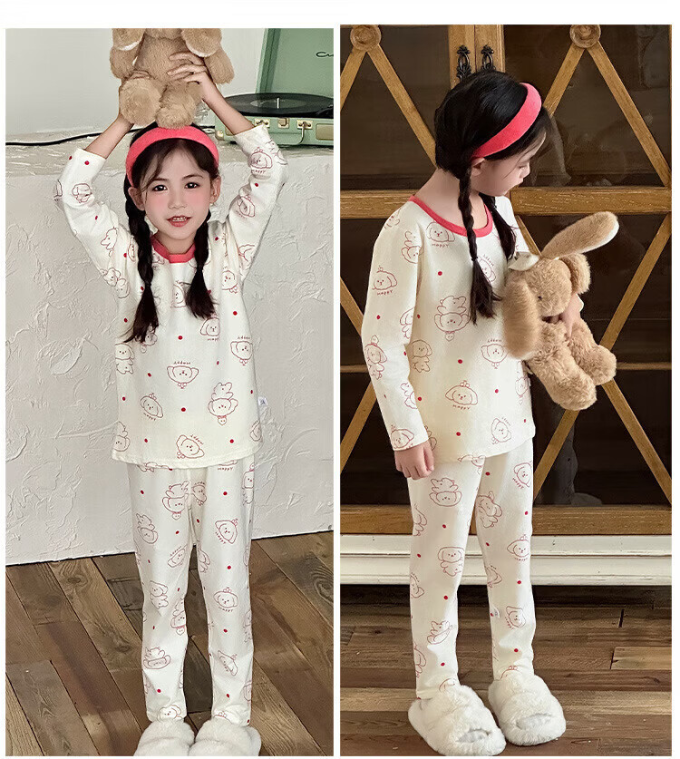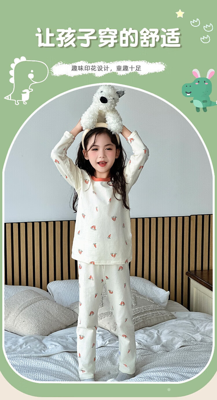 小猪班纳(PEPCO)秋冬季新款儿童睡衣套装秋衣秋裤无骨莱卡男童女童纯棉a类家居服 莱卡-烟花红苹果 80 cm 【可开档】