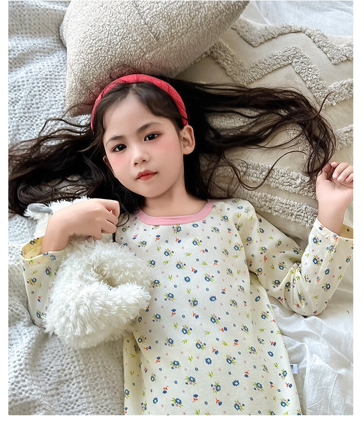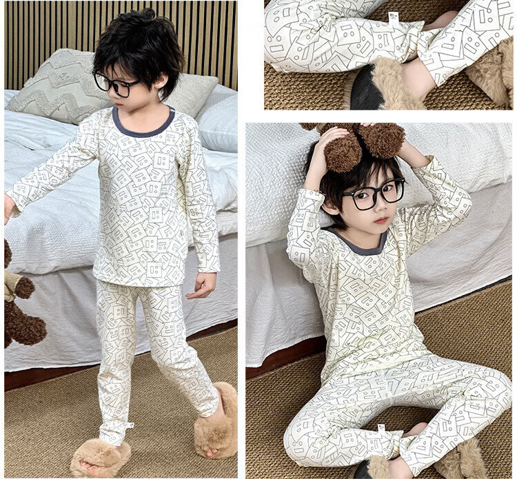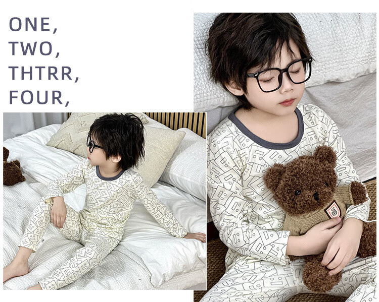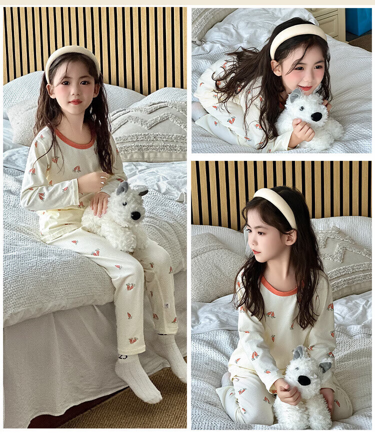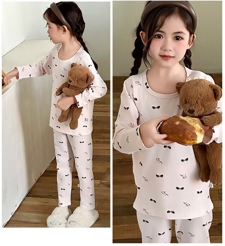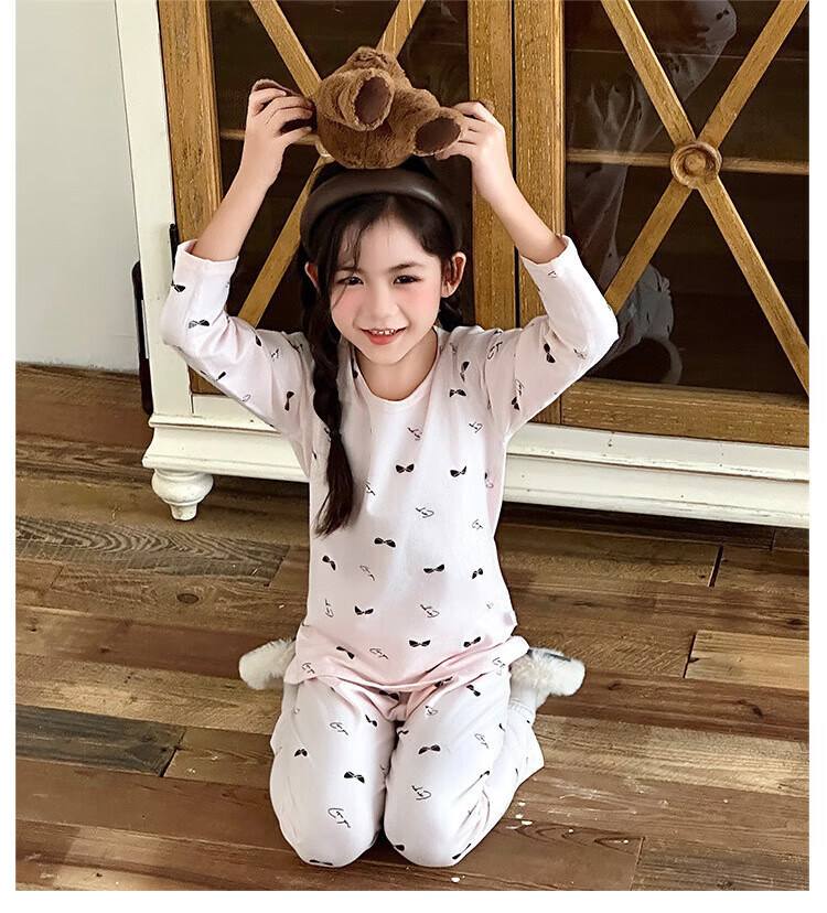 小猪班纳(PEPCO)秋冬季新款儿童睡衣套装秋衣秋裤无骨莱卡男童女童纯棉a类家居服 莱卡-烟花红苹果 80 cm 【可开档】