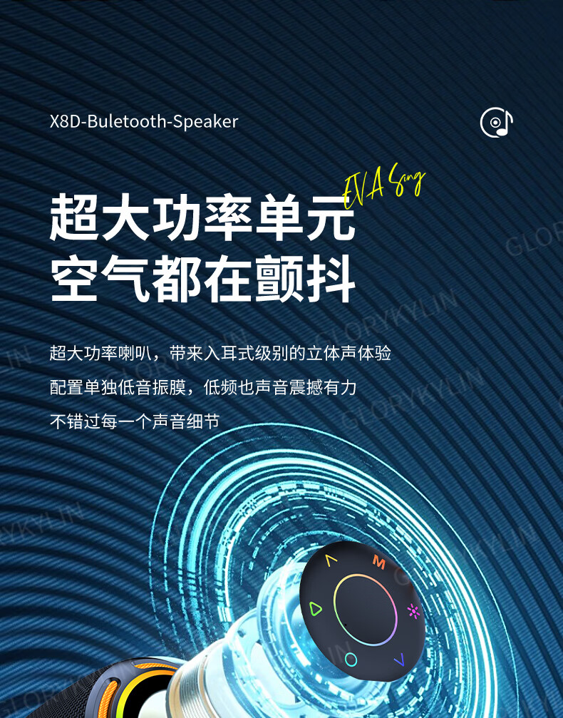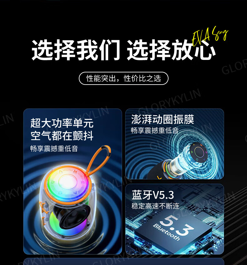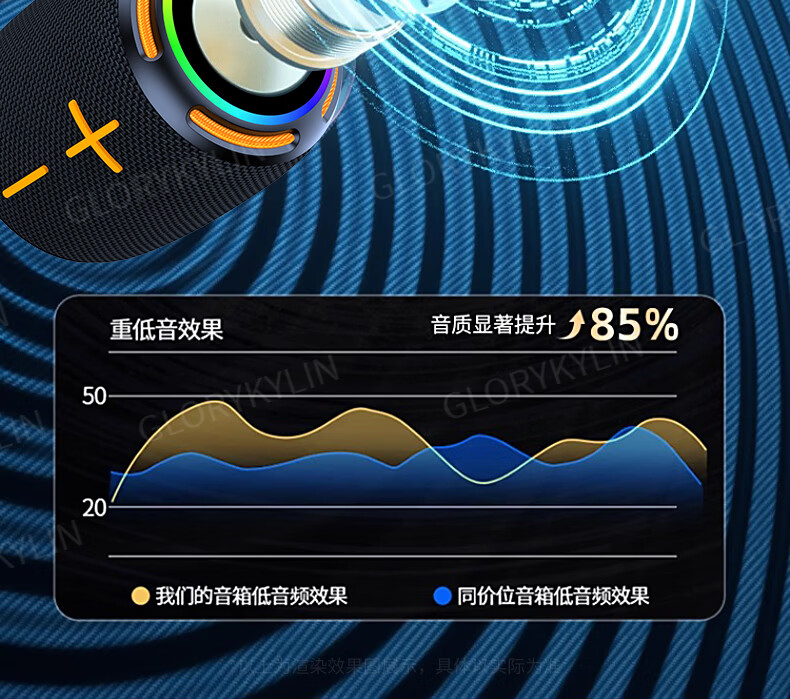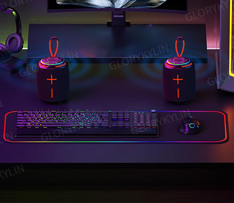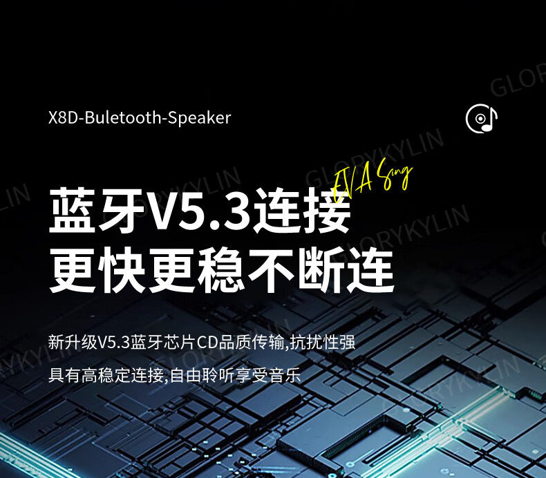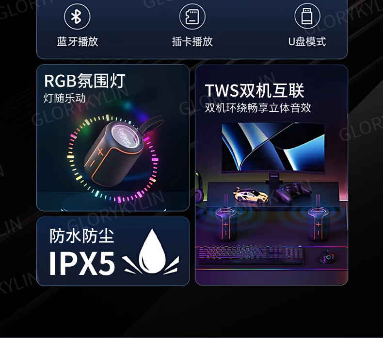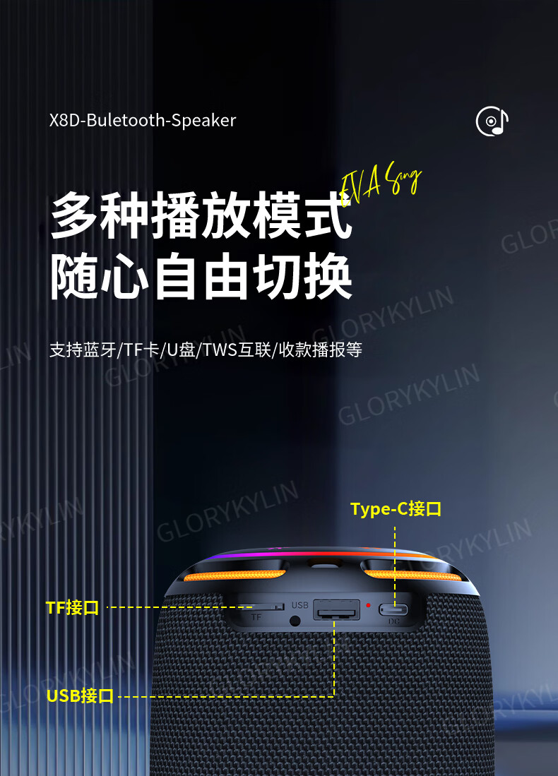 GloryKylin立体环绕音无线蓝牙音响便携重低音炮大音量TWS音箱桌面家用户外骑行车载通用超长待机支持插卡U盘 X8D炫酷黑橙【防水/防摔+360°环绕音感】 官方标配