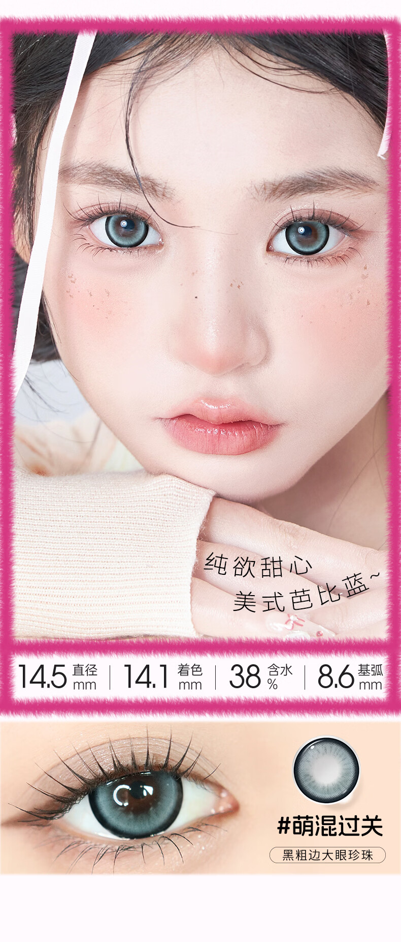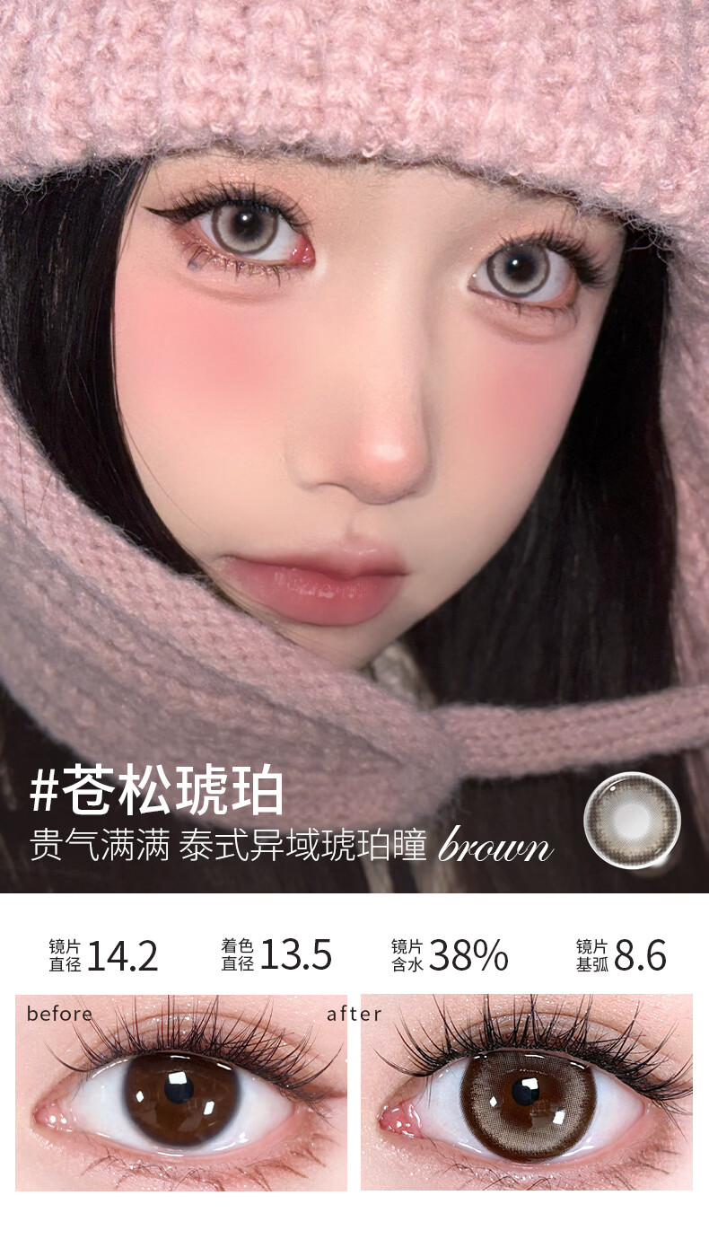 Meet FreeMeetfree美瞳半年抛蓝色棕色混血彩色隐形眼镜近视大小直径正品 快乐冒泡14.5【甜妹风】 0度