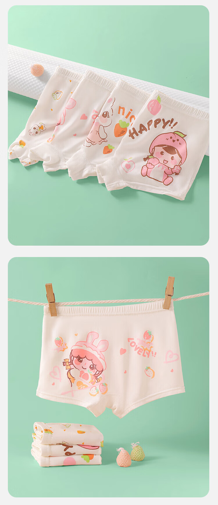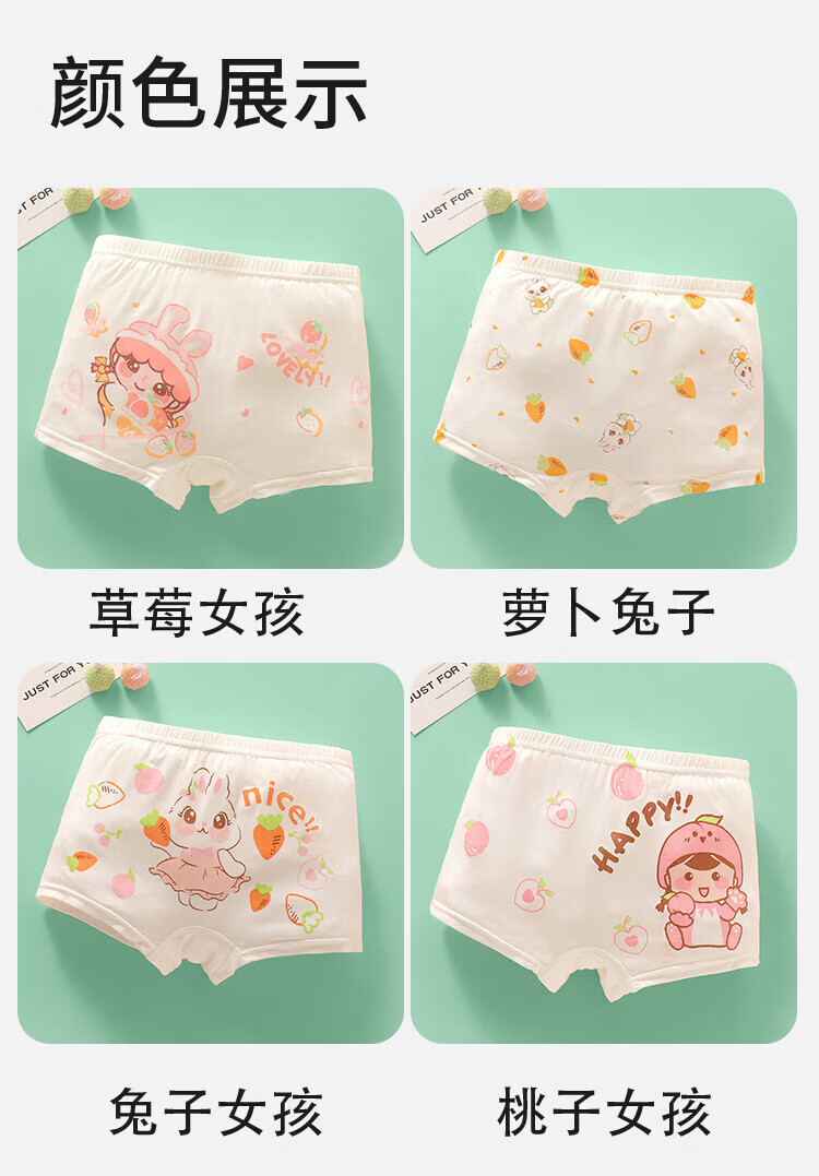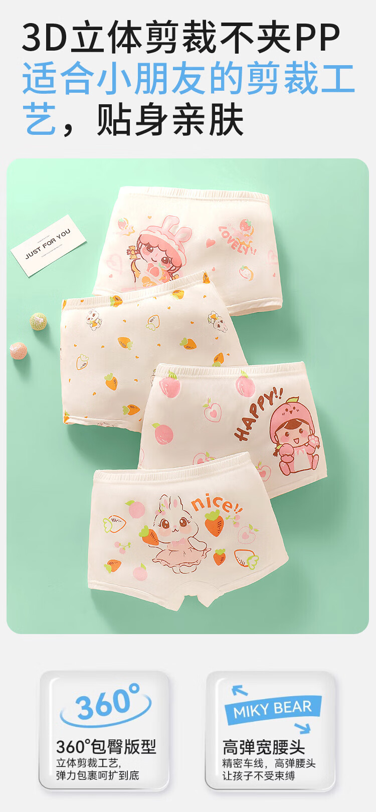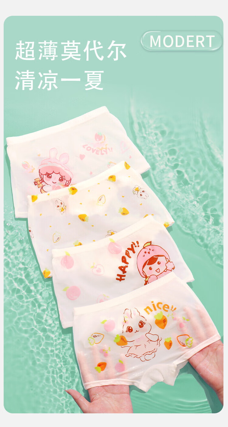 MQDMINI儿童内裤女宝宝四角短裤抗菌女童女孩莫代尔平角裤中大童 兔子女孩GK307-四件装 均码 S码1-3岁15-25斤