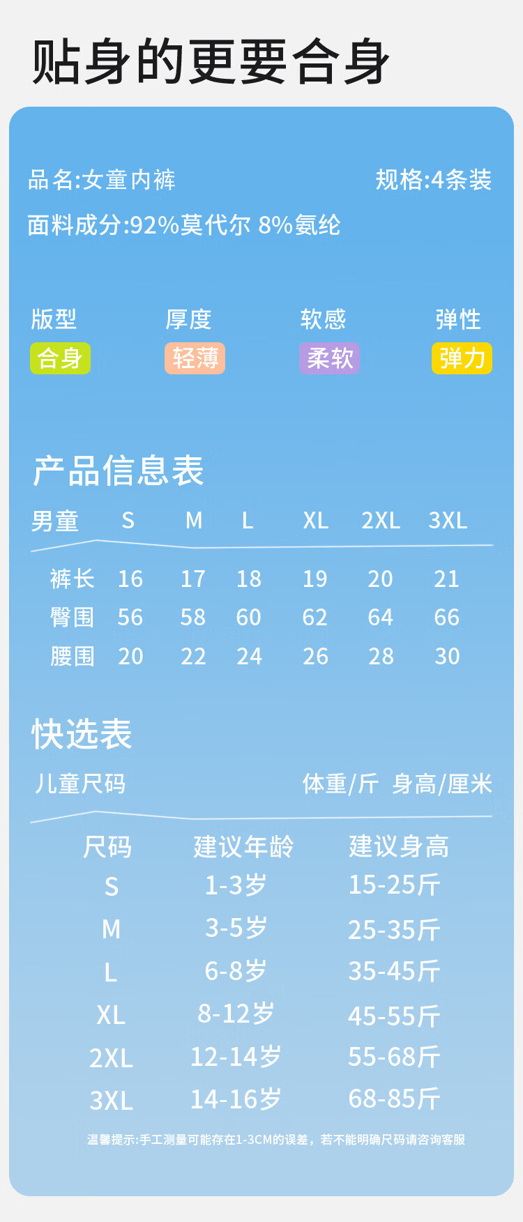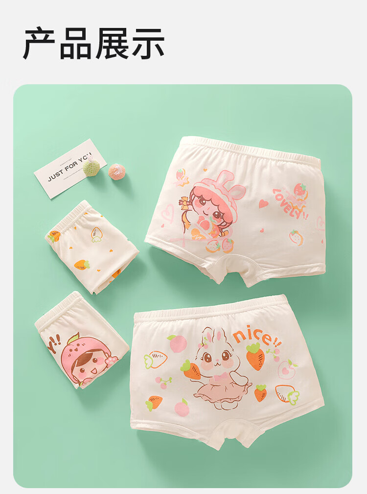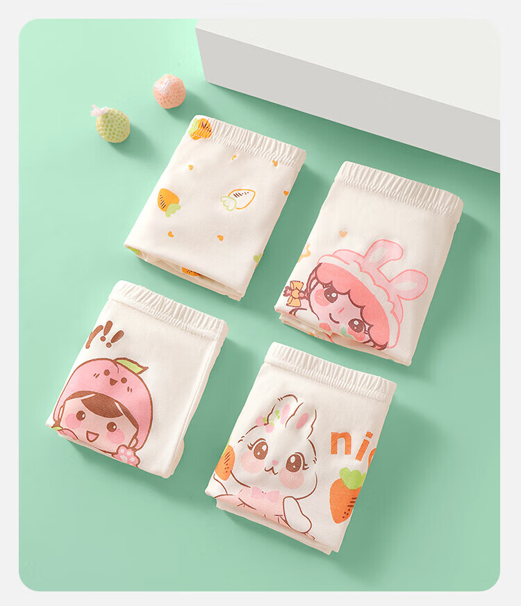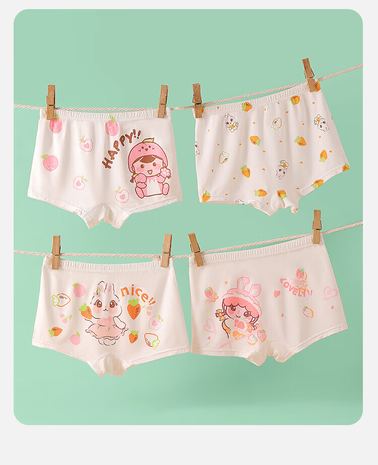 MQDMINI儿童内裤女宝宝四角短裤抗菌女童女孩莫代尔平角裤中大童 兔子女孩GK307-四件装 均码 S码1-3岁15-25斤