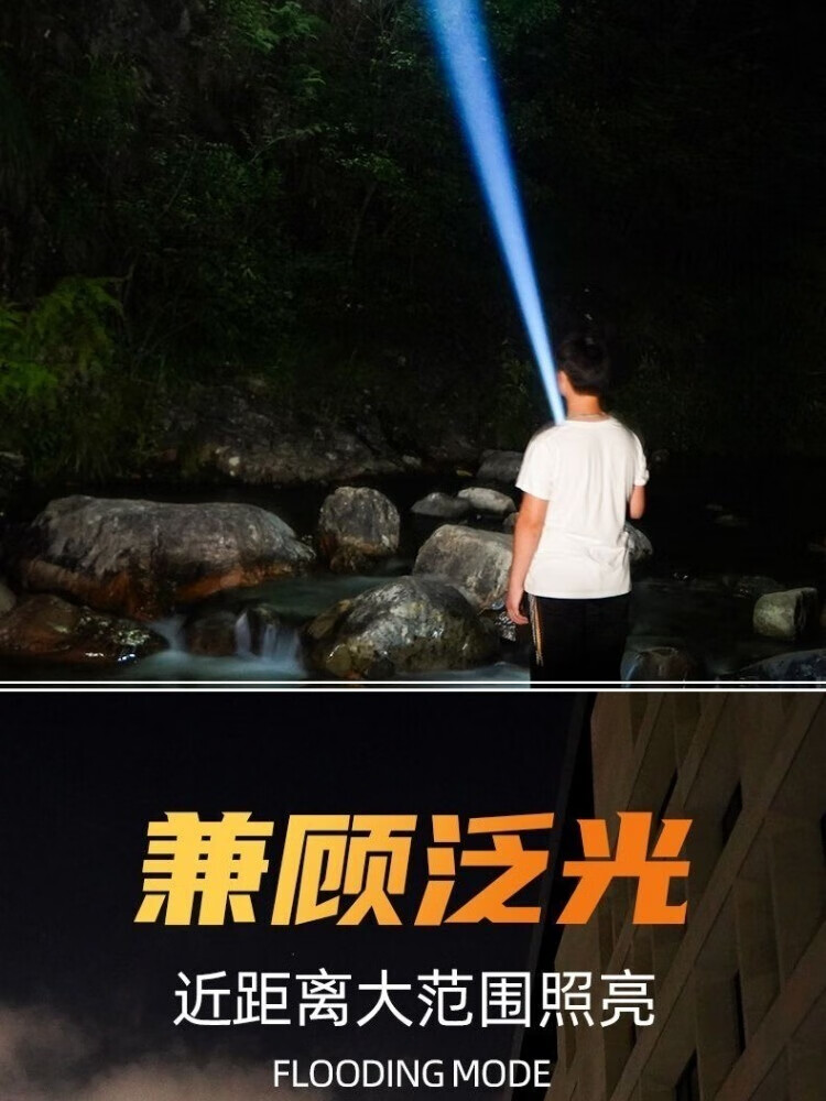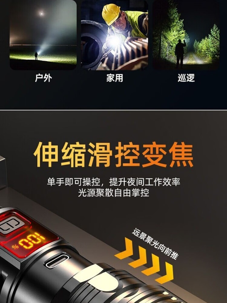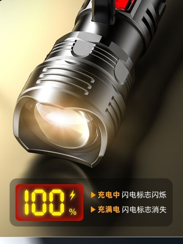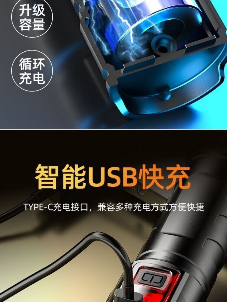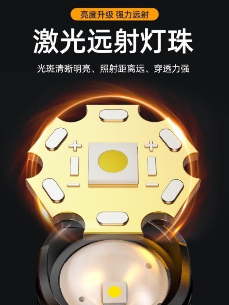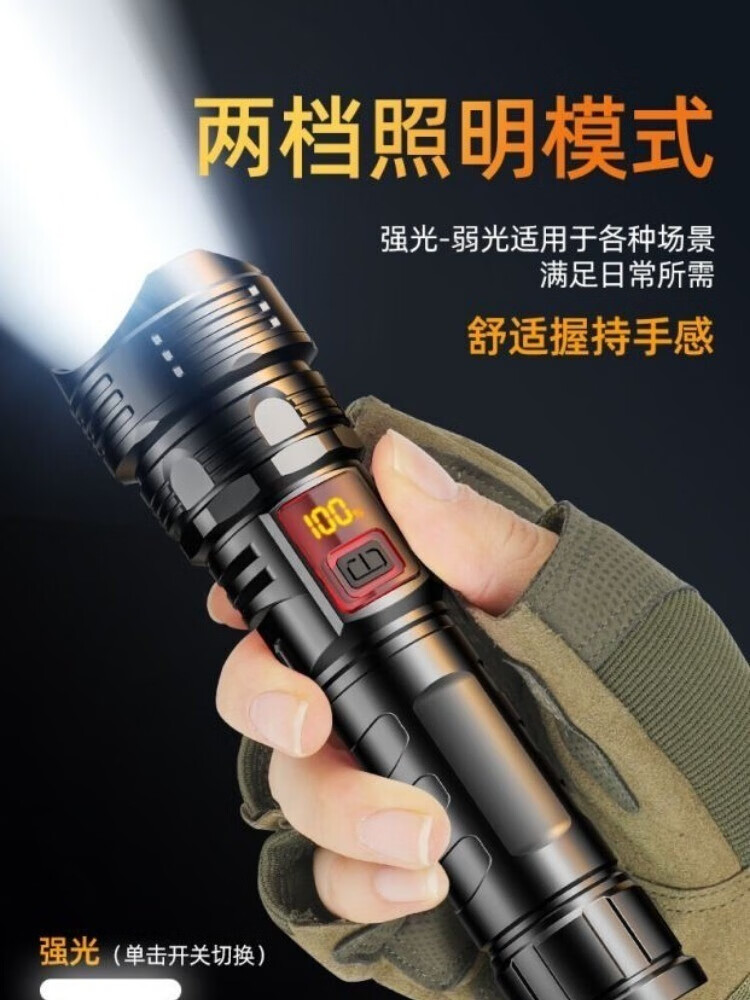 义虎手电筒强光充电长续航户外变焦小便携迷你超亮远射照明灯家用耐用 至尊S+【99W激光爆亮芯】待680天