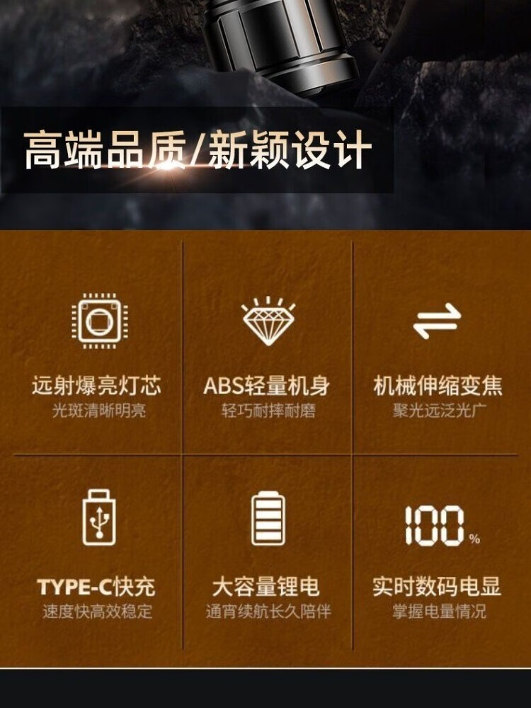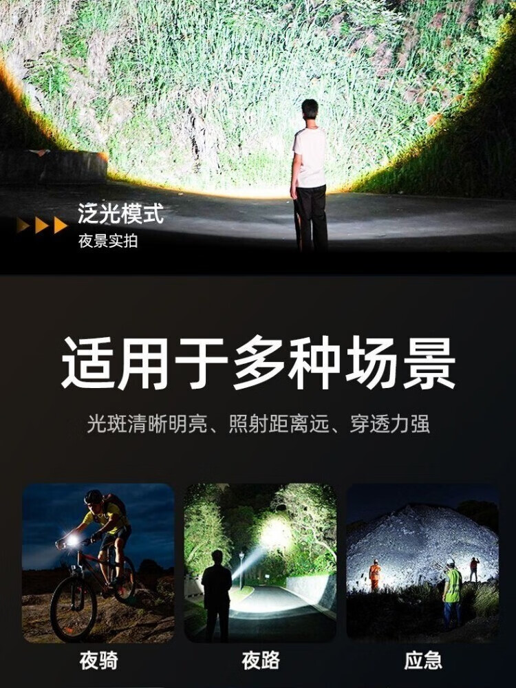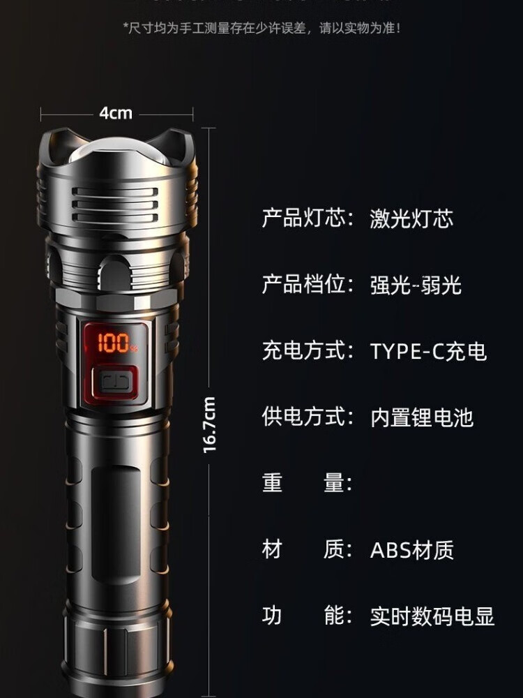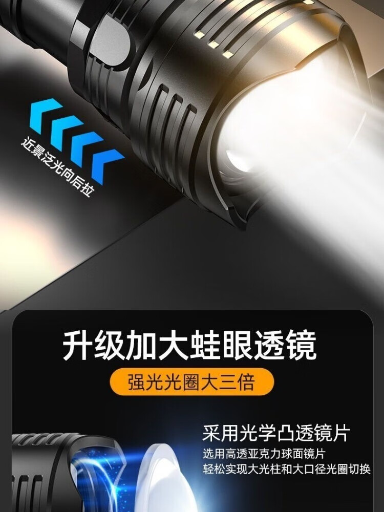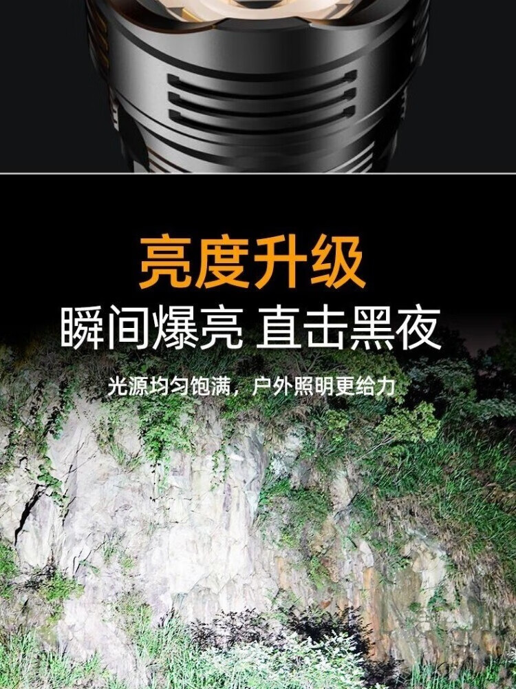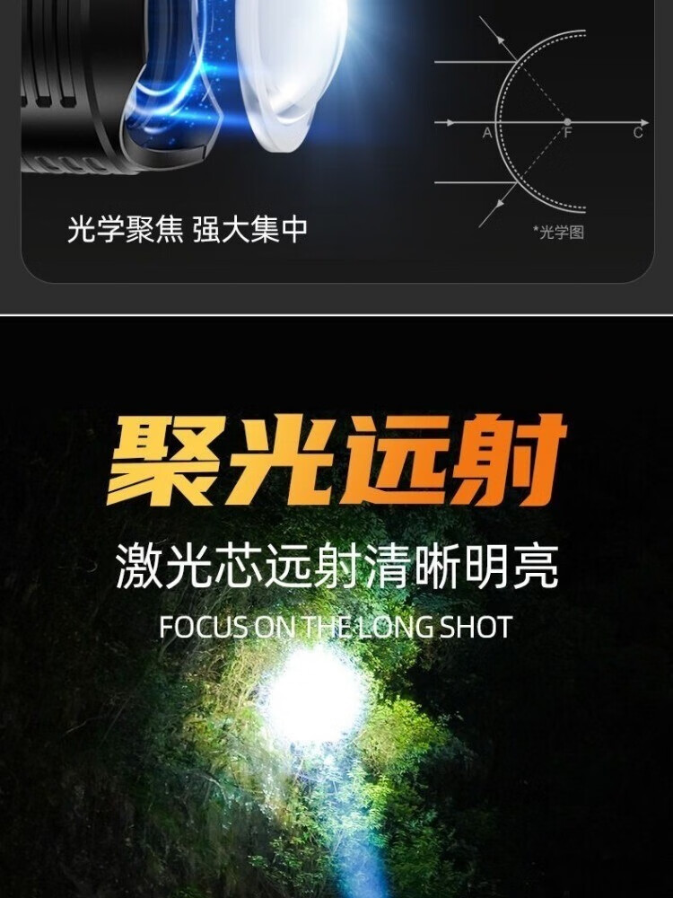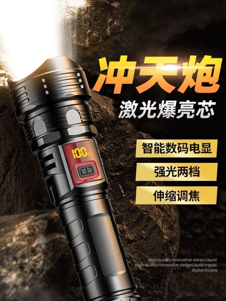 义虎手电筒强光充电长续航户外变焦小便携迷你超亮远射照明灯家用耐用 至尊S+【99W激光爆亮芯】待680天