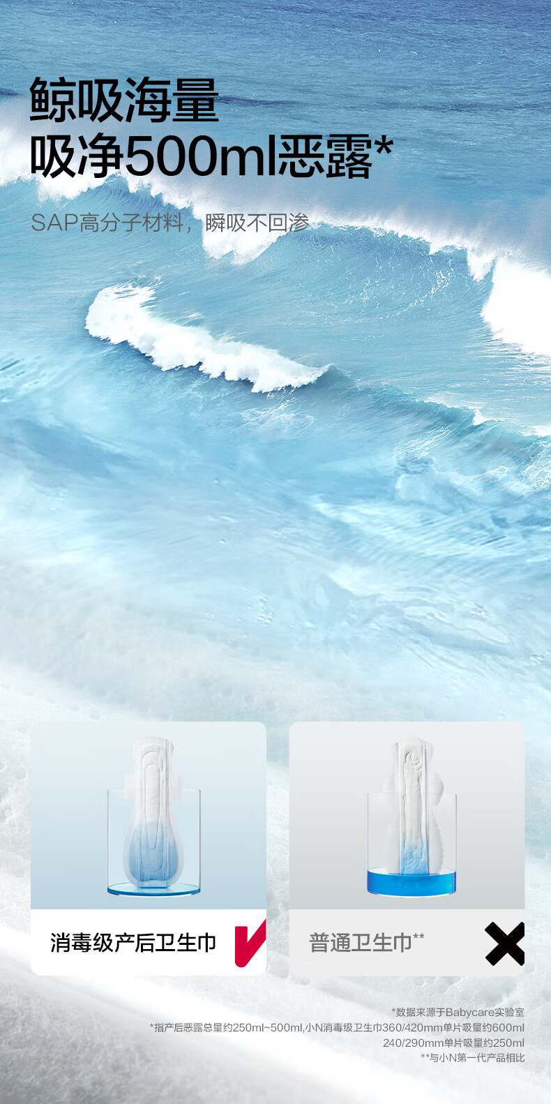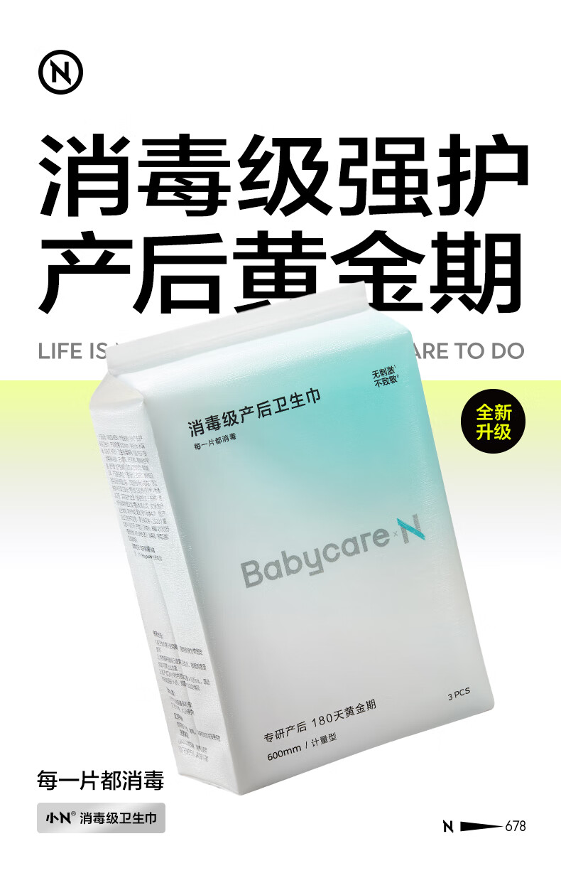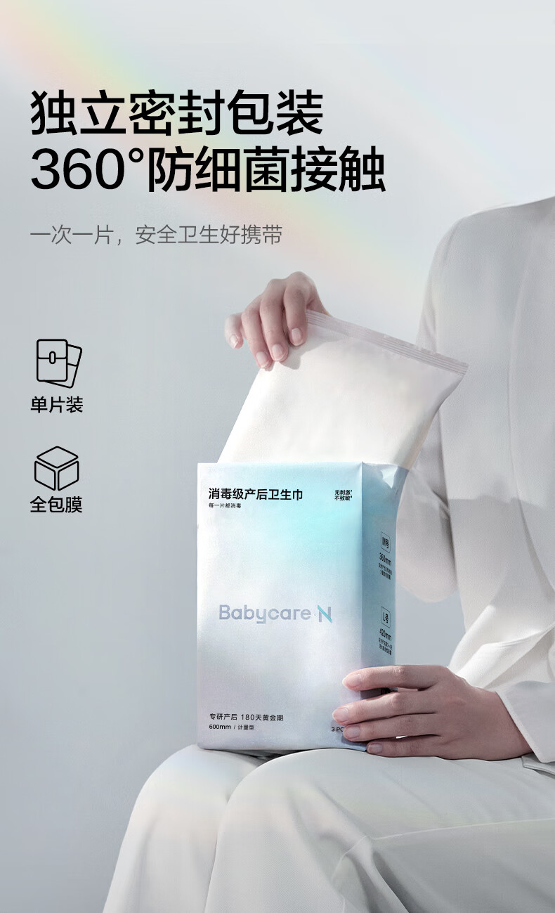 babycare消毒级产妇计量型卫生巾带秤产褥期恶露裤型加长京东自营600mm3片