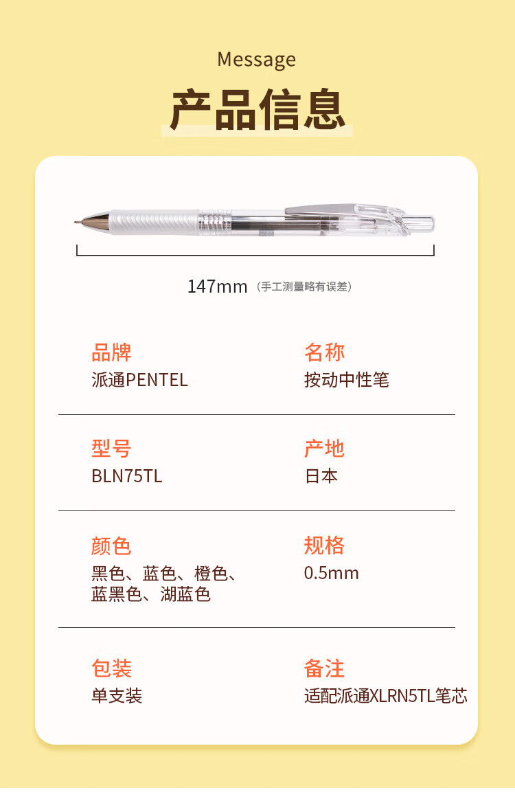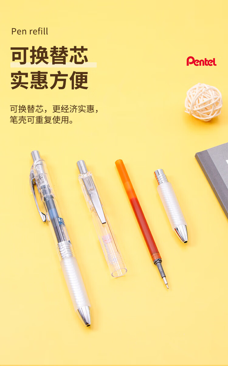 派通(Pentel )【热门商品】 BLN75TL按动中性笔高颜值0.5mm针管签字笔商务学生速干水笔水性笔文具 黑色单支装