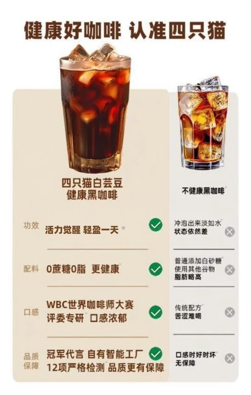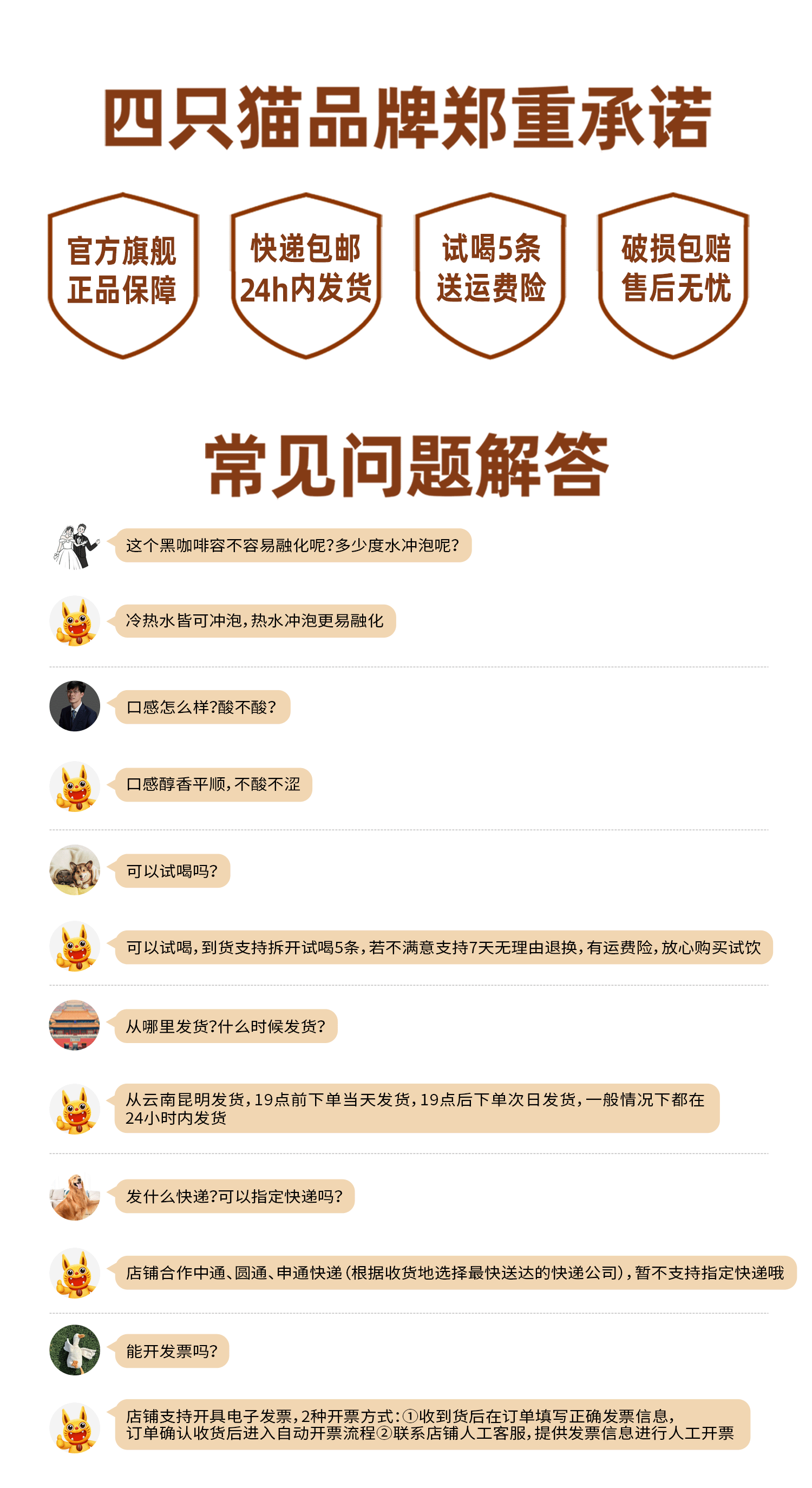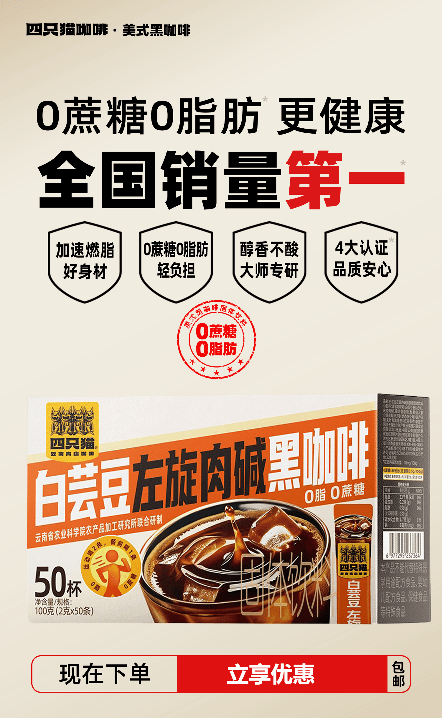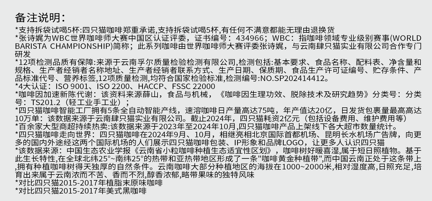 四只猫咖啡白芸豆左旋肉碱黑咖啡 速溶咖啡粉 办公健身搭档2g*50条/袋 白芸豆左旋肉碱 黑咖啡 50条