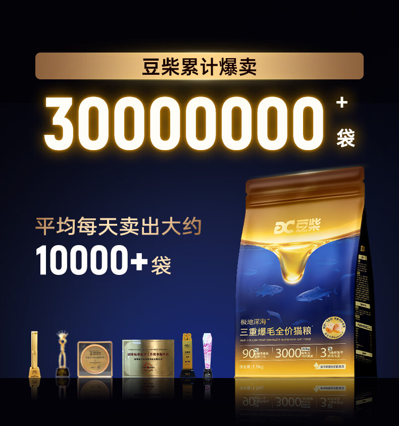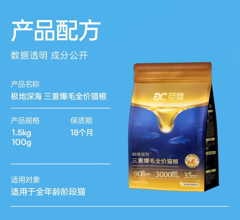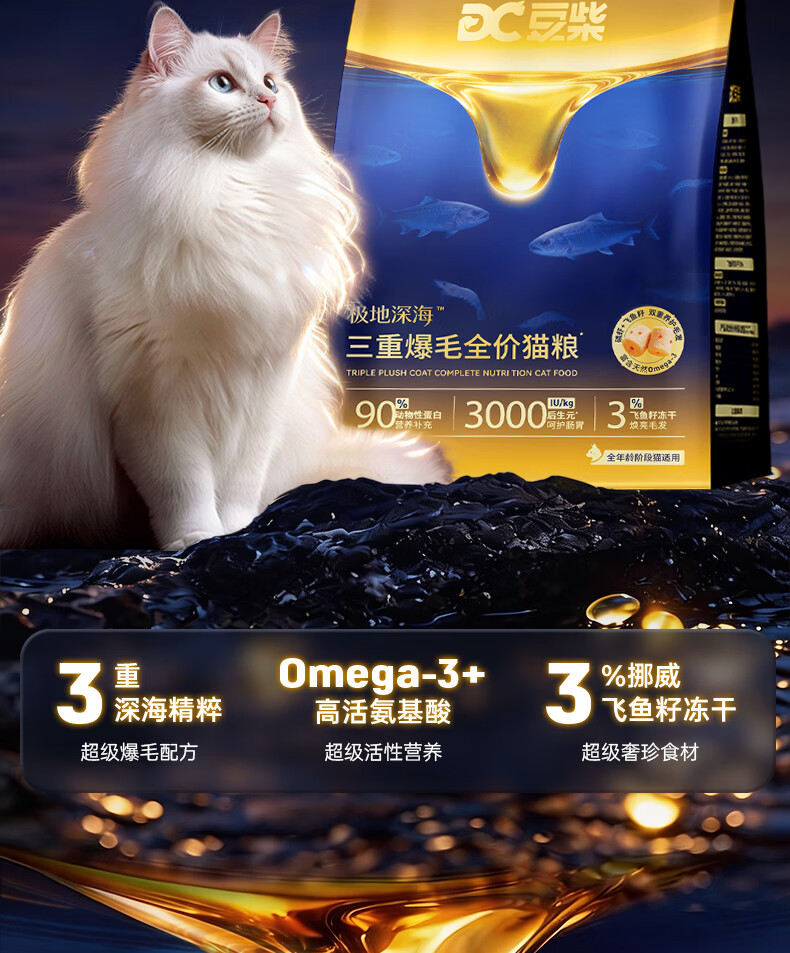 豆柴(docile)三重爆毛全价猫粮 深海鱼虾美毛护肤 生骨肉冻干鲜肉成幼猫1.5kg