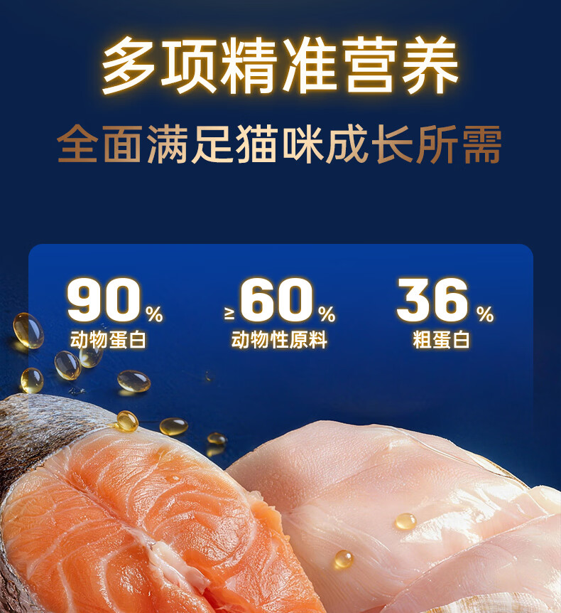 萌宝欢 猫粮 鸡肉 三文鱼 鱼油全价全阶段通用猫粮 高肉亮毛护肠 2.5kg*1【单袋装】