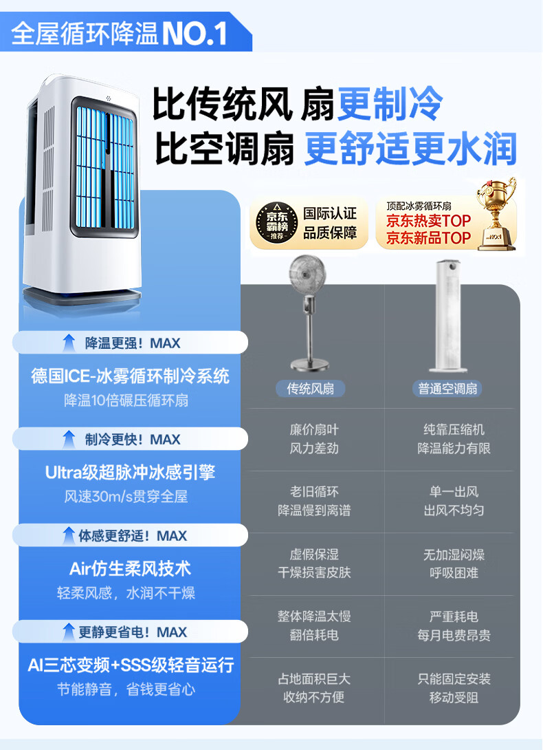 唯品森活【厨房降温专用丨热销100W】厨房风扇制冷空调扇小型空气循环冰雾扇卧室台式桌面无叶电扇静音加湿 【至尊款】高速散热丨防油烟丨节能低噪 2026顶配升级丨ICE冰雾制冷【30天试用】