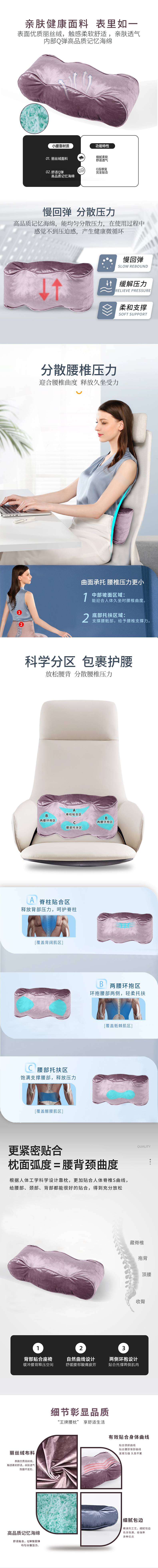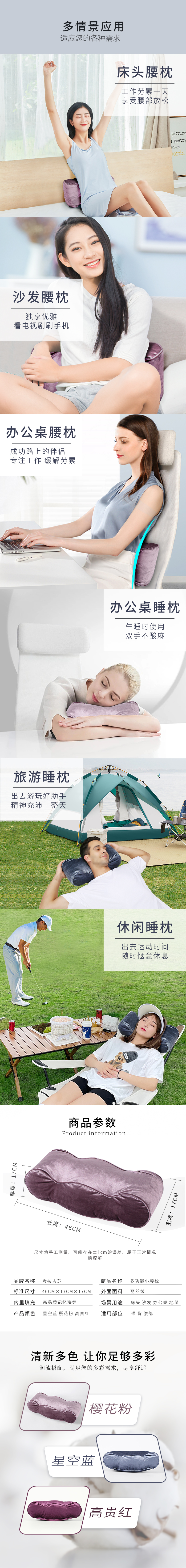 考拉吉苏 腰垫护腰靠垫腰托沙发靠枕人体工学午睡觉腰枕办公室腰枕旅行枕 豆沙紫