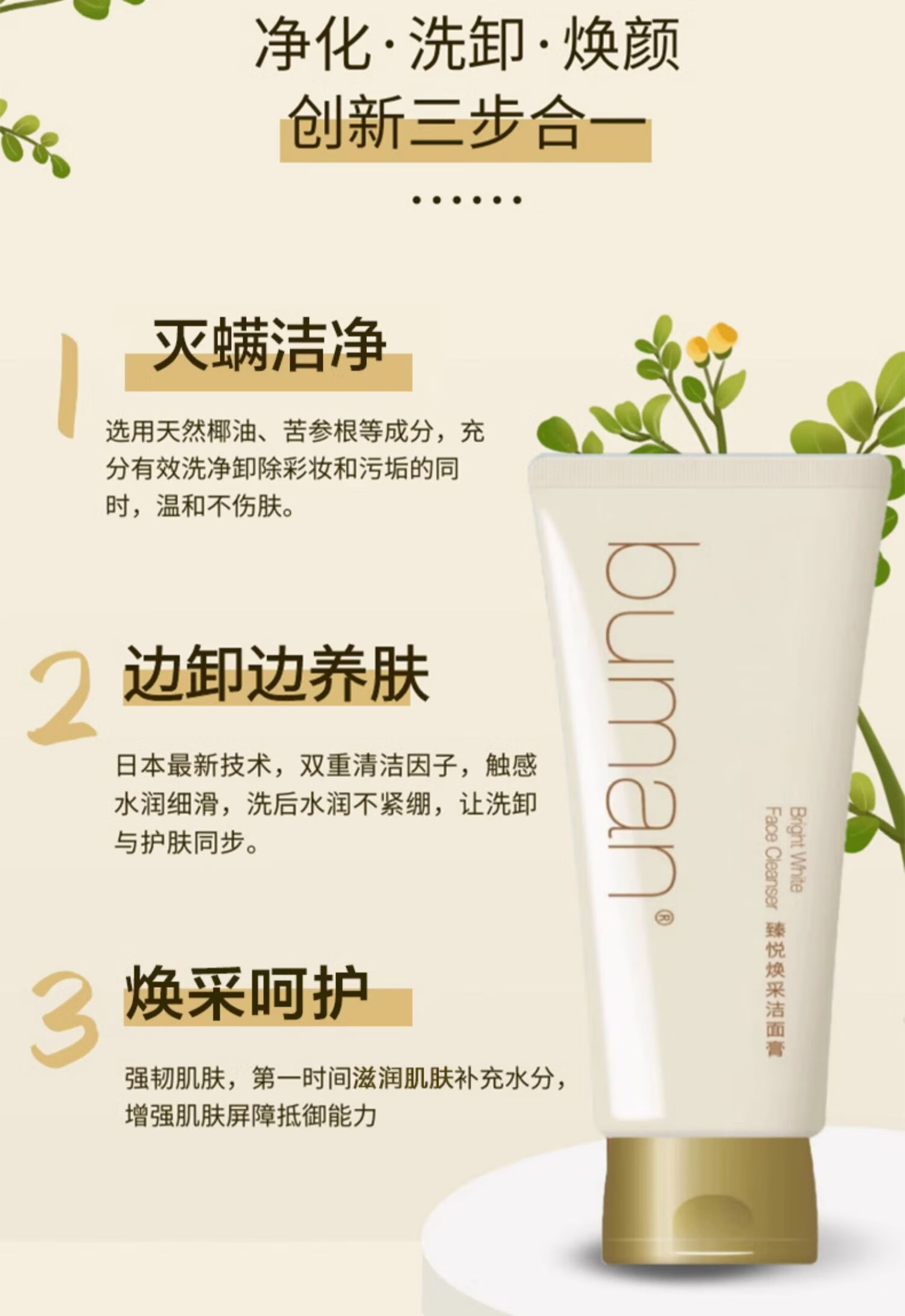 BUMAN不螨臻悦焕采精萃水男乳霜洁面水平不螨洗面奶女面霜水润护肤品 洁面+精萃液+精萃乳+精萃霜