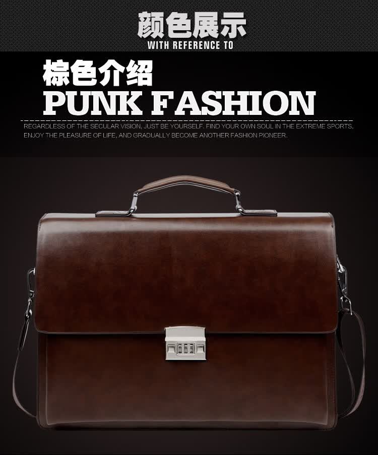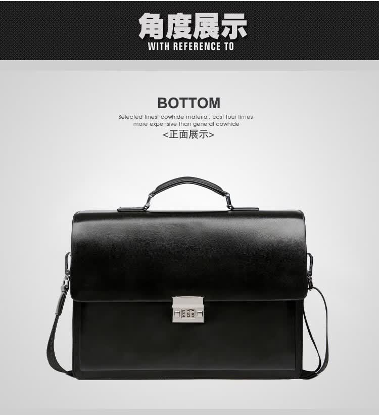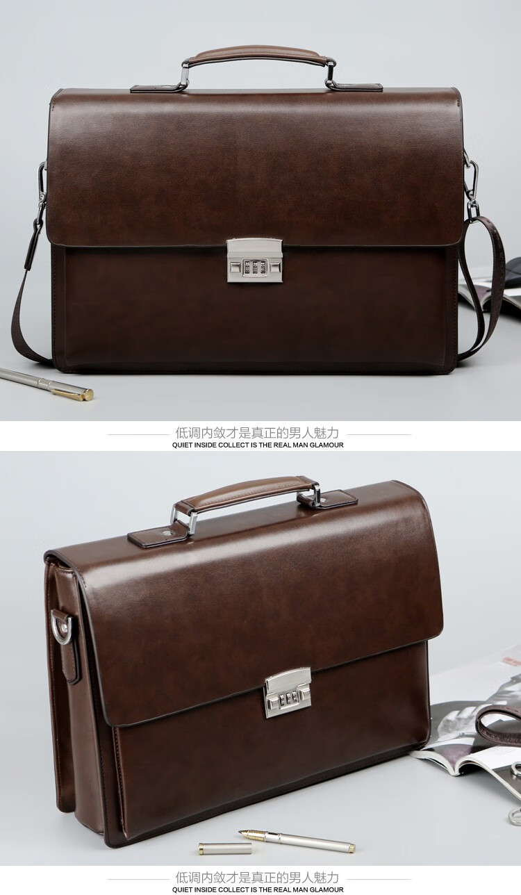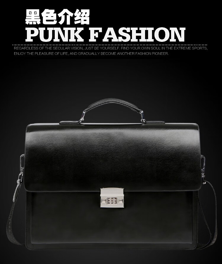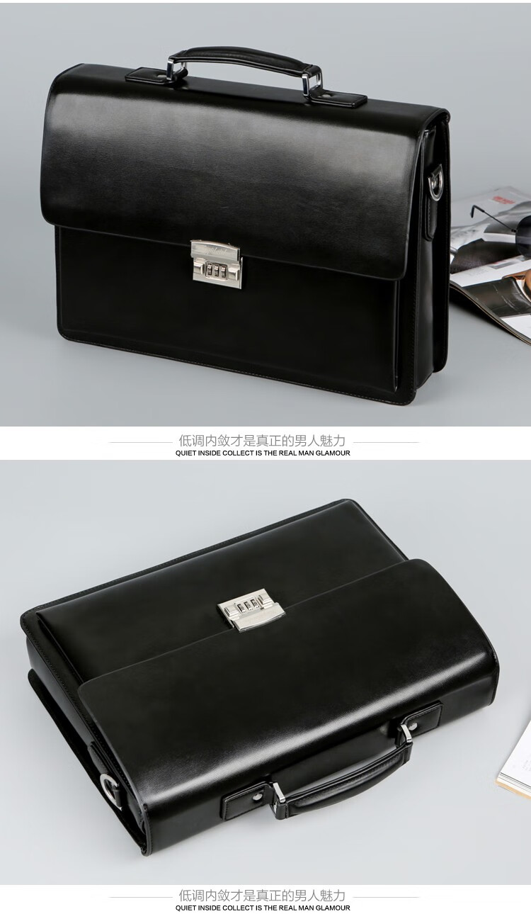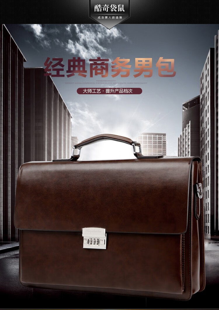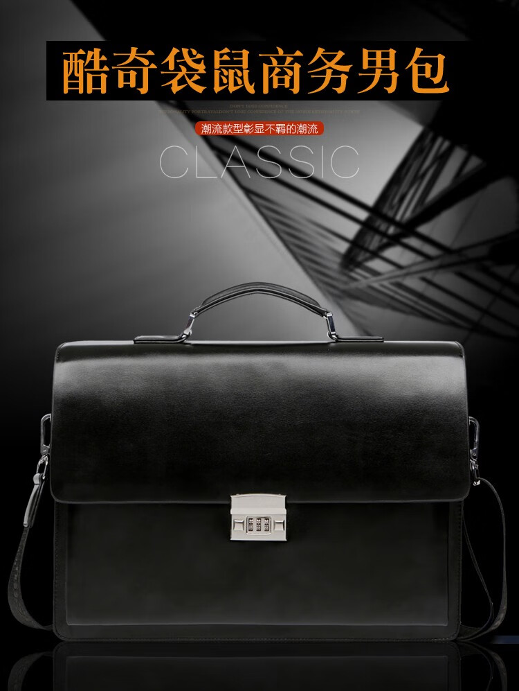 酷奇男包轻奢品牌商务公文包男士单肩包大容量文件夹带密码锁手提包防泼水14英寸笔记本电脑包男多隔层 黑色68069-38