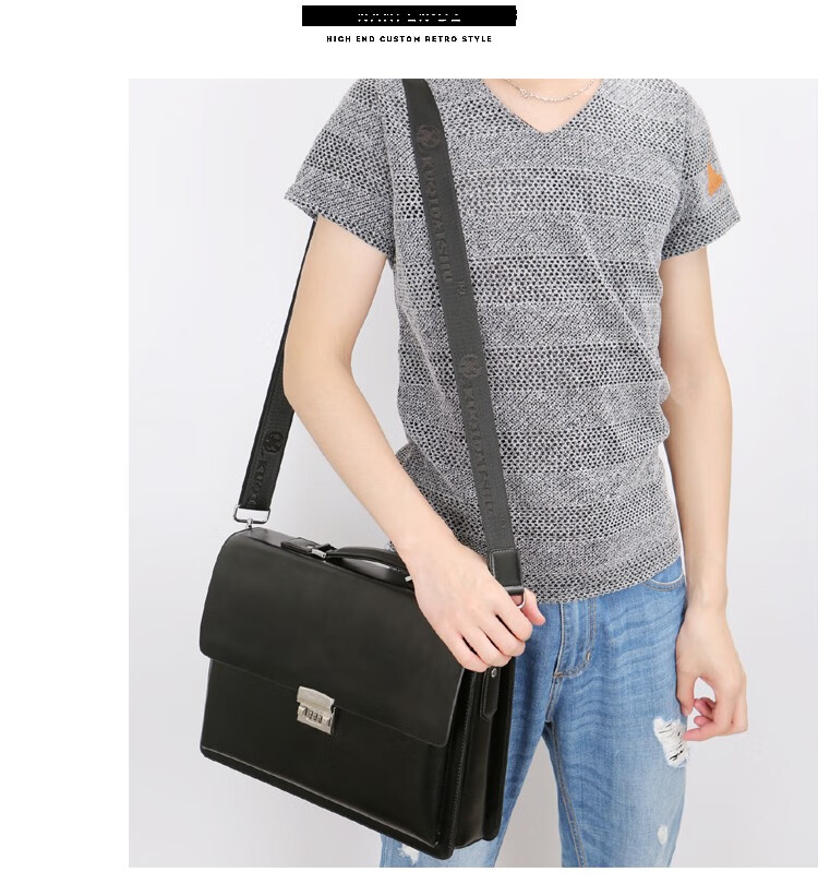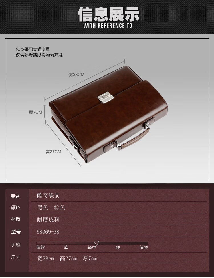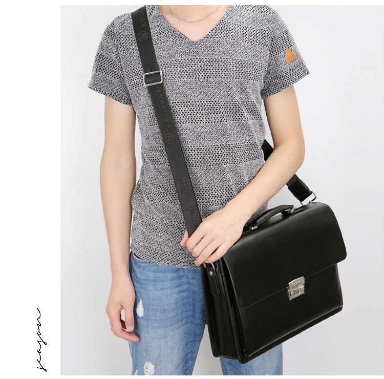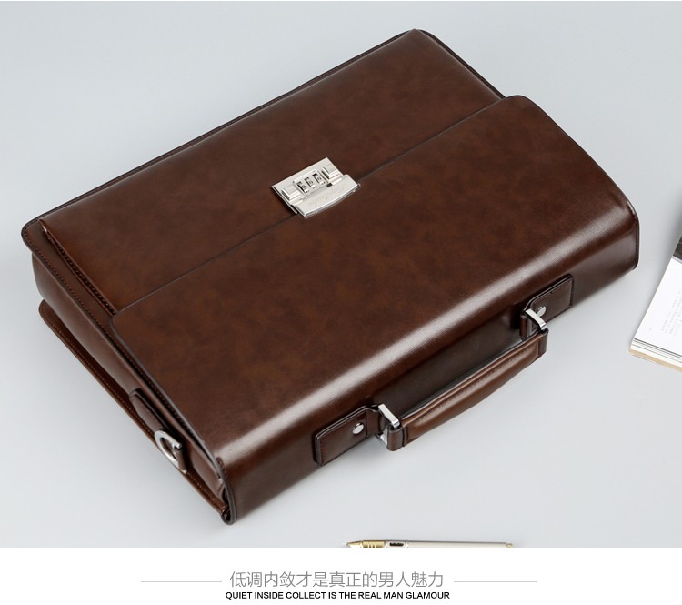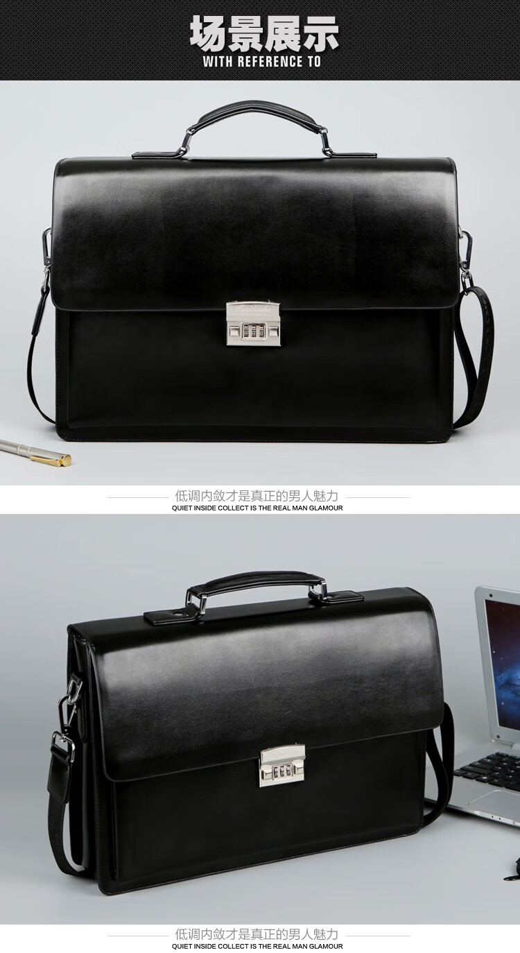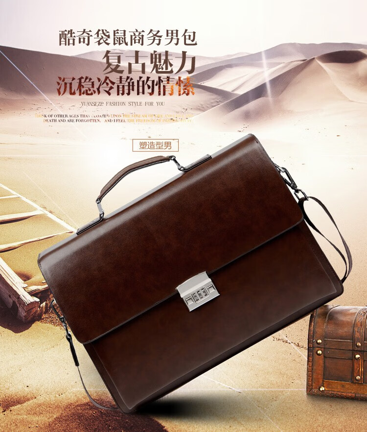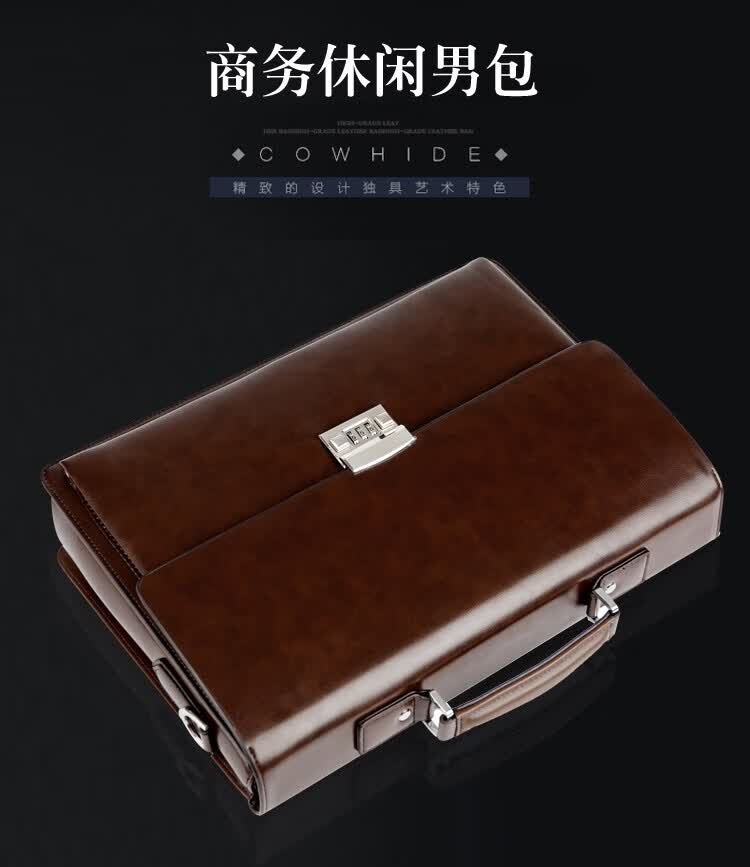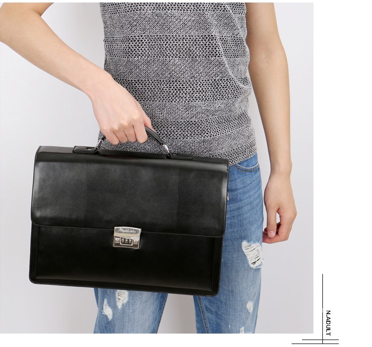 酷奇男包轻奢品牌商务公文包男士单肩包大容量文件夹带密码锁手提包防泼水14英寸笔记本电脑包男多隔层 黑色68069-38
