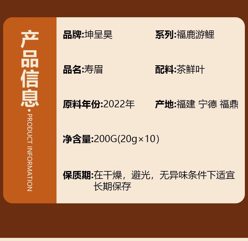 坤呈昊寿眉 紧压白茶 茶叶白茶礼盒 龙蟠寿眉 2022寿眉319g*1饼【4年陈化】