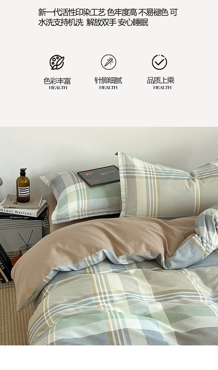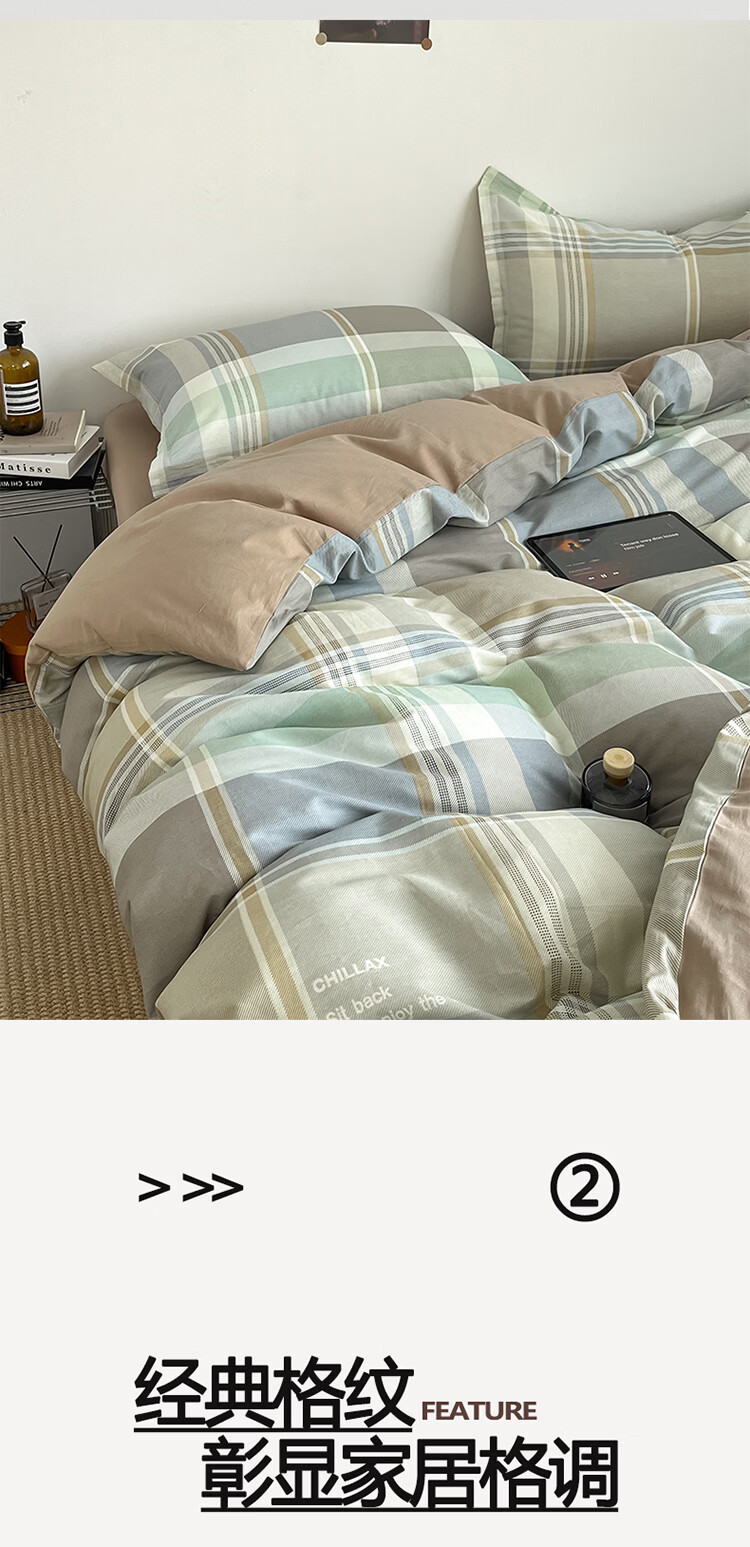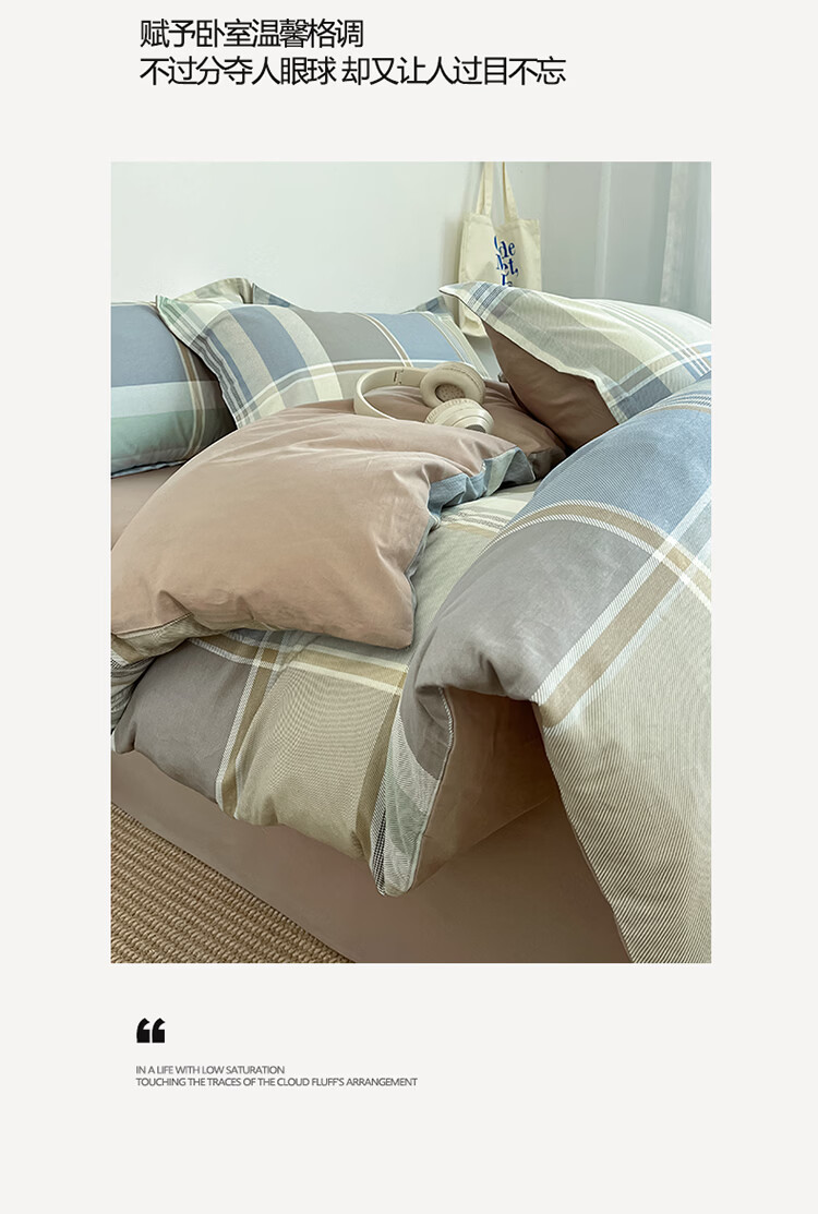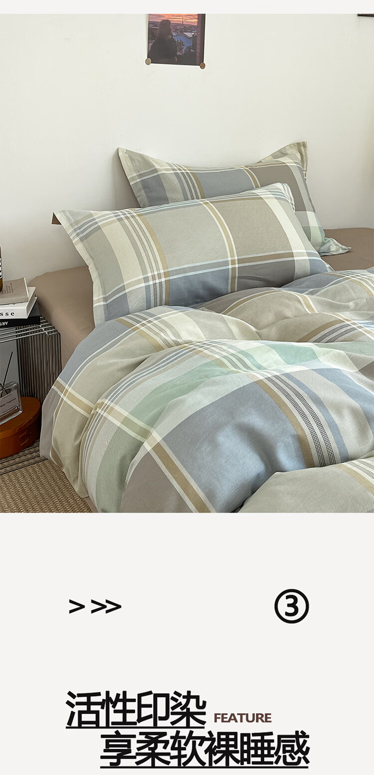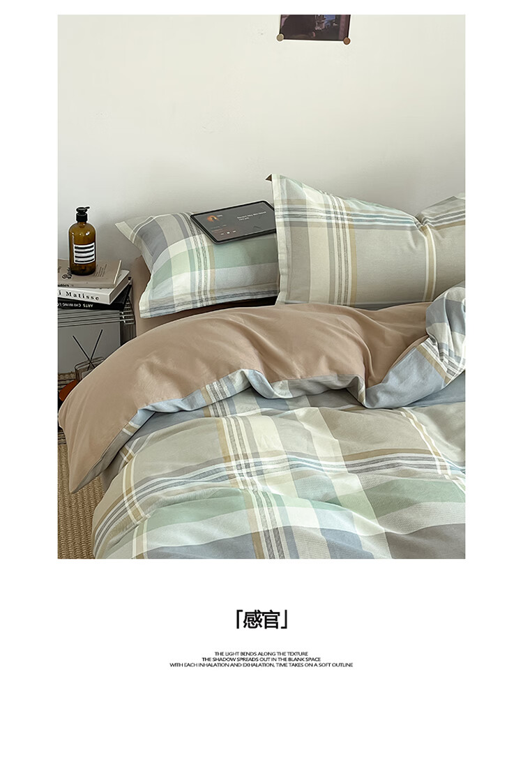 无印良品简约全棉床上四件套纯棉100%四季通用可裸睡被套床单床笠款三件套 文景【100%全棉 舒适简约】 1.2m 床笠款 三件套-被套160*210cm