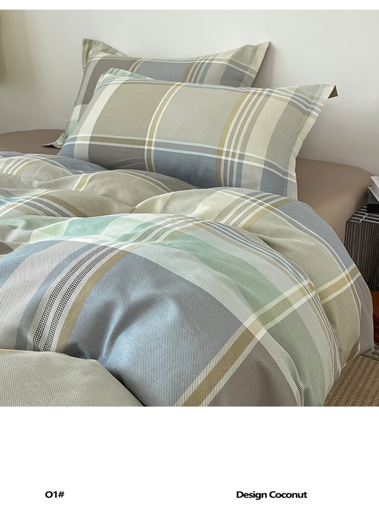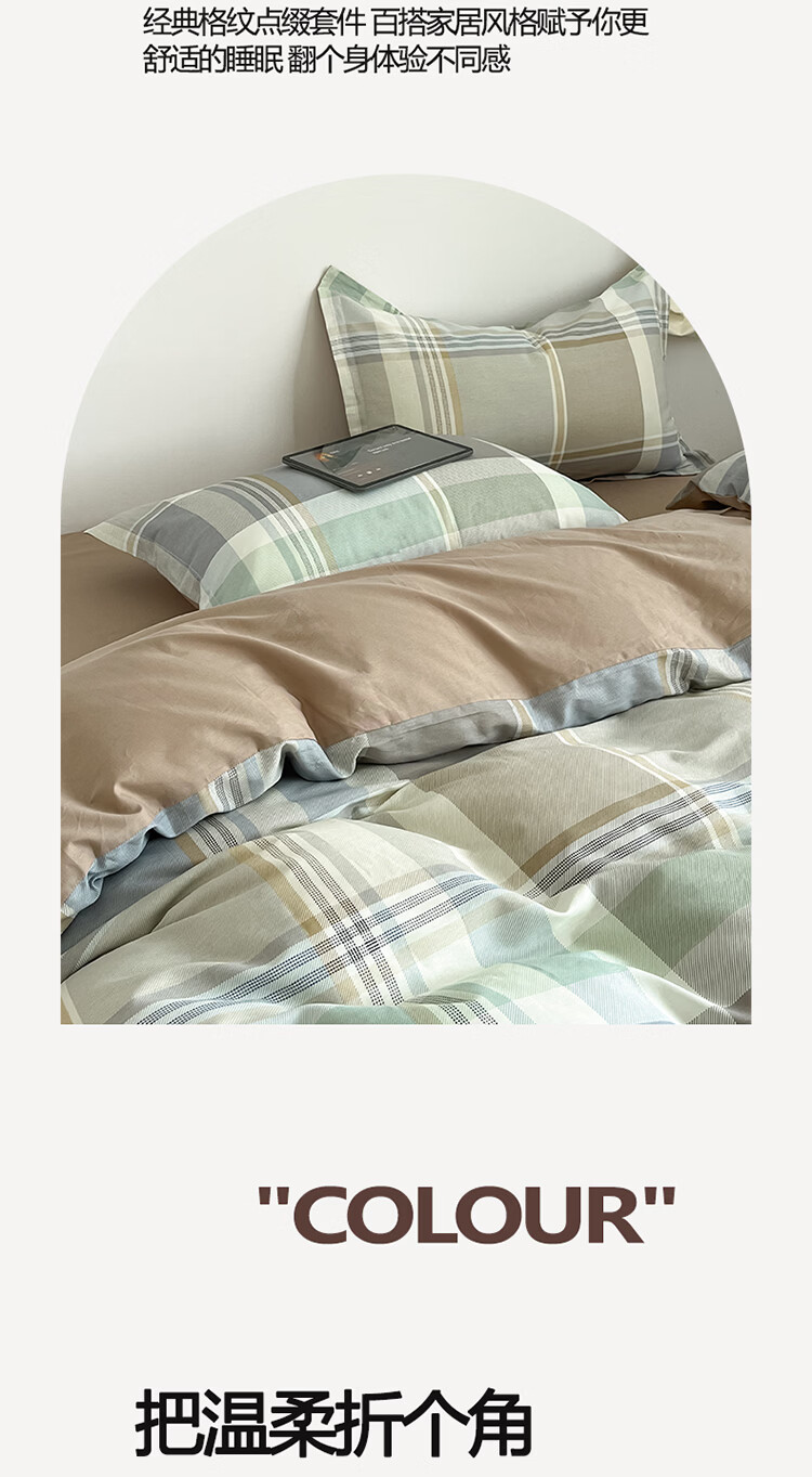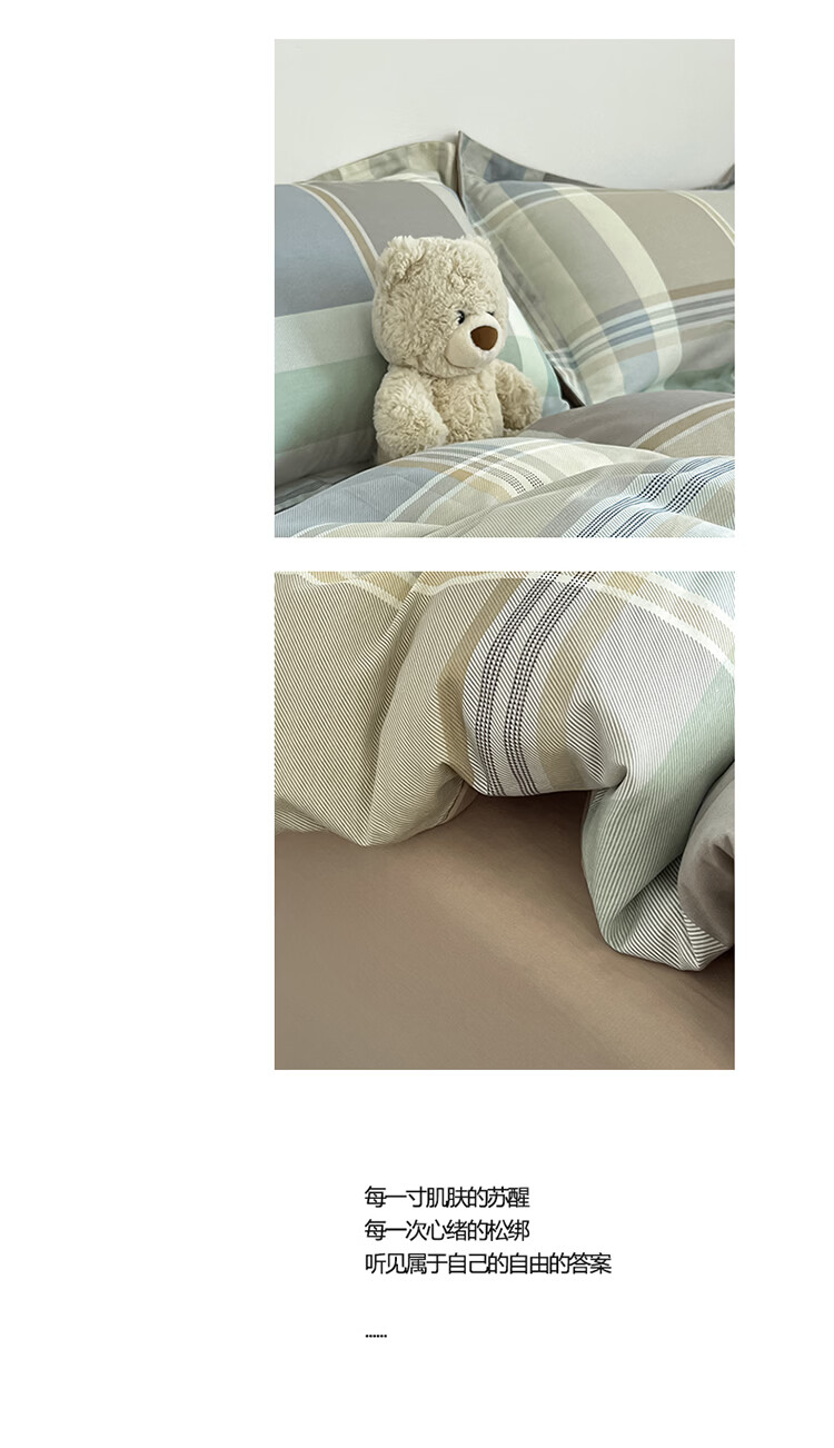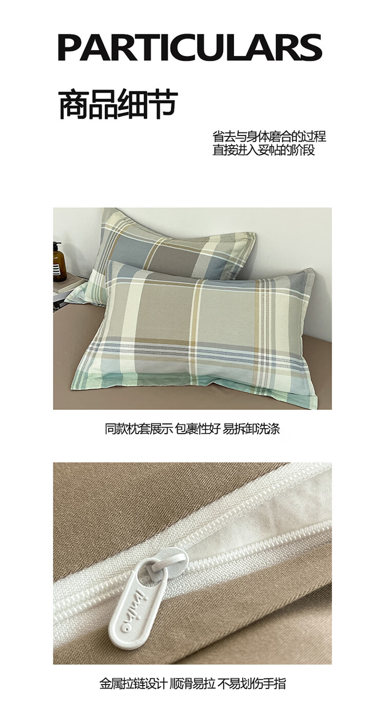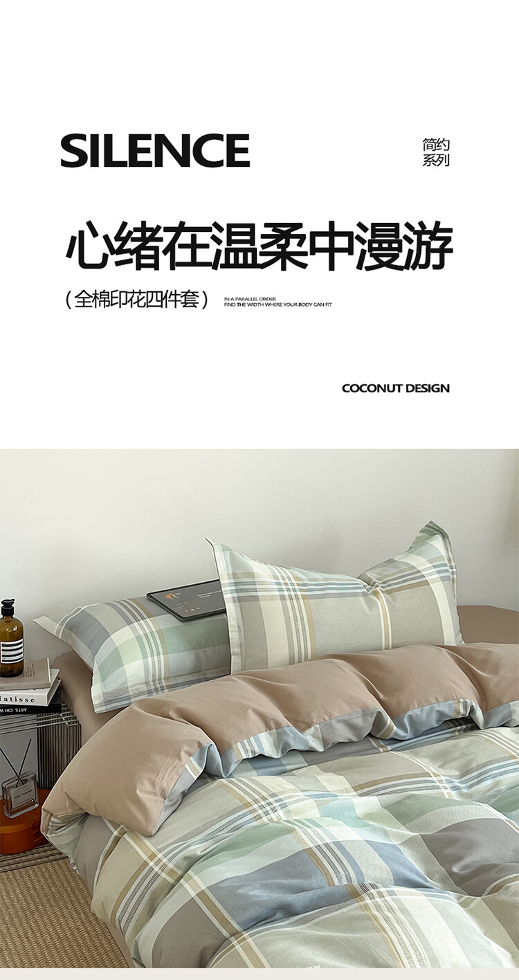 无印良品简约全棉床上四件套纯棉100%四季通用可裸睡被套床单床笠款三件套 文景【100%全棉 舒适简约】 1.2m 床笠款 三件套-被套160*210cm
