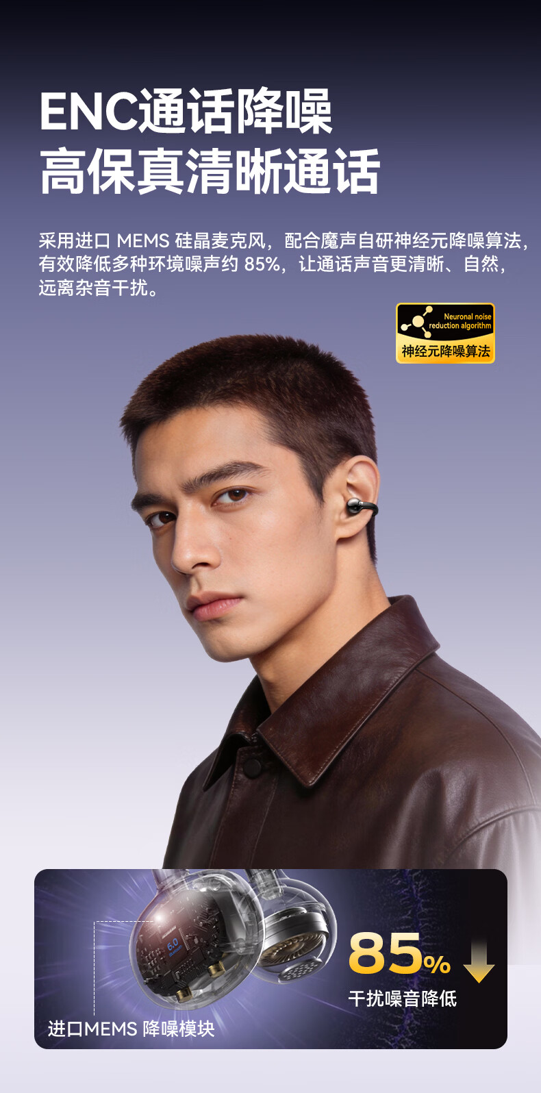 音贝奇新款ClipAir无线蓝牙耳机AI翻译耳夹式气骨传导概念开放式耳机不入耳运动挂耳式