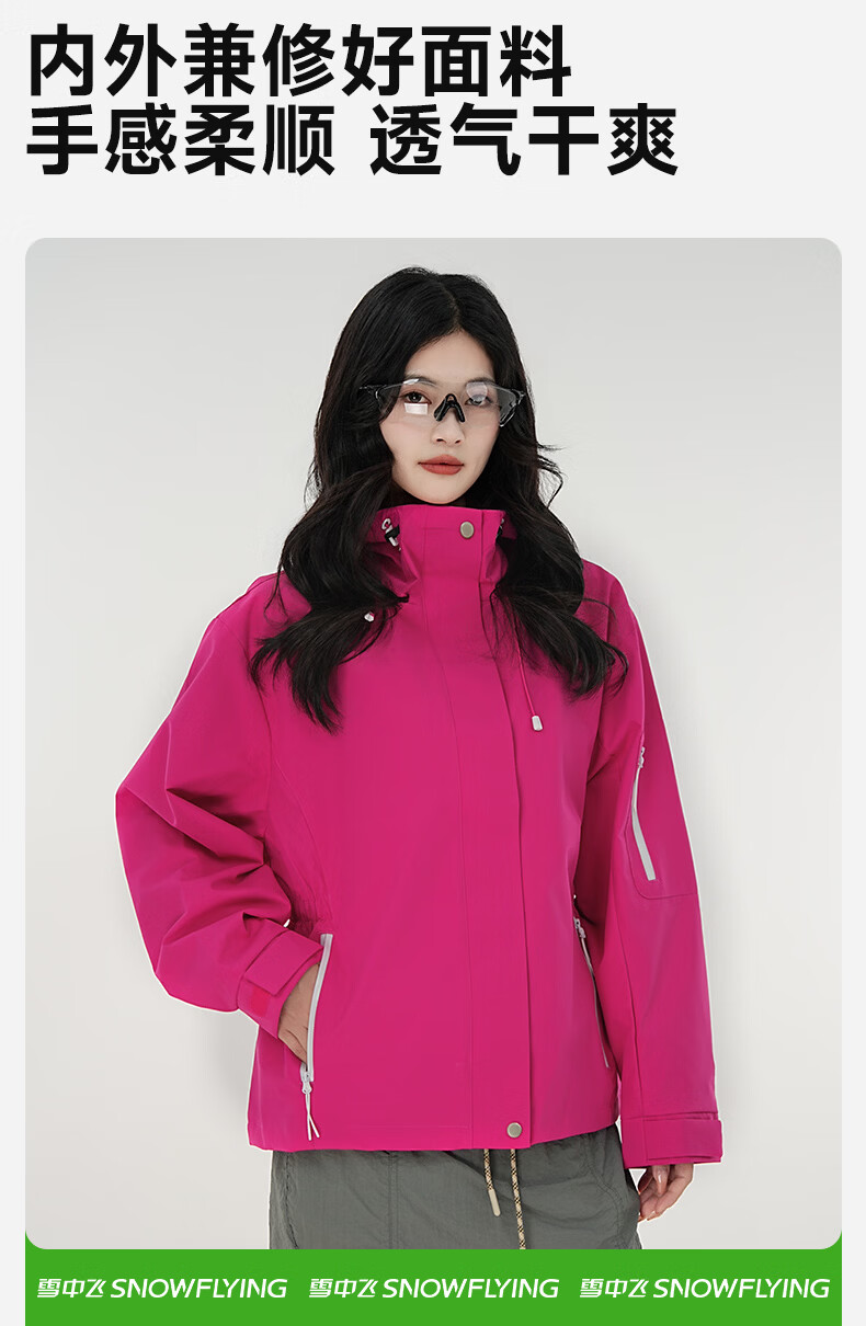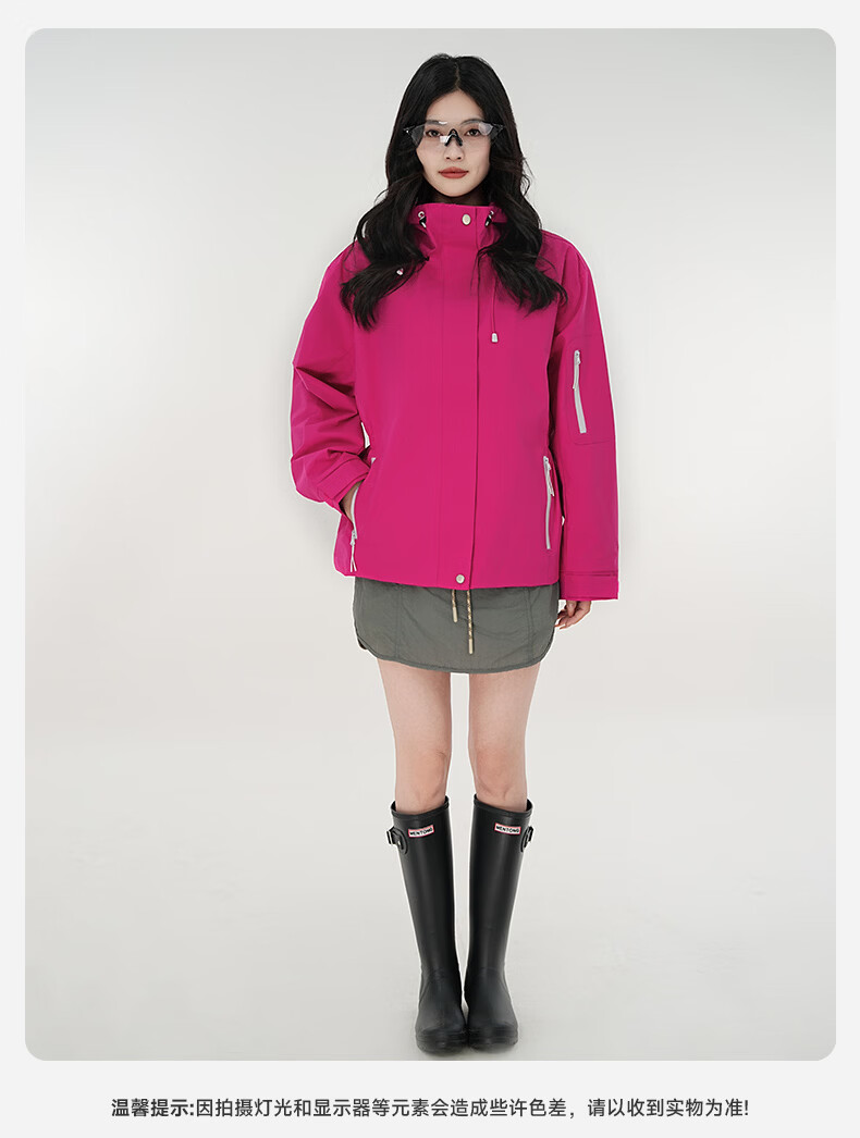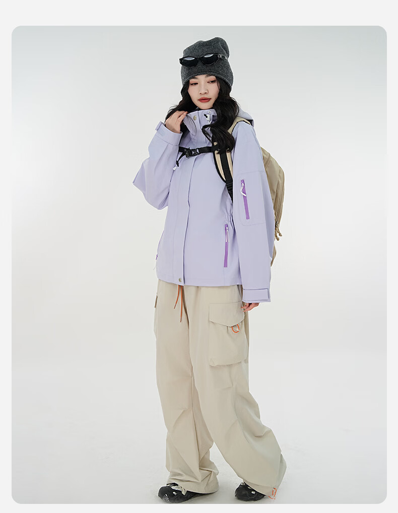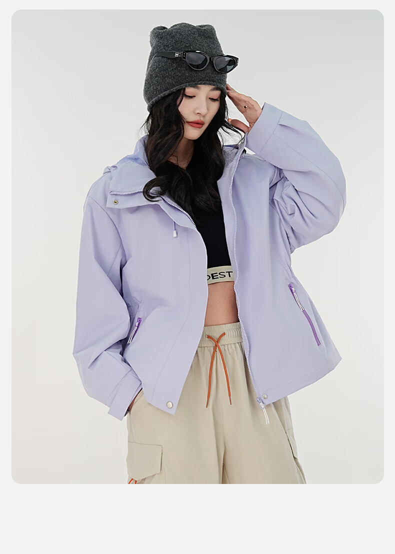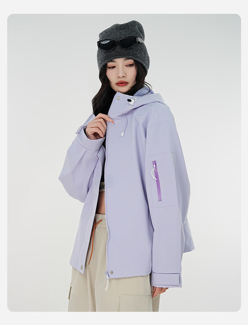 雪中飞防水收腰冲锋衣款式夹克男女2026新款时尚多巴胺春秋连帽休闲外套 粉紫色 165/84A S(85-100斤)