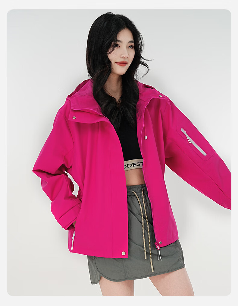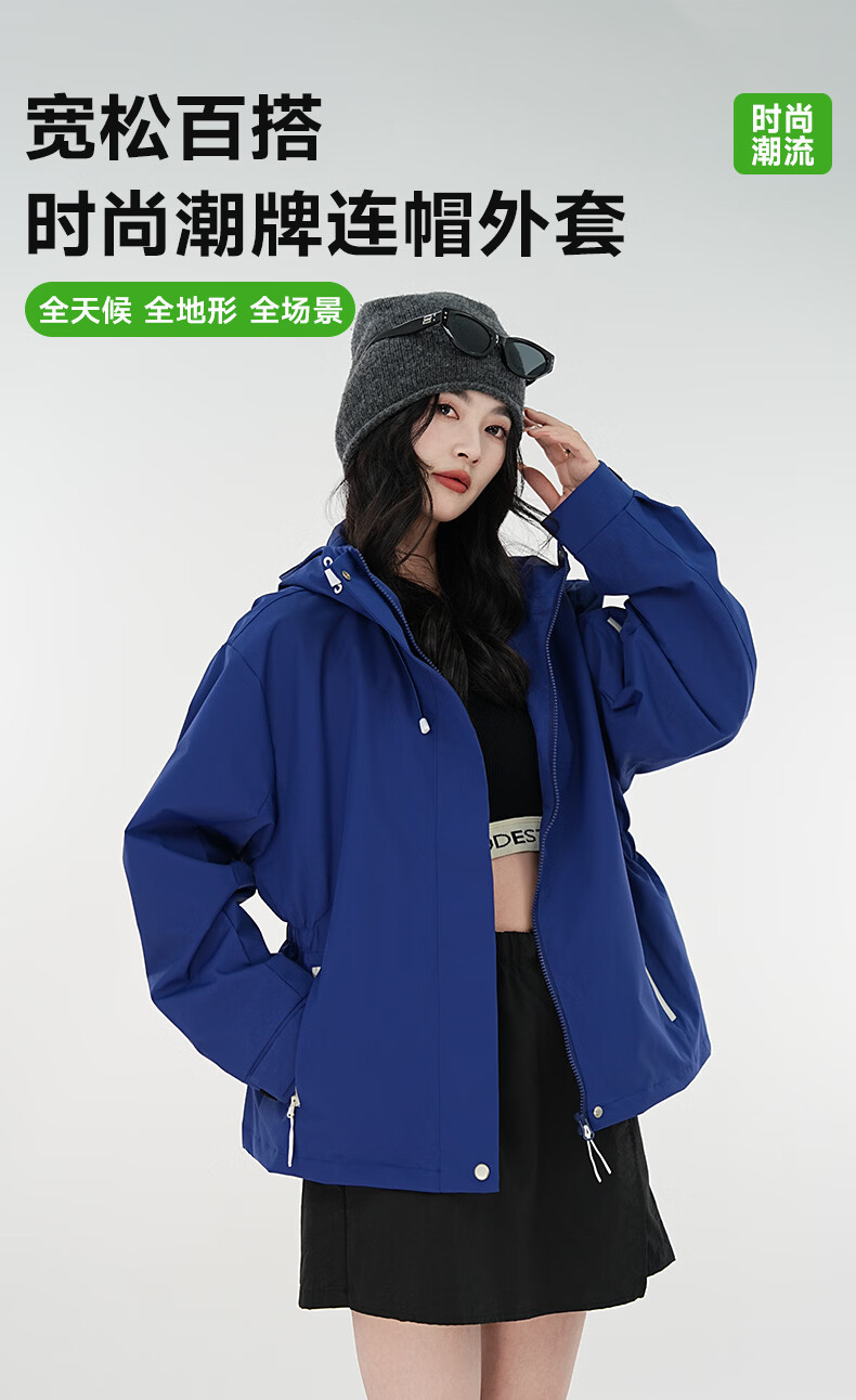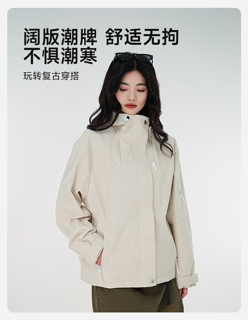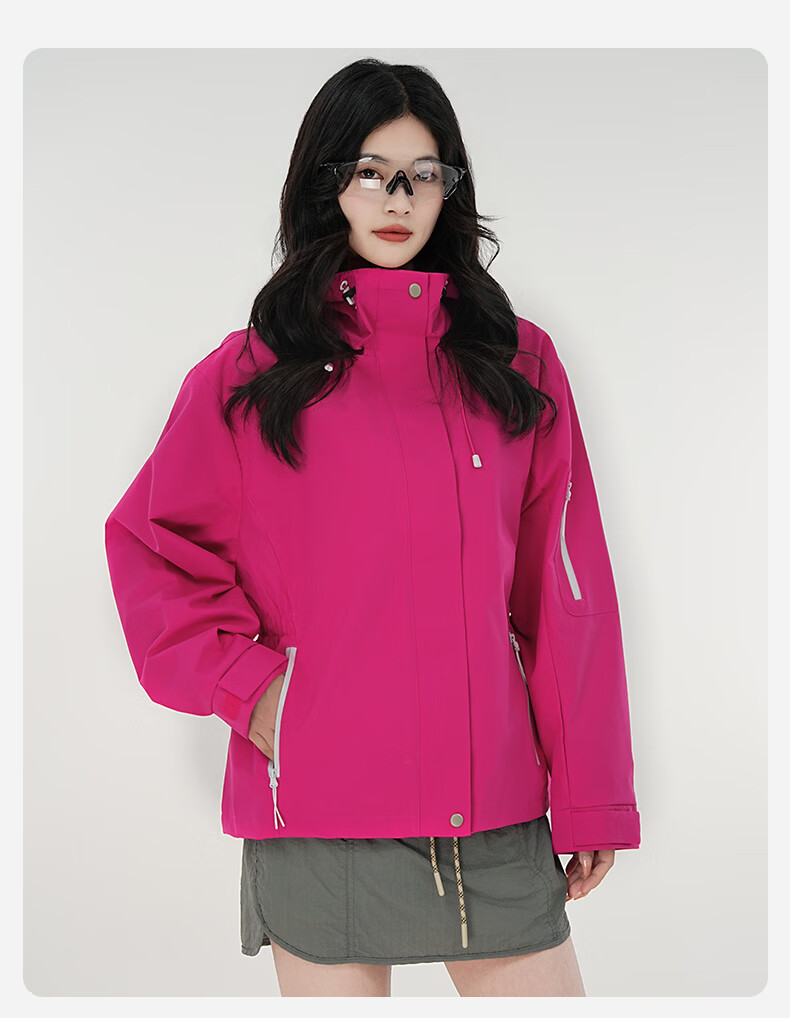 雪中飞防水收腰冲锋衣款式夹克男女2026新款时尚多巴胺春秋连帽休闲外套 粉紫色 165/84A S(85-100斤)