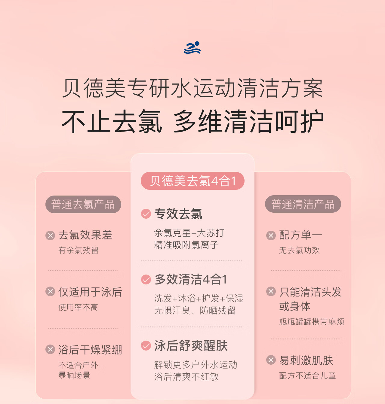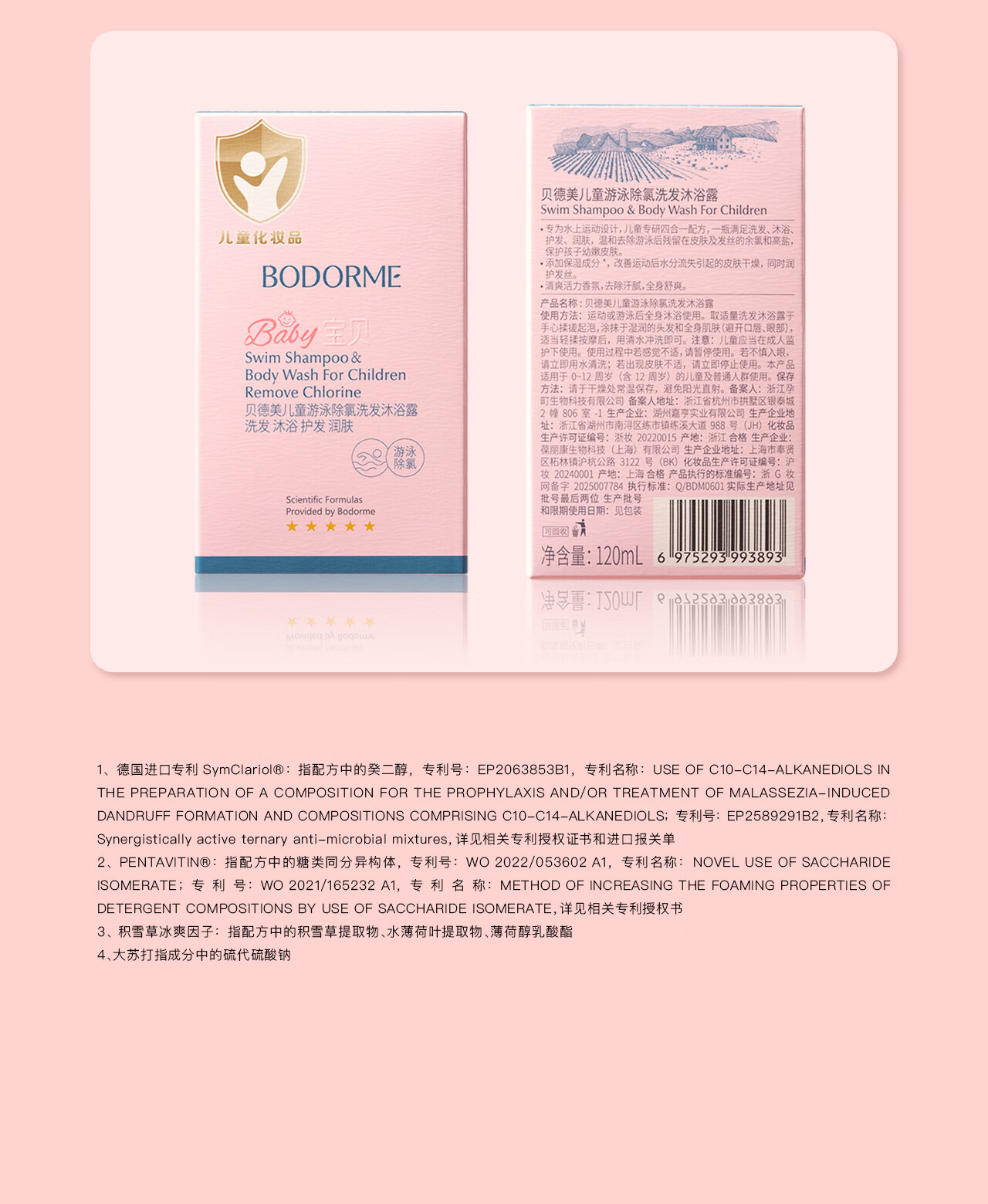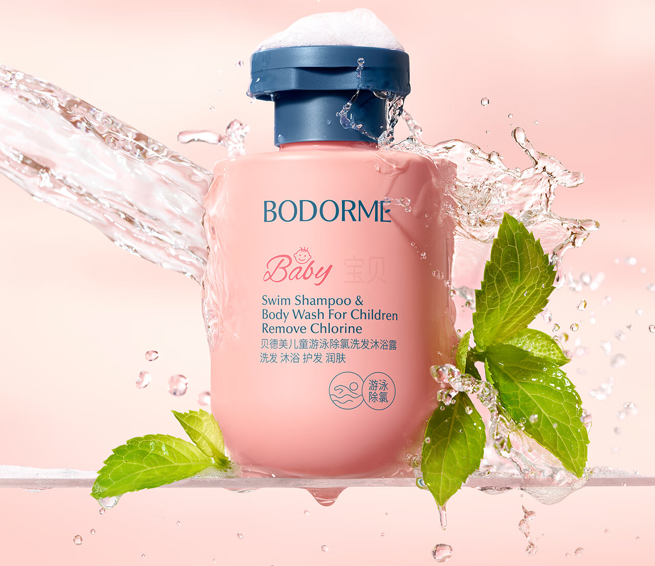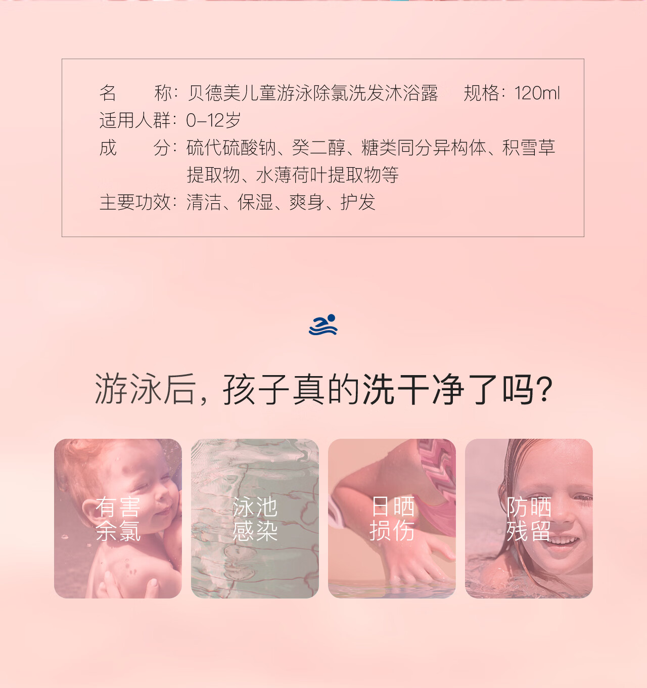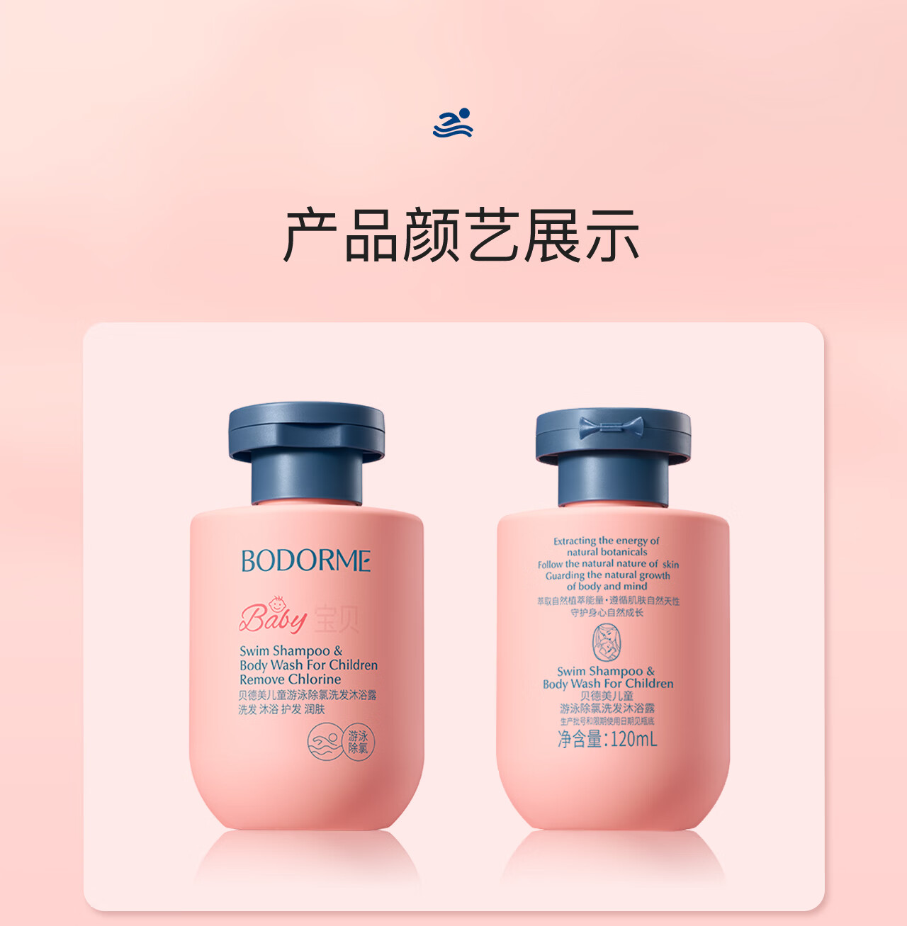 贝德美(bodcrme)儿童游泳专用除氯洗发沐浴露二合一沐浴液男女童洗护120ml