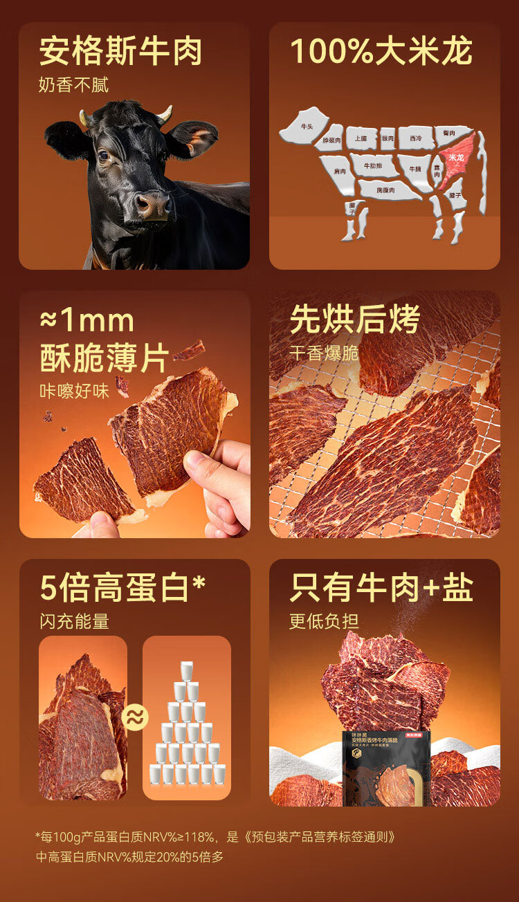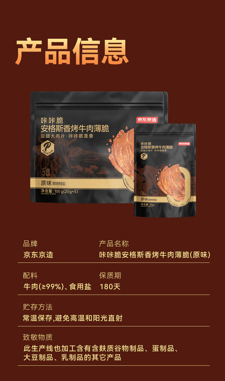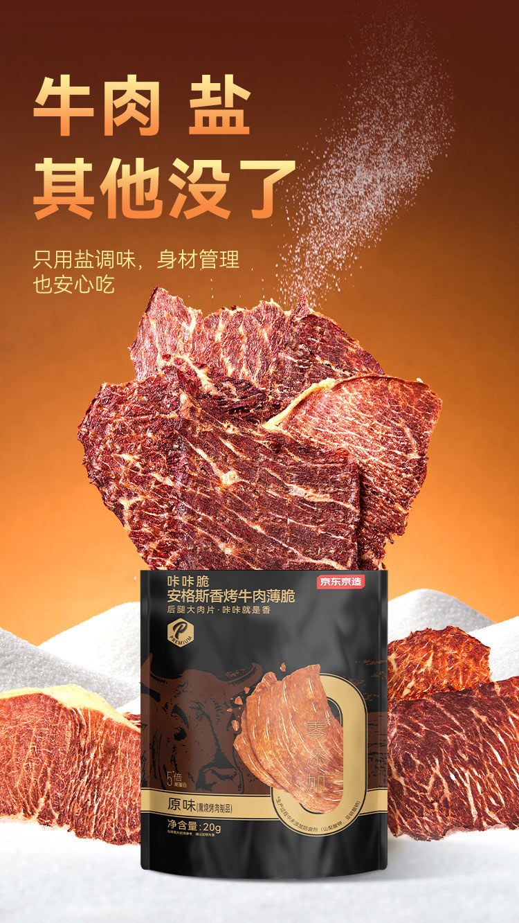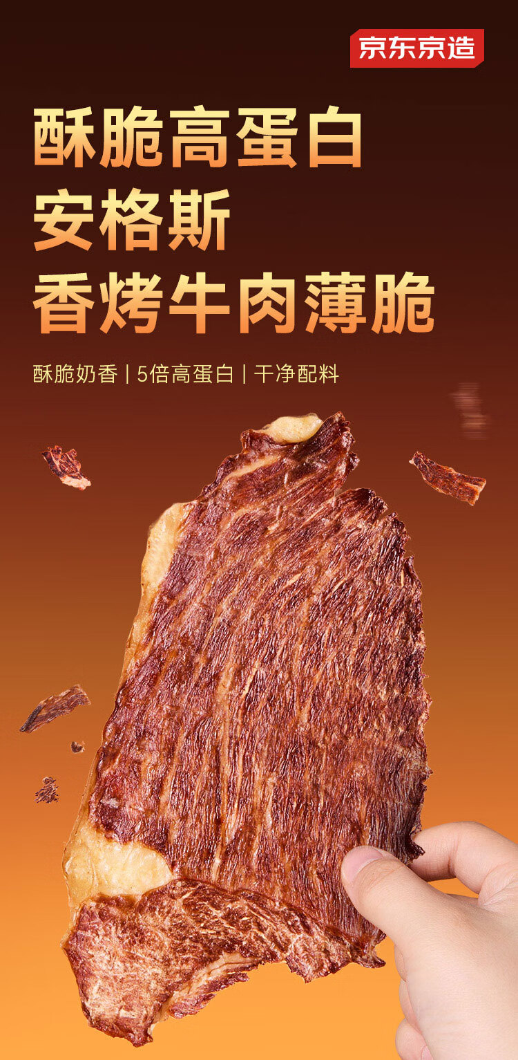 京东京造鲜来多安格斯香烤牛肉薄脆牛排脆 原味100g 内蒙特产零食