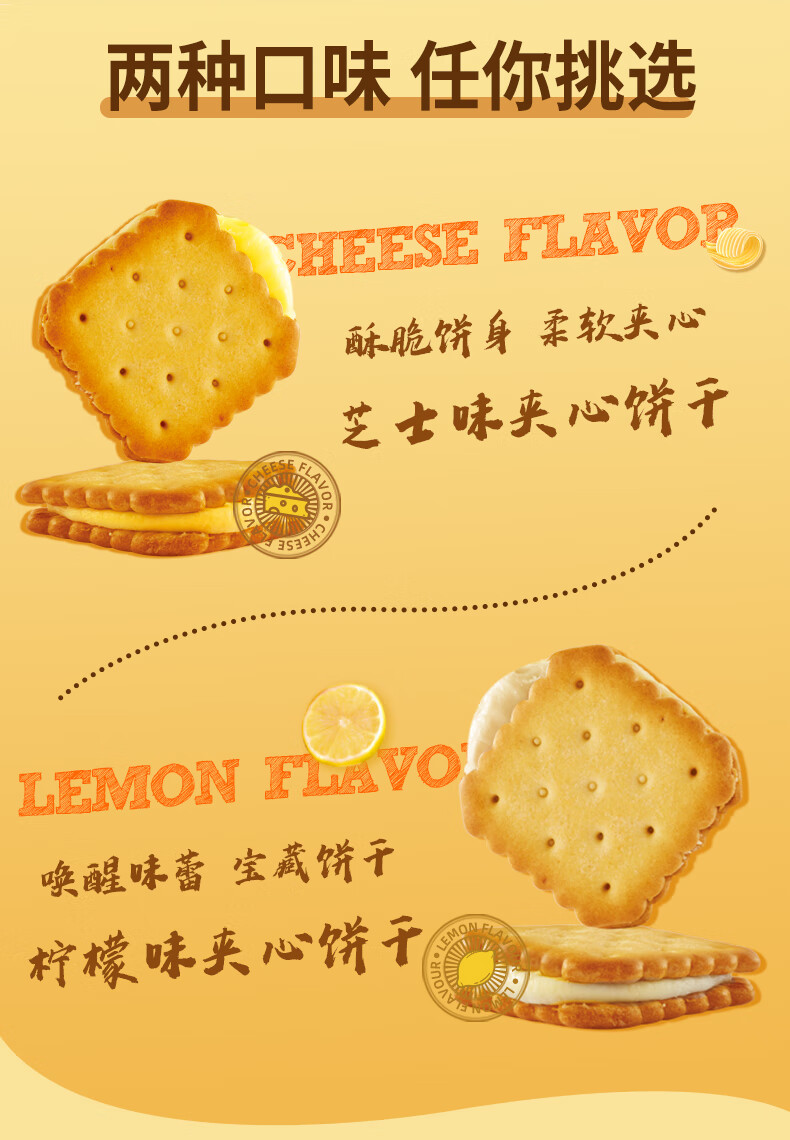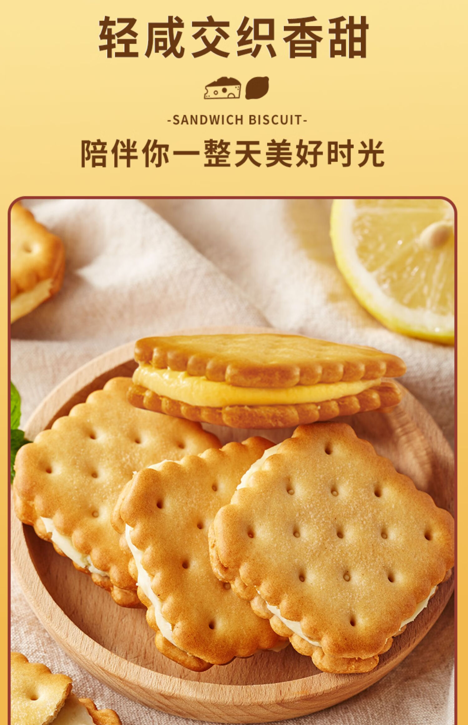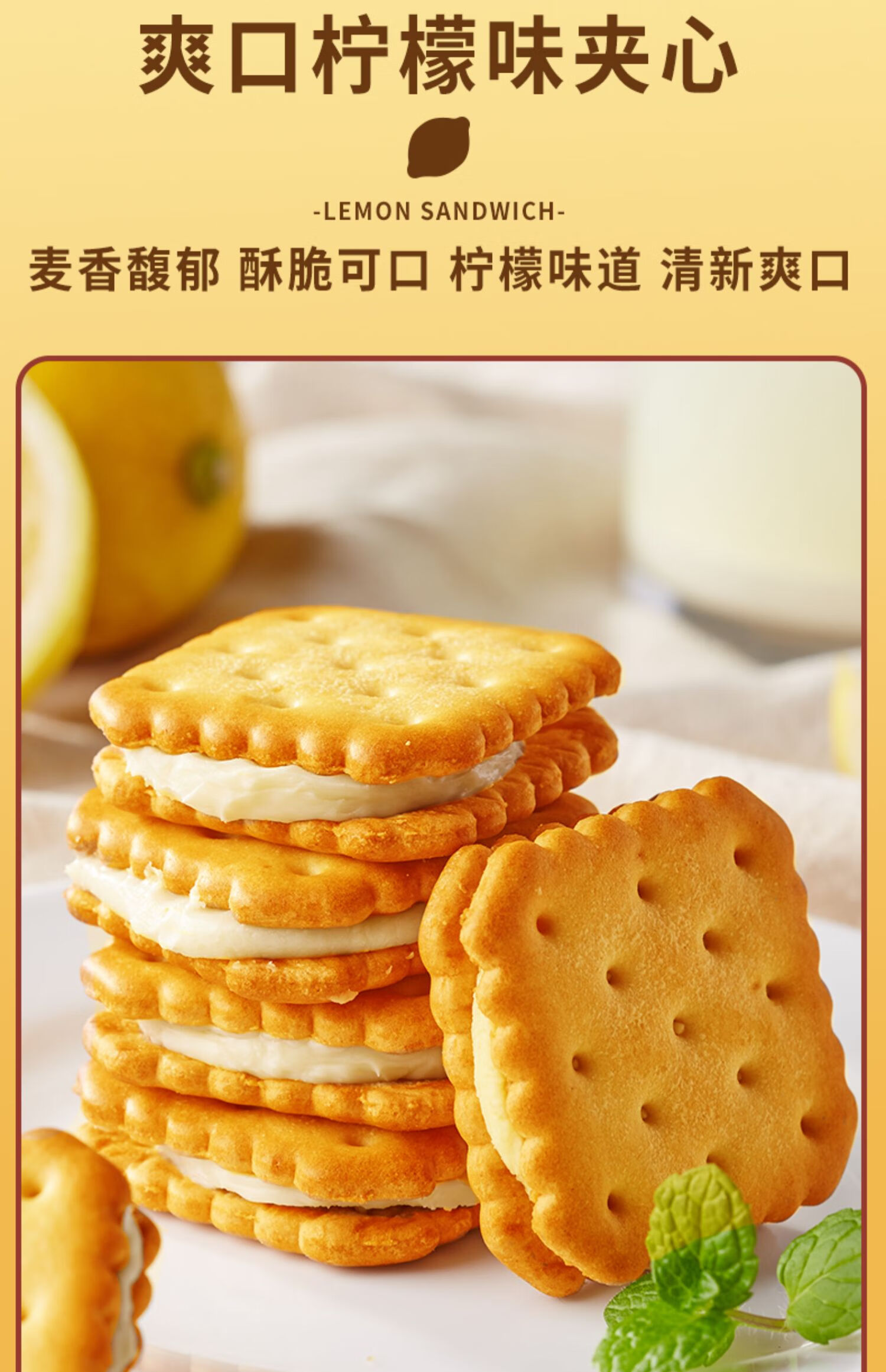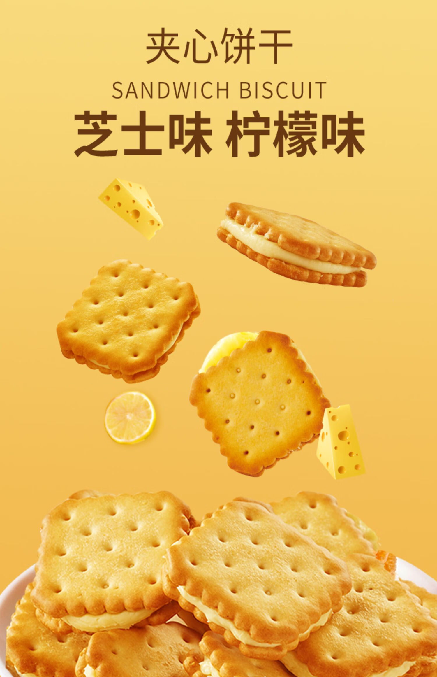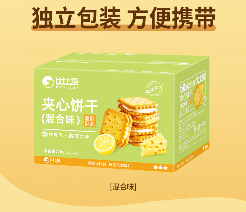 比比赞(BIBIZAN)柠檬芝士夹心饼干【混合味】1000g整箱早餐办公室休闲零食品