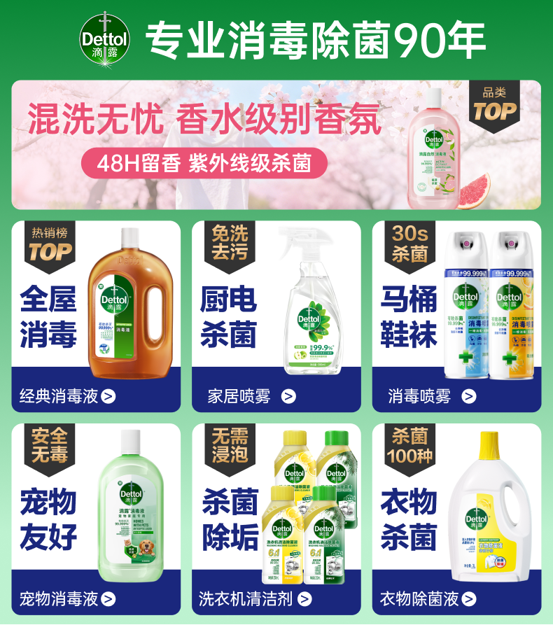 滴露(Dettol)洗衣机清洗剂250ml*6瓶金装版柠檬洗衣机强力除垢杀菌春节大扫除京东自营