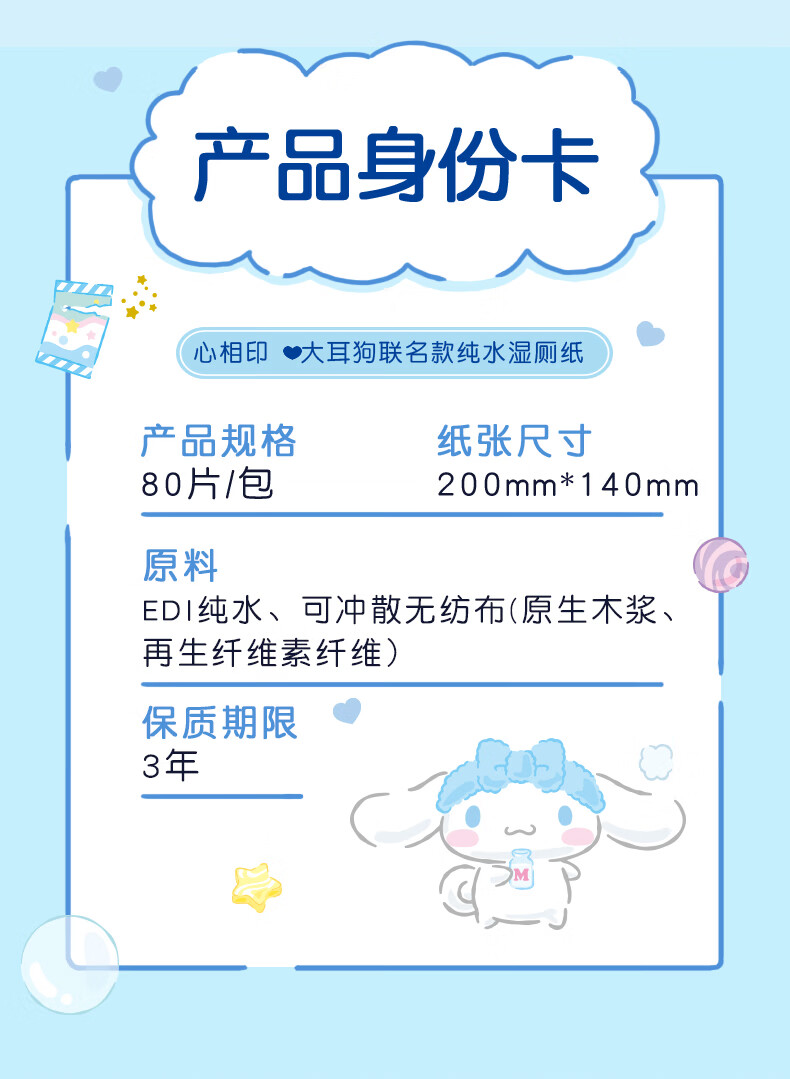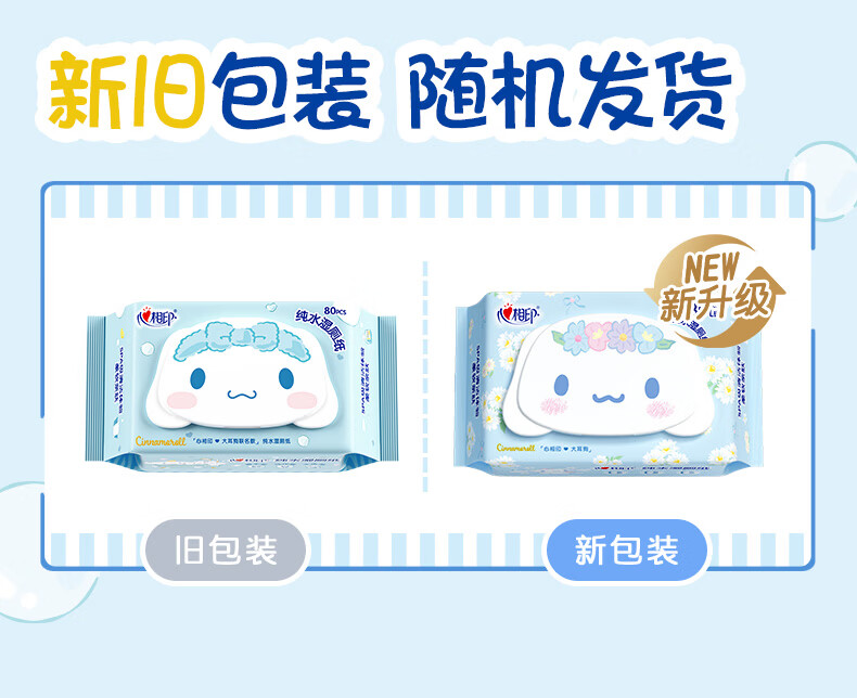 心相印三丽鸥湿厕纸80片*5包 纯水湿纸巾洁厕湿巾 大耳狗家庭装新旧随机