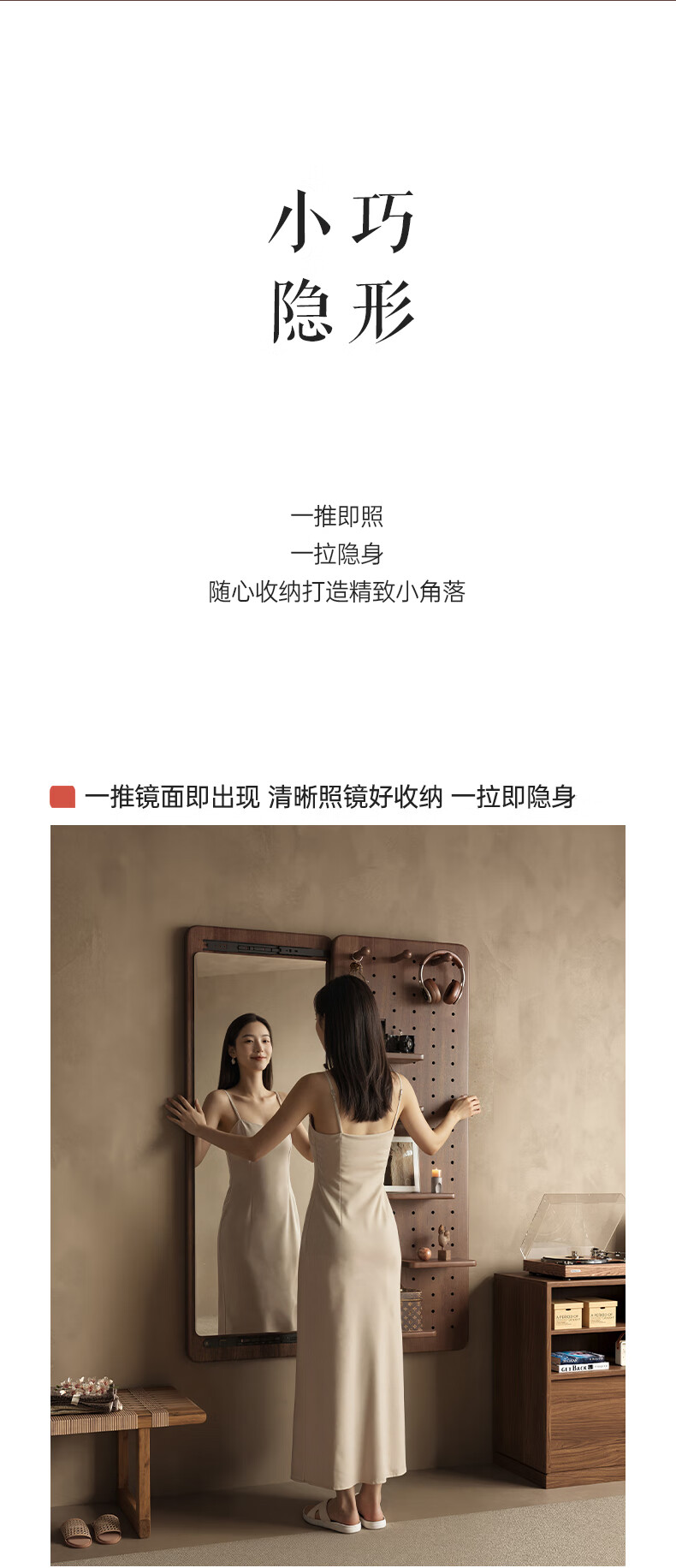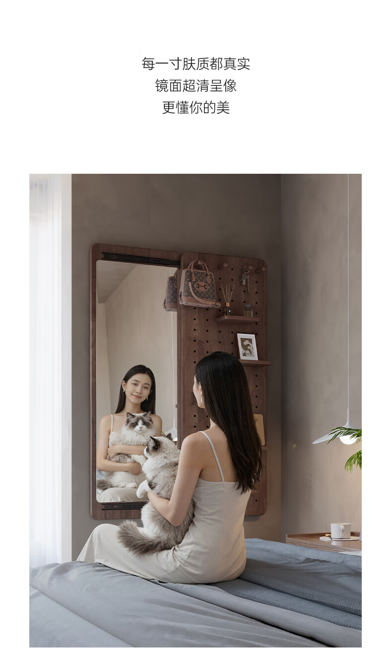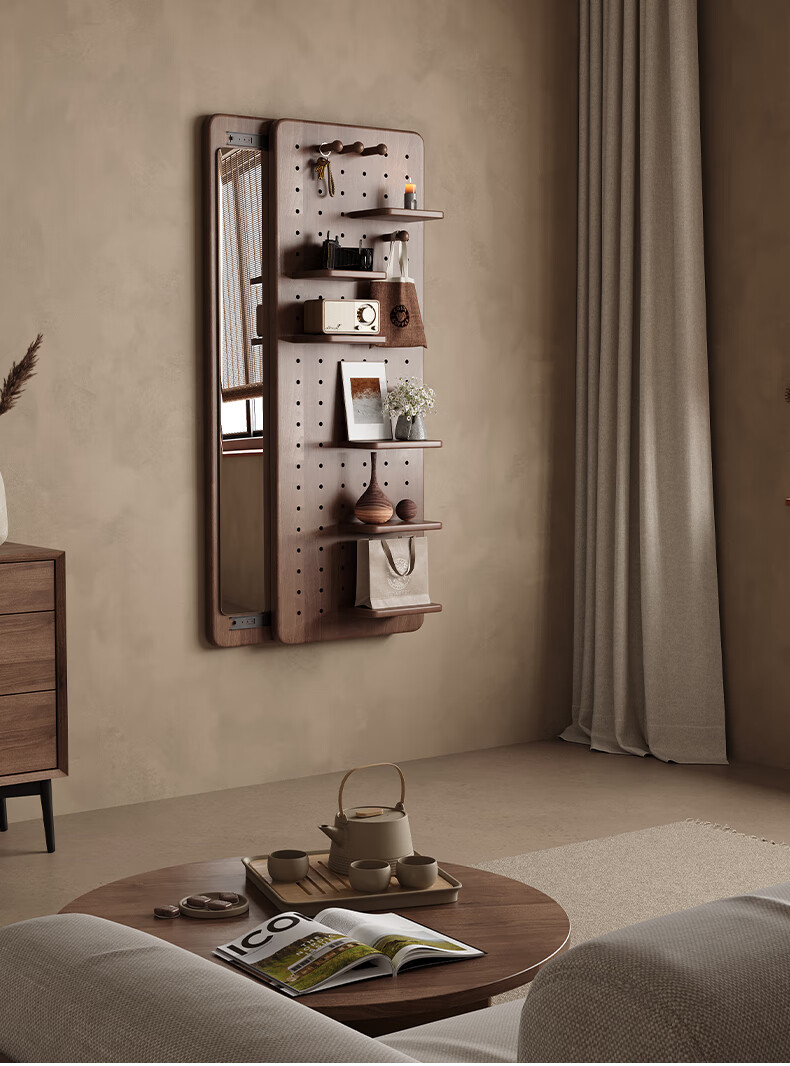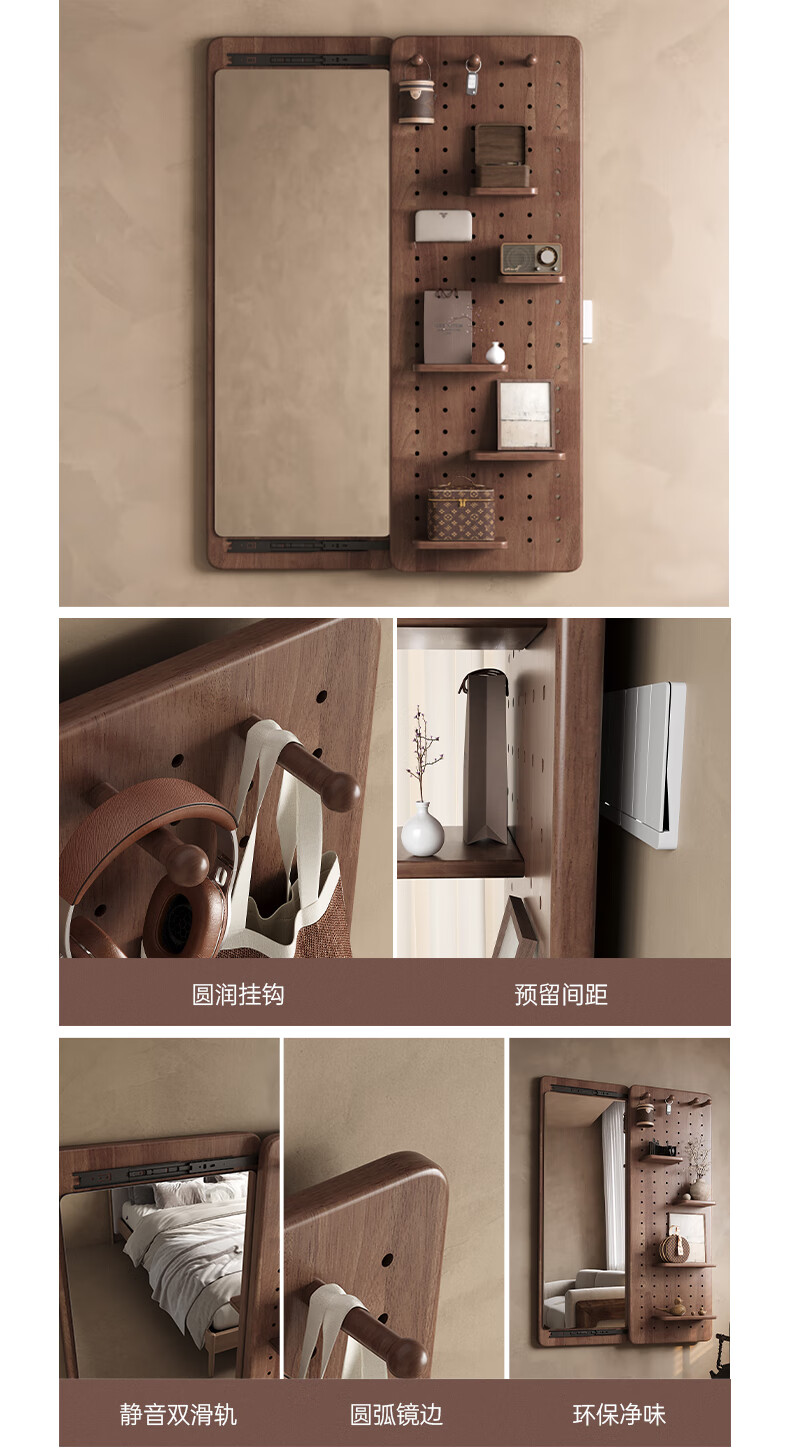 索菲亚实木洞洞板穿衣镜玄关隐藏式推拉全身镜子家用书房壁挂试衣镜贴墙 【进口FAS级橡胶木】胡桃木色40*150CM 【送货上门包安装】