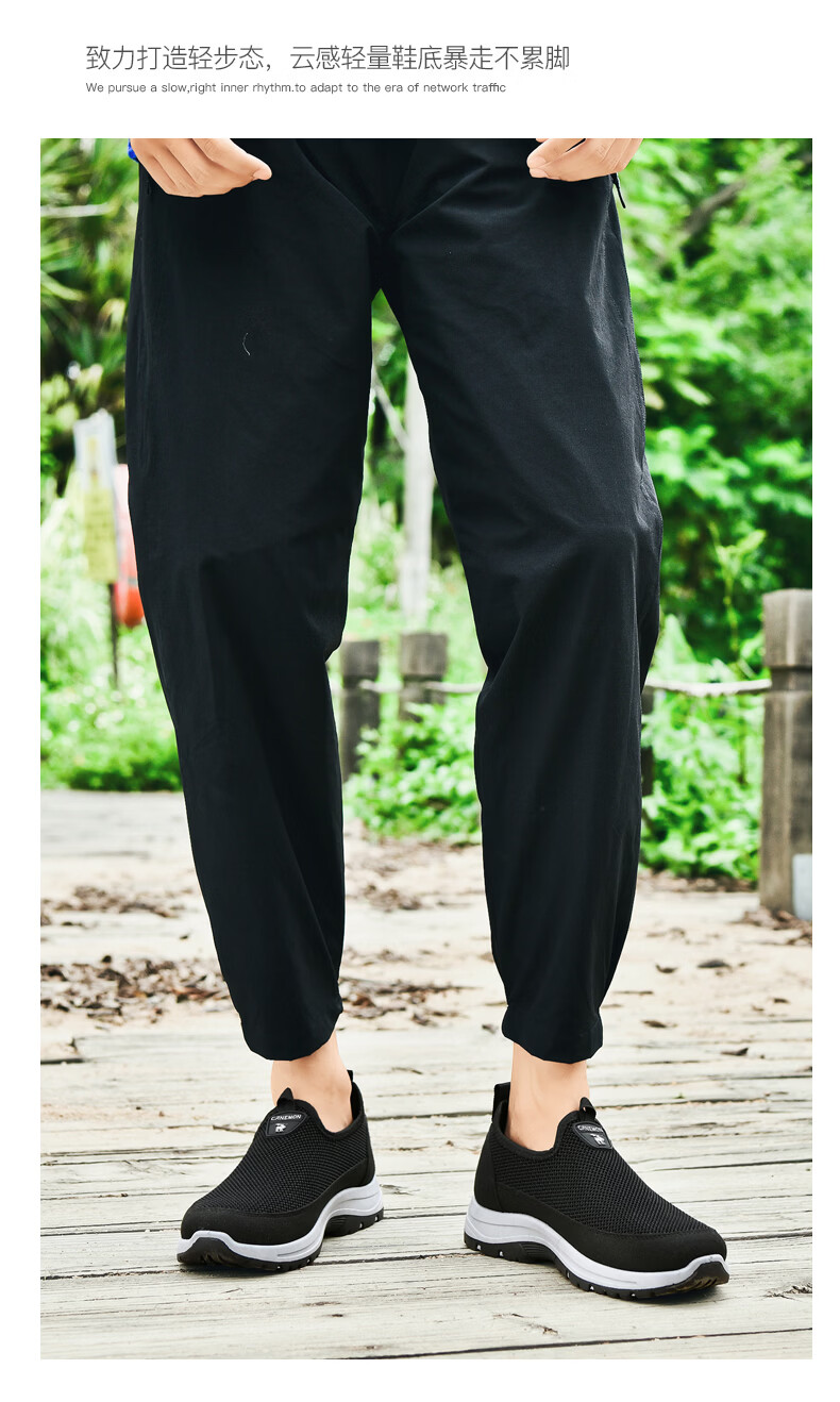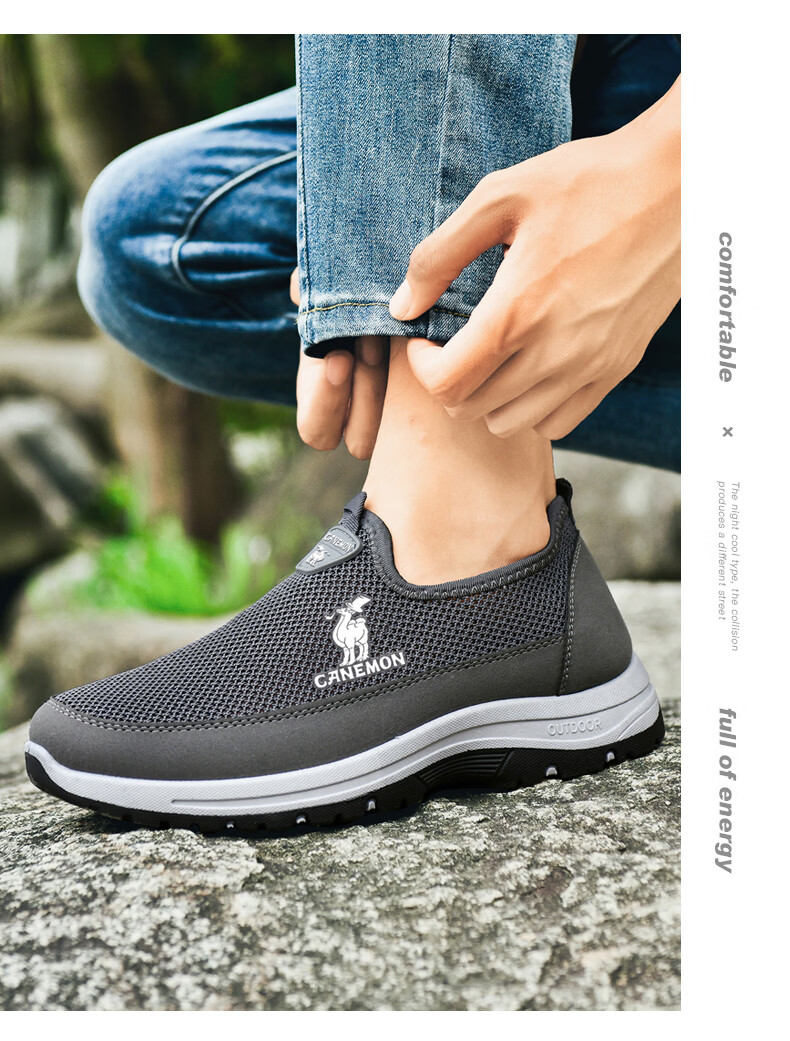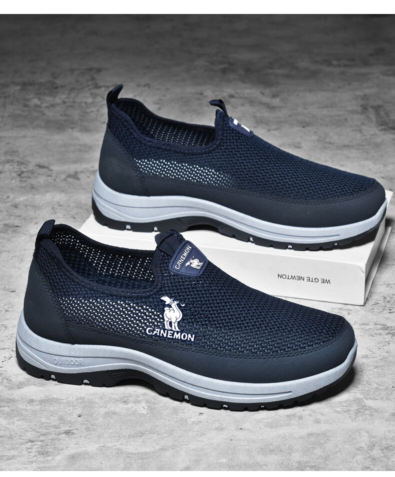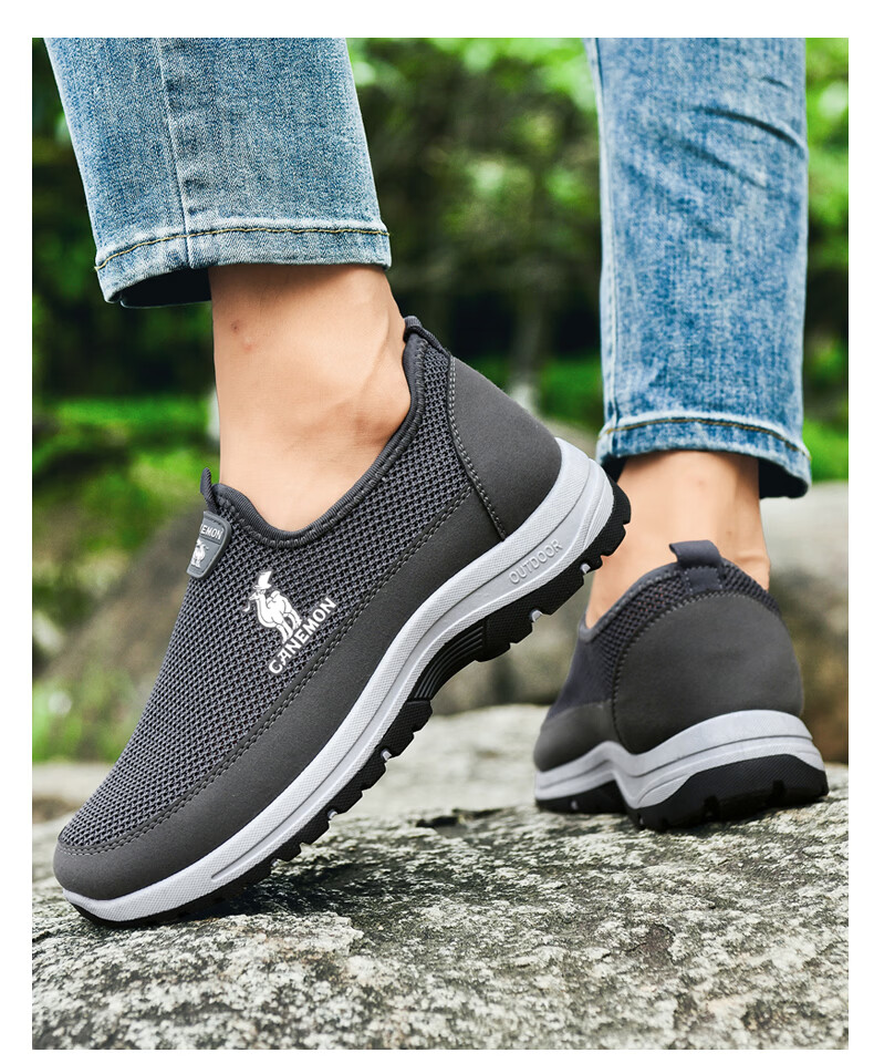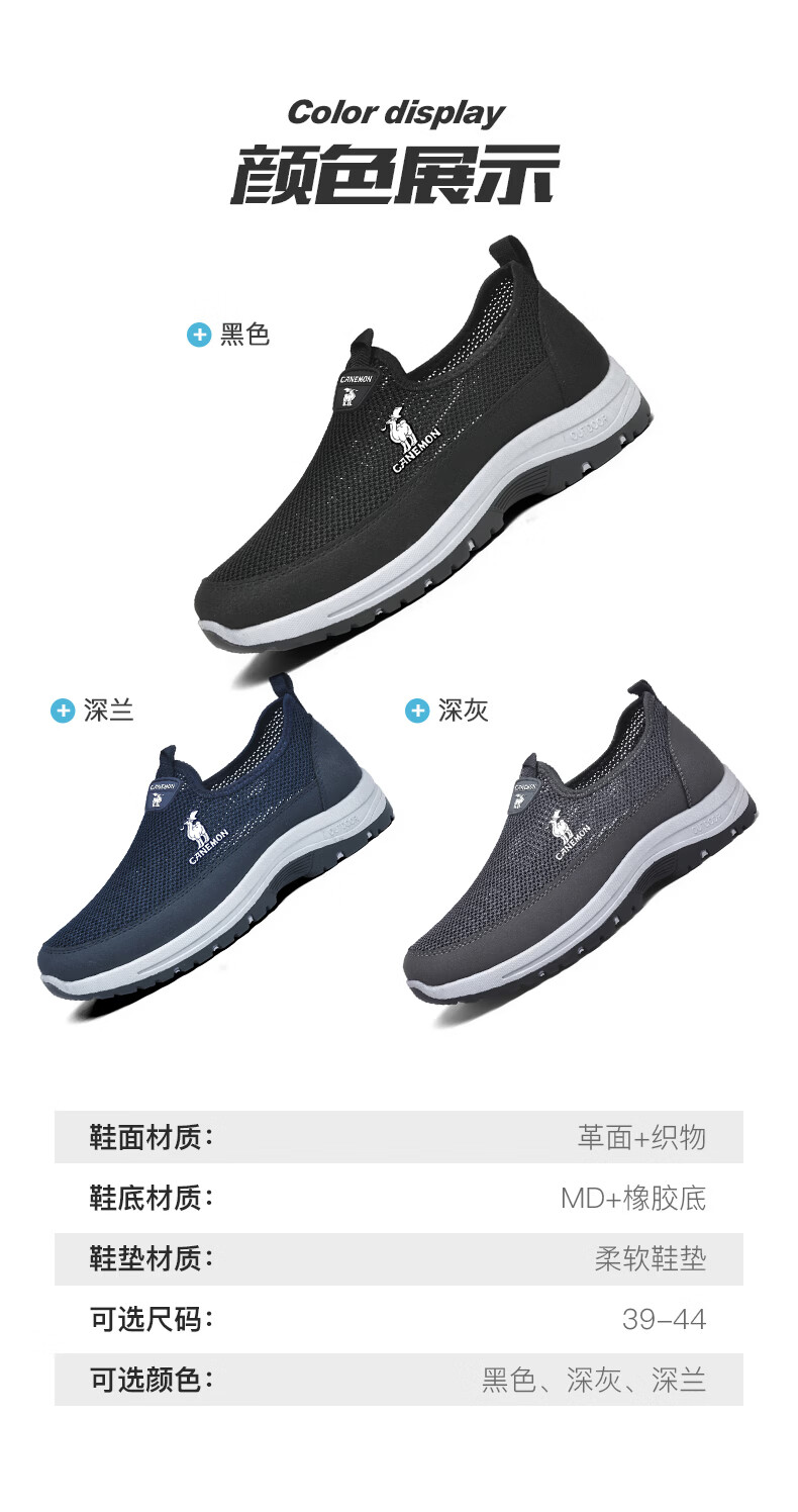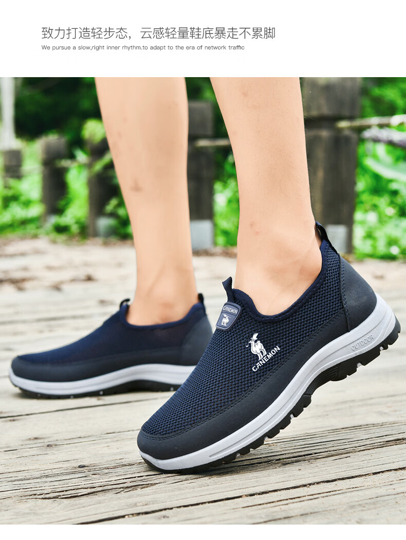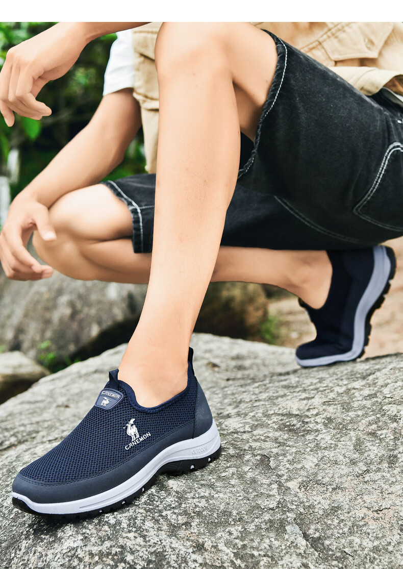 保罗骆驼男鞋夏季新款透气网面休闲鞋男士一脚蹬健步飞织鞋男 黑色 39