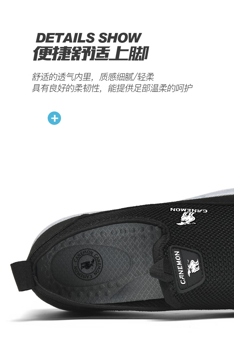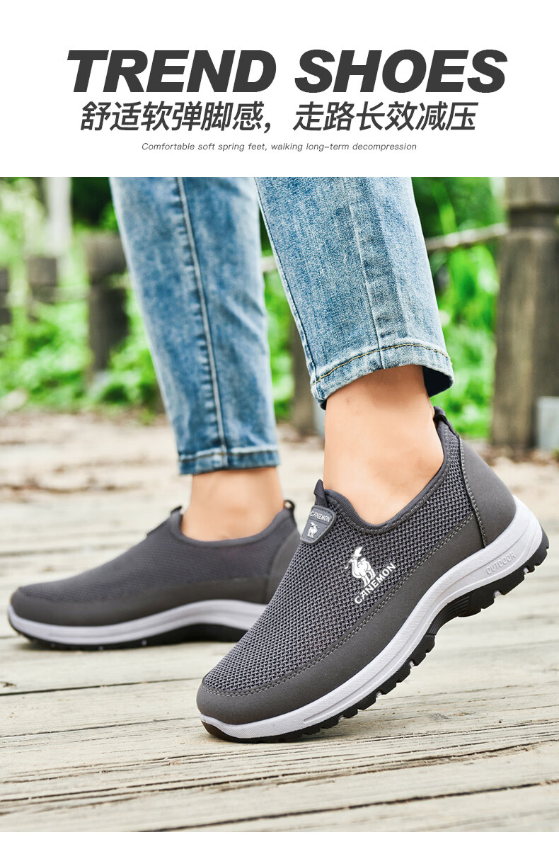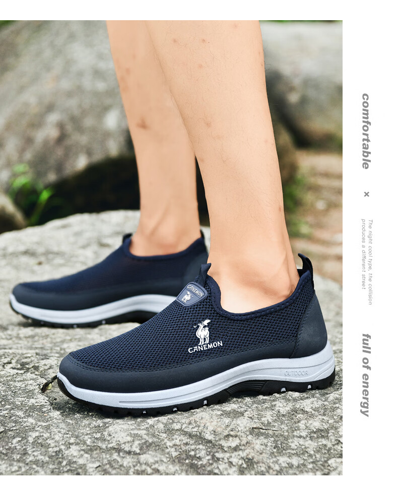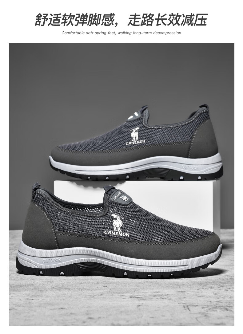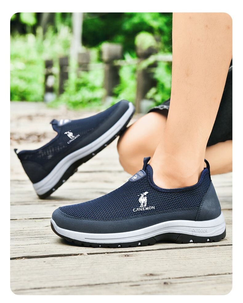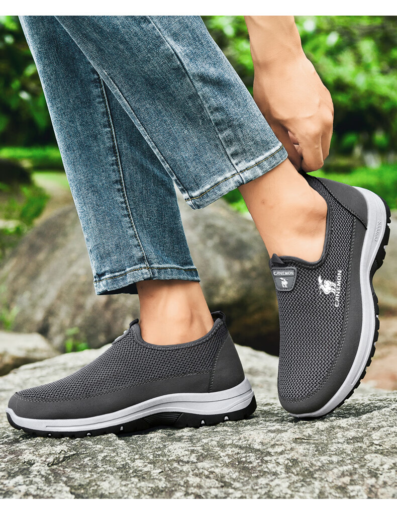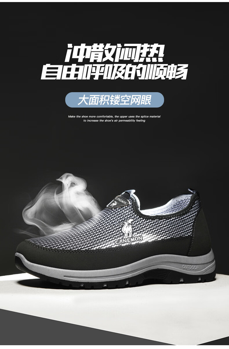 保罗骆驼男鞋夏季新款透气网面休闲鞋男士一脚蹬健步飞织鞋男 黑色 39