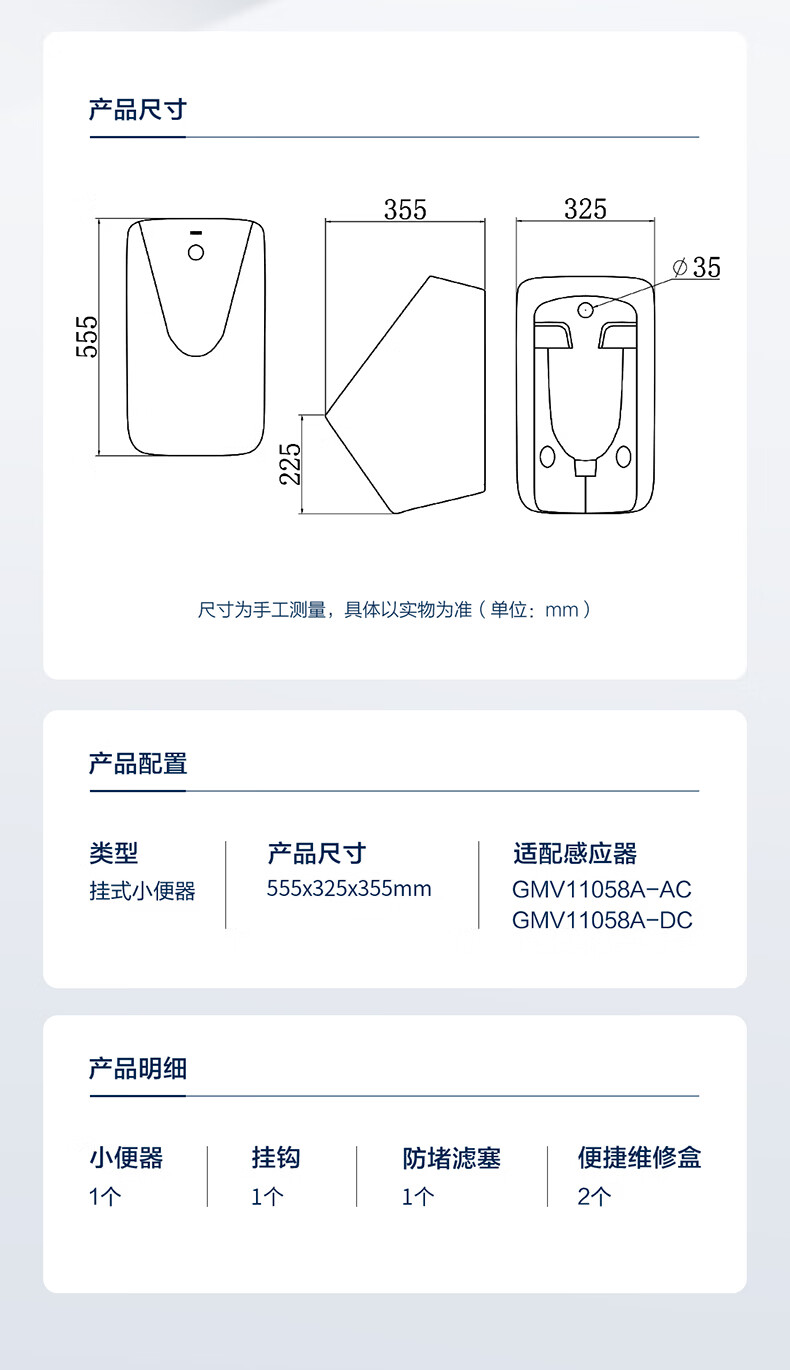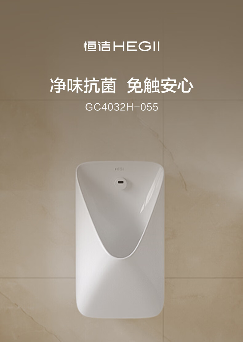 恒洁小便斗挂墙式智能感应明装壁挂式小便器家用男士陶瓷小便池4032H 【一体式交流感应器小便斗】GC4032H-055