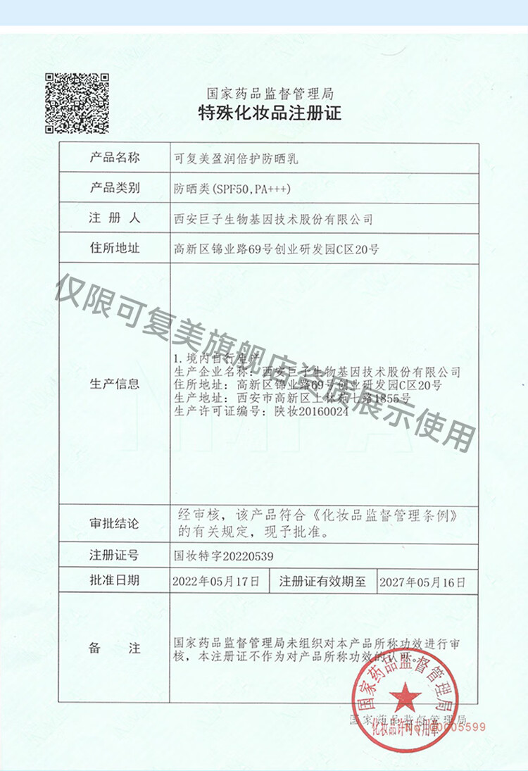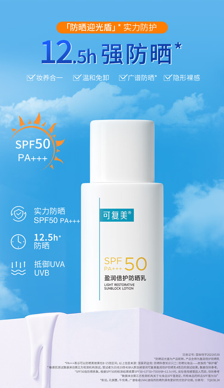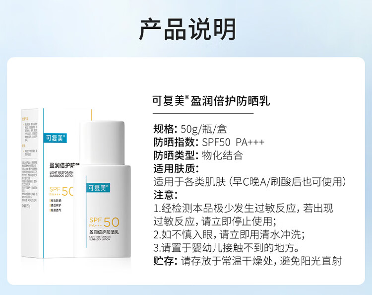 屈臣氏可复美盈润倍护防晒乳SPF50 PA+++ 50g