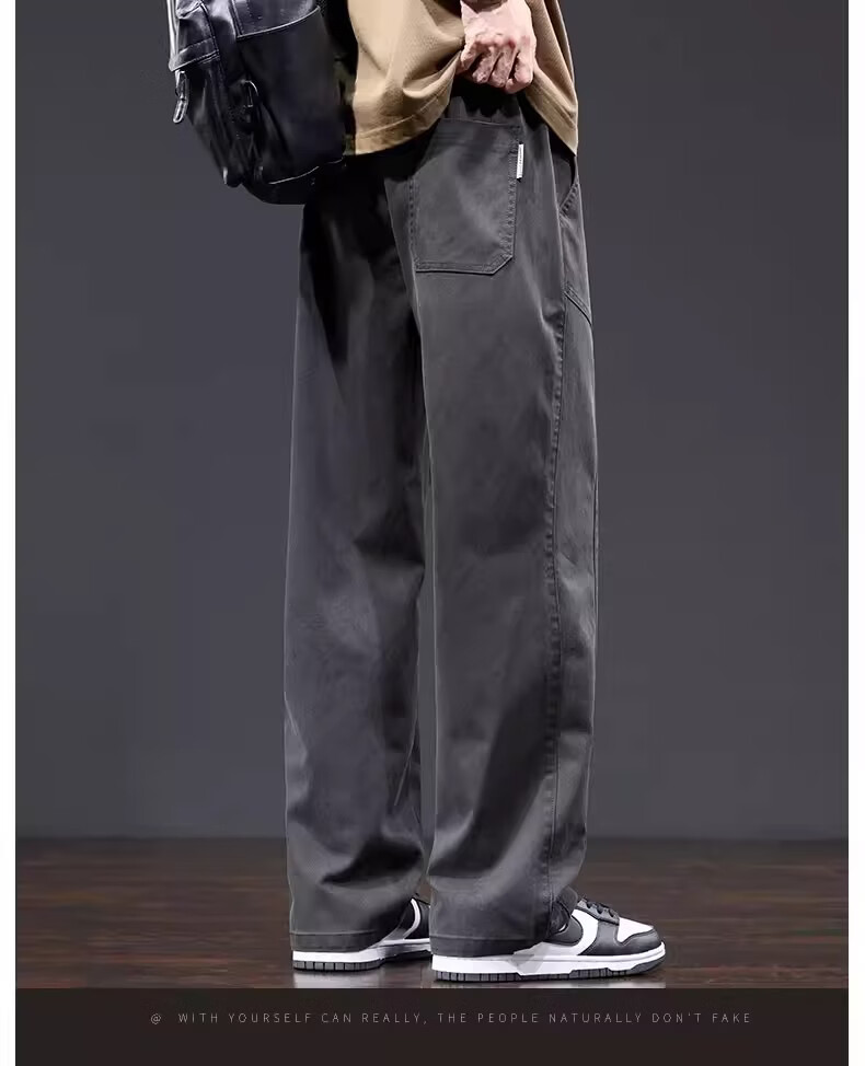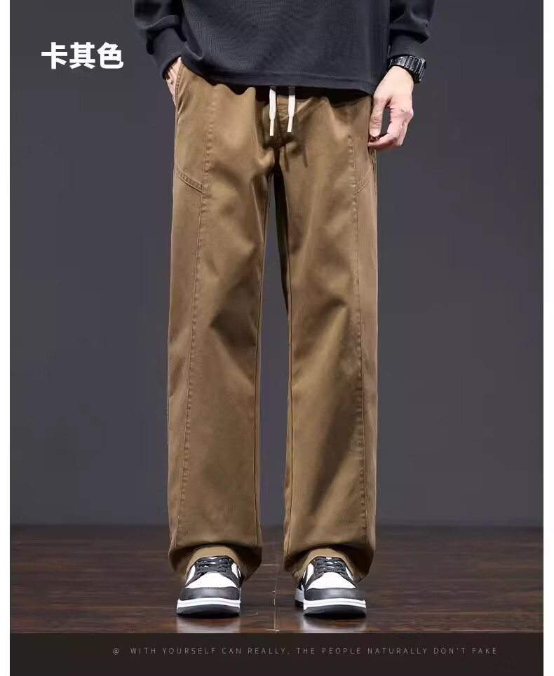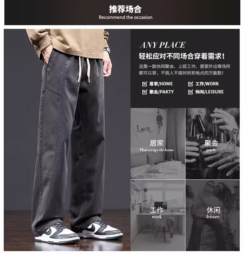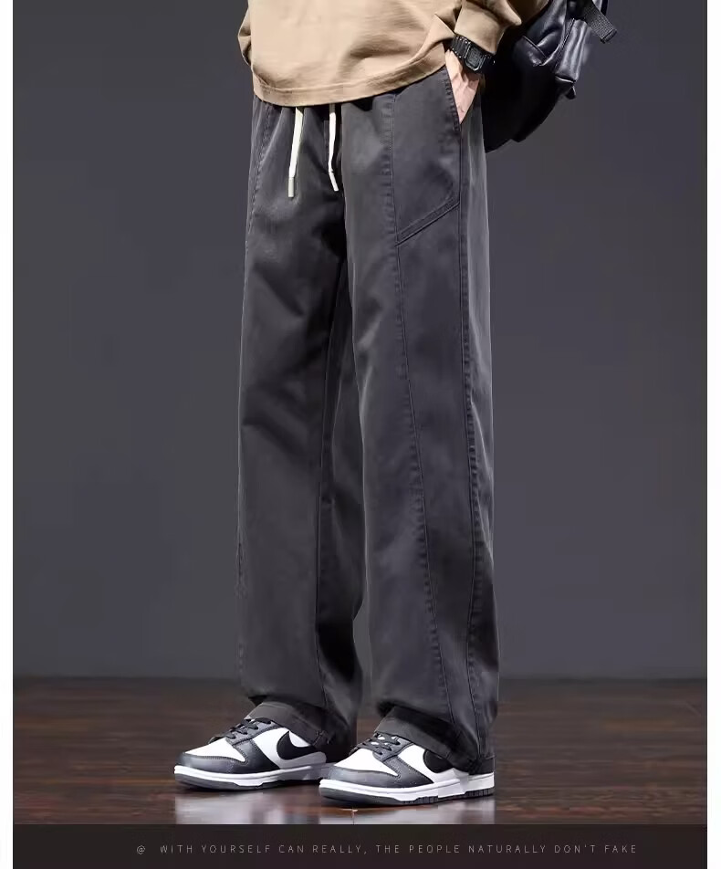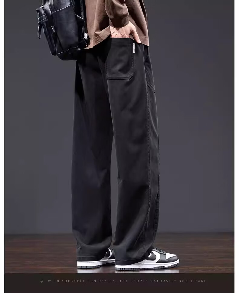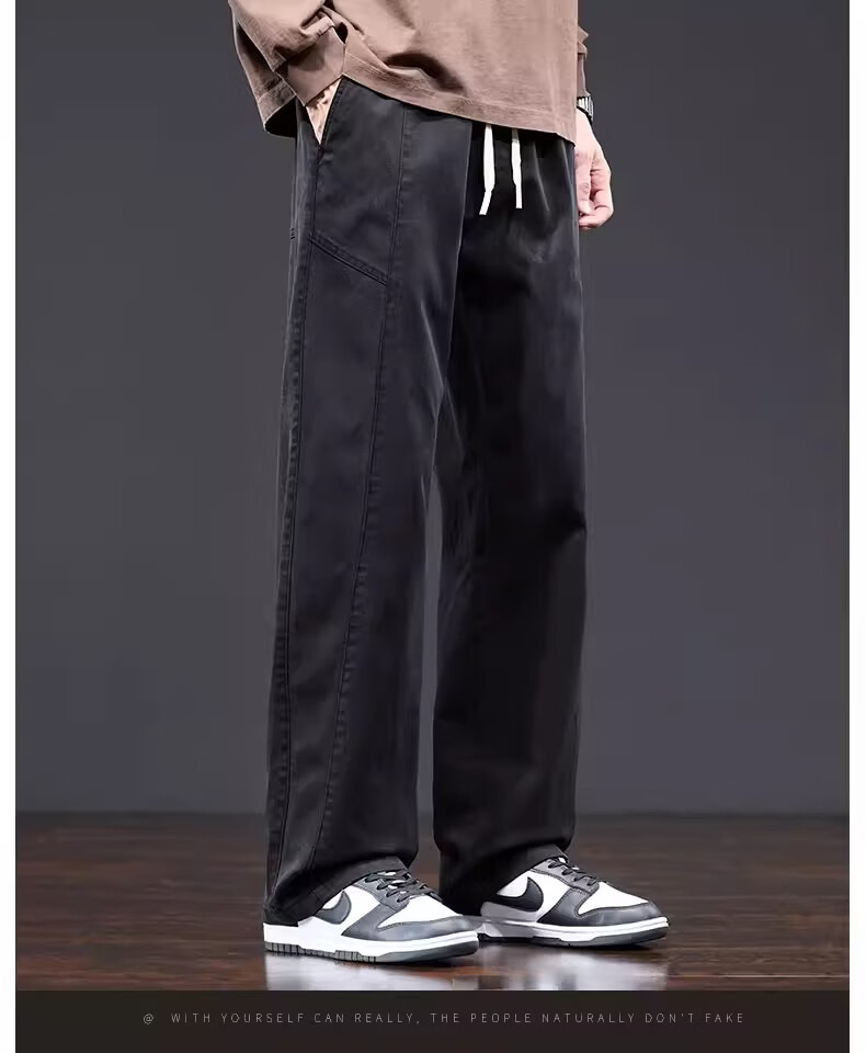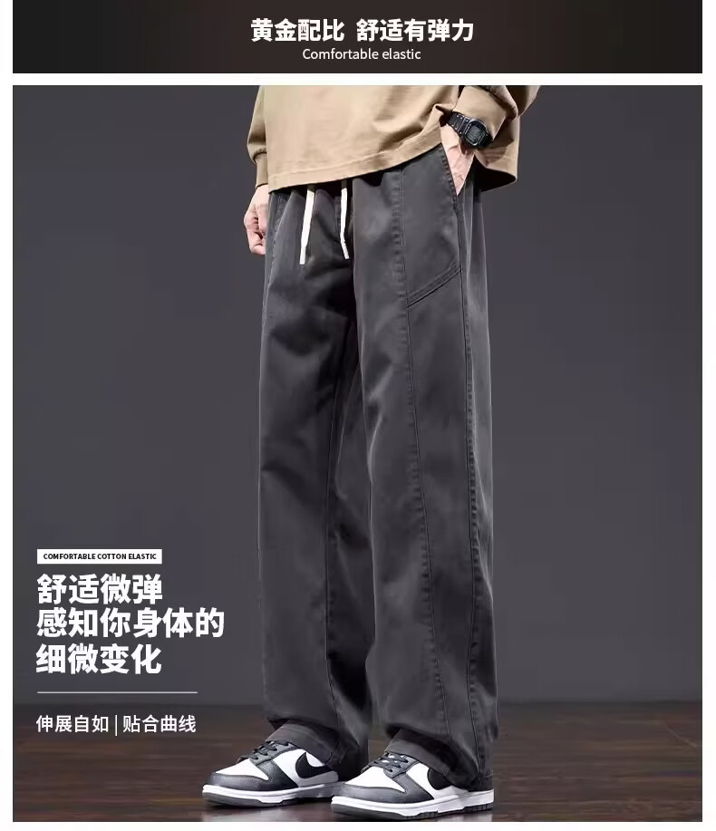 真维斯美式复古工装裤男士春季新款潮牌宽松直筒重磅抽绳阔腿休闲长裤子 黑色