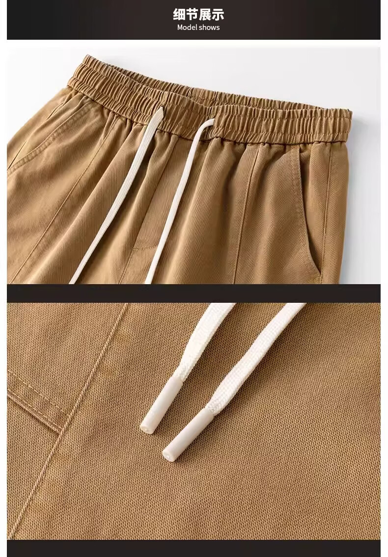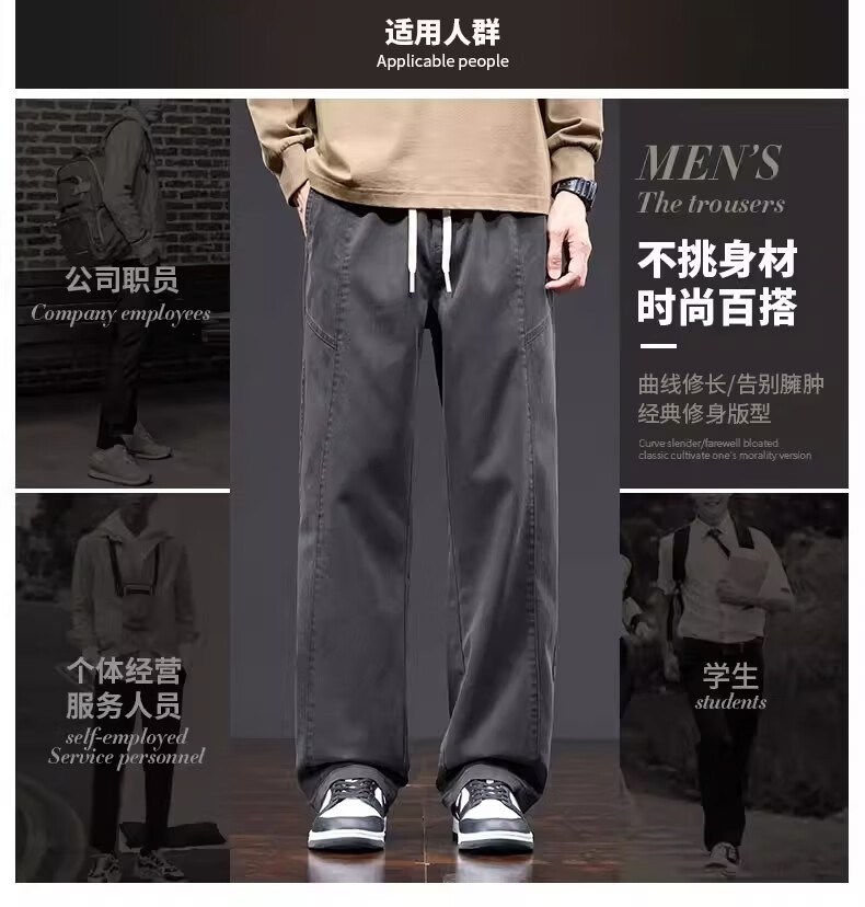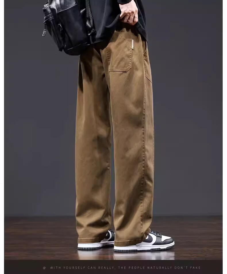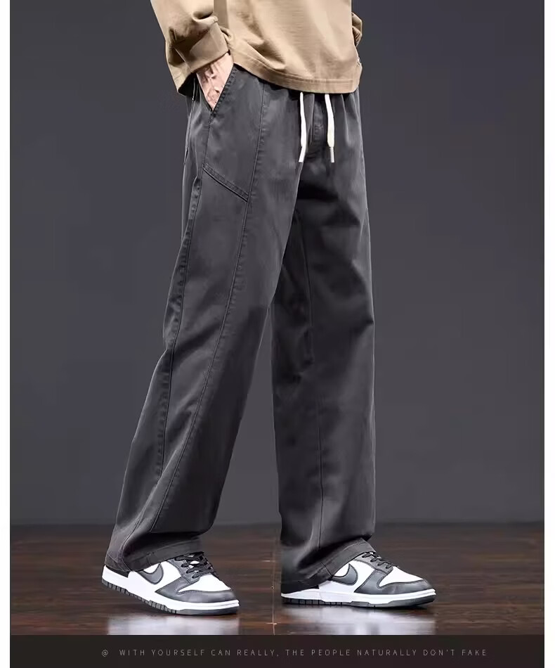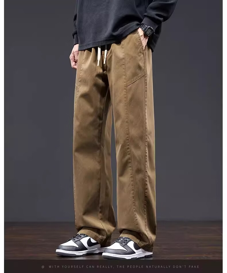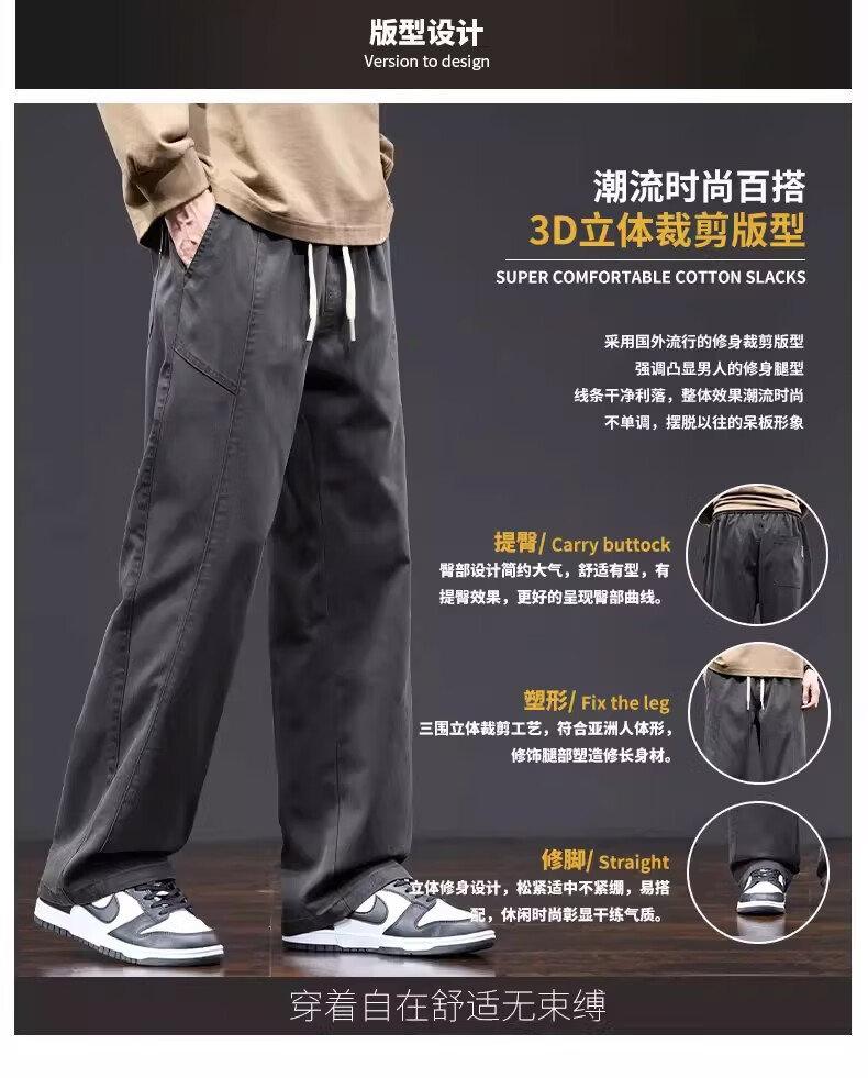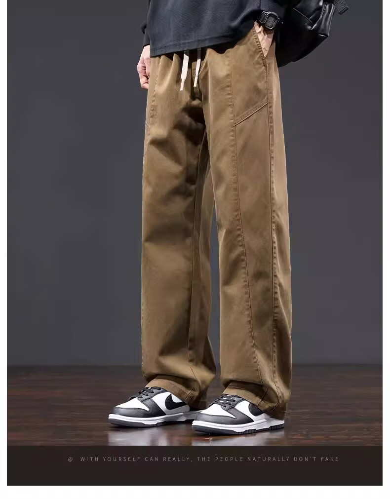 真维斯美式复古工装裤男士春季新款潮牌宽松直筒重磅抽绳阔腿休闲长裤子 黑色