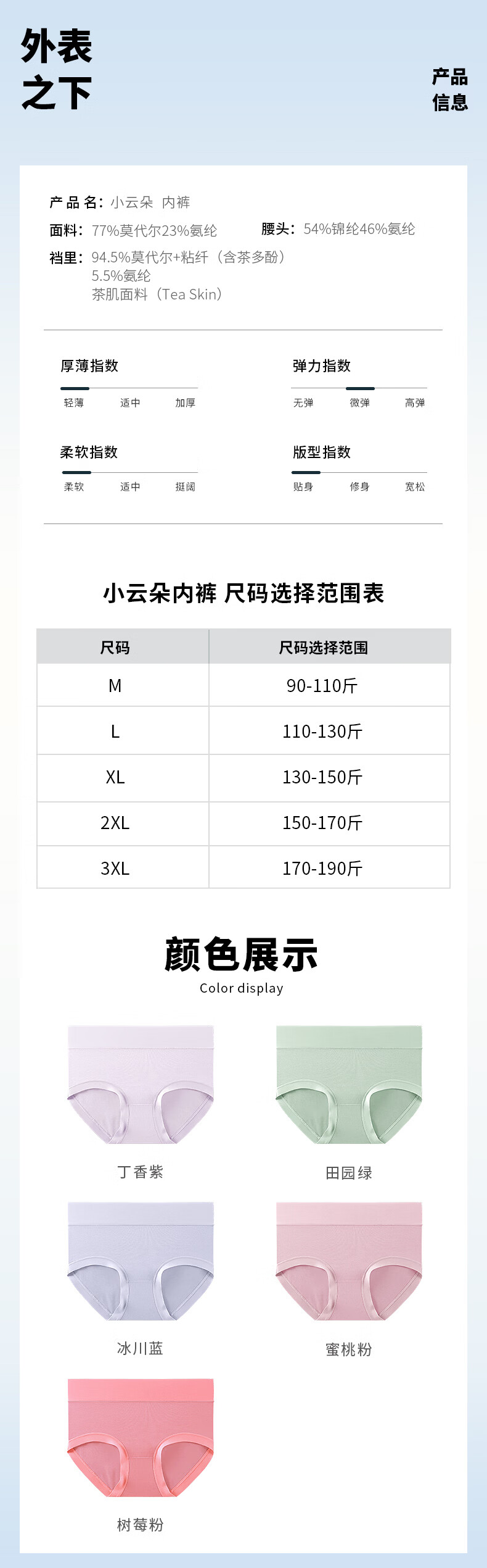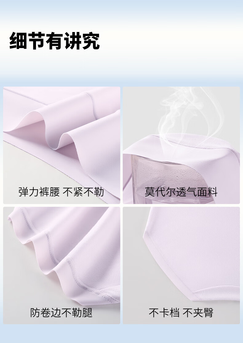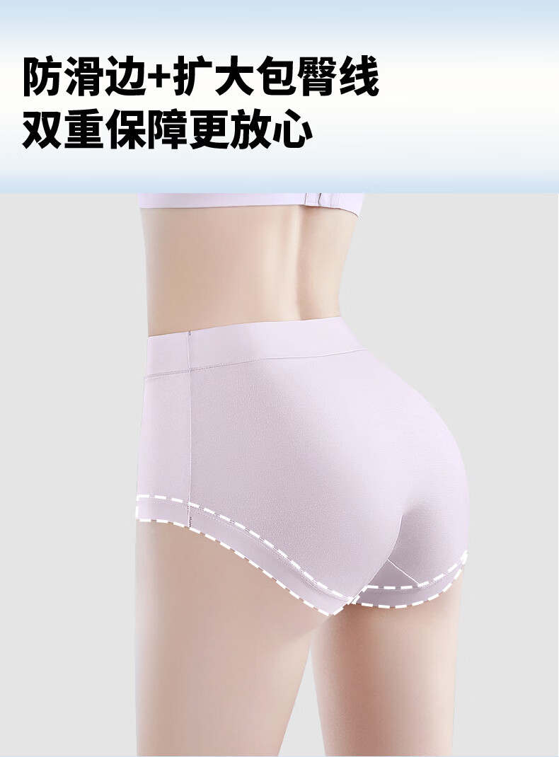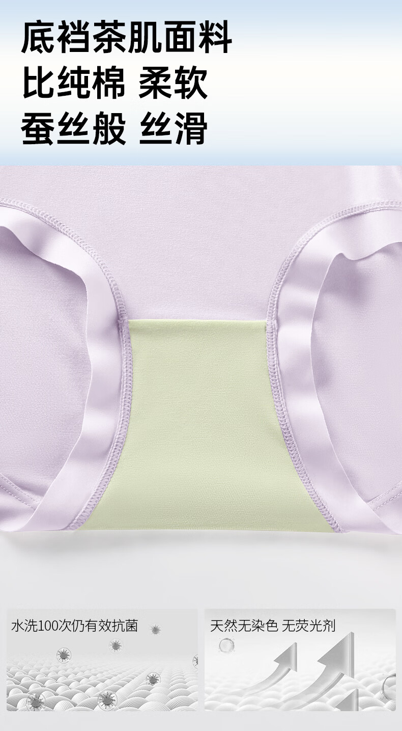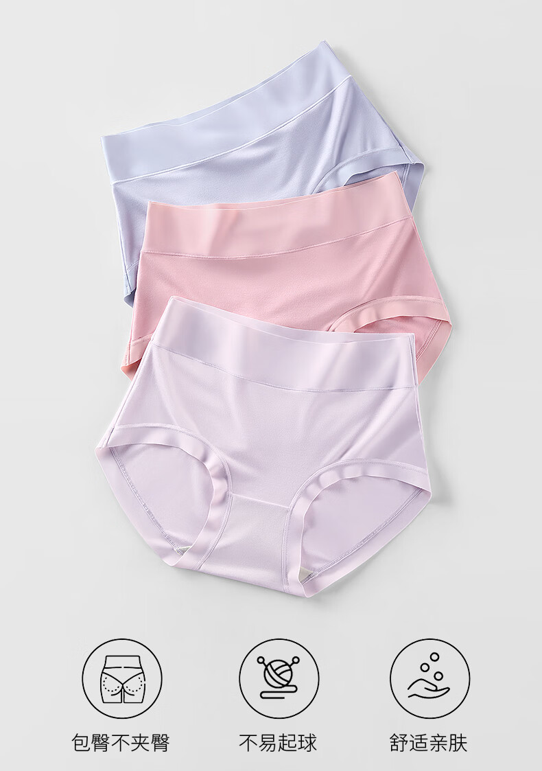 润微3条装内裤女茶肌10A抑菌莫代尔免洗无痕舒适不夹臀大码三角裤 冰川蓝+丁香紫+蜜桃粉 M (80-105斤)