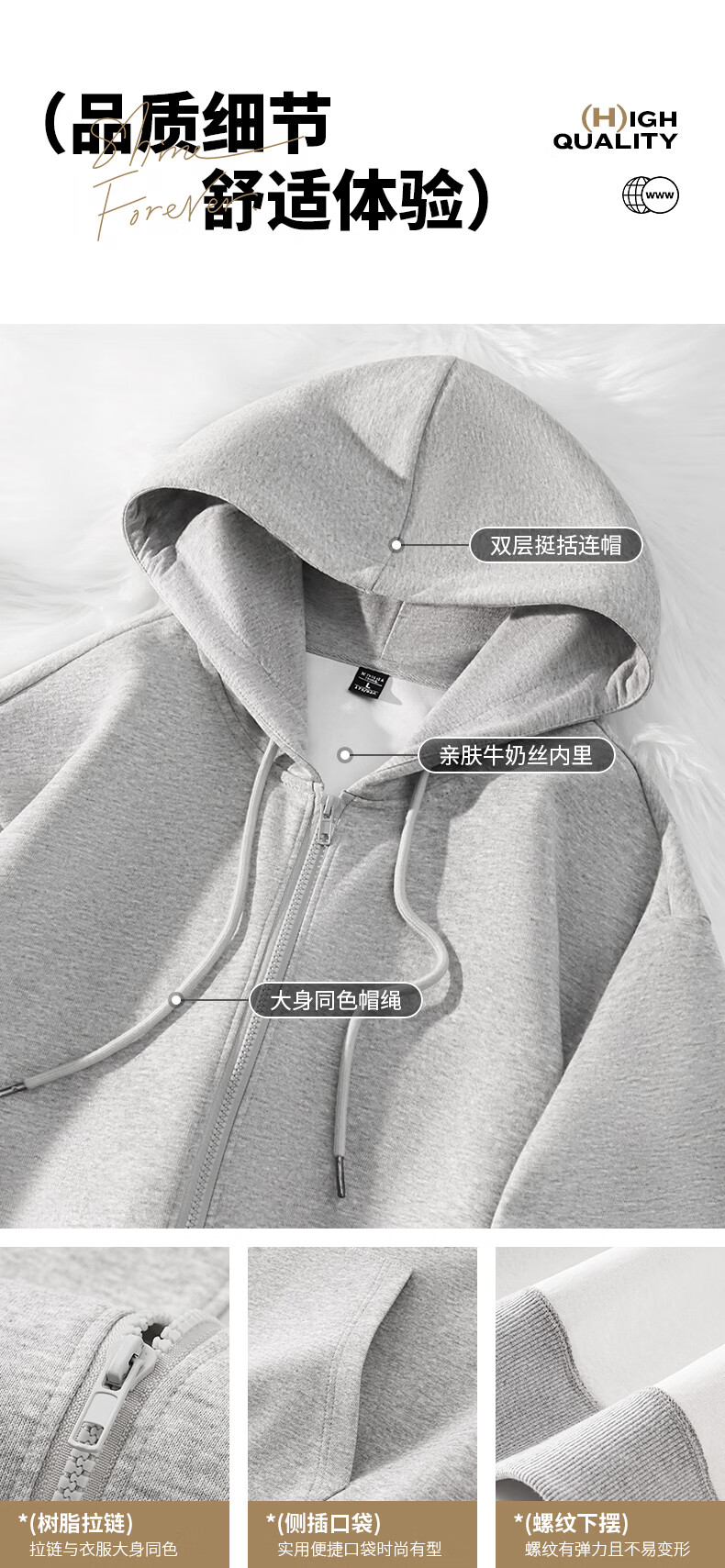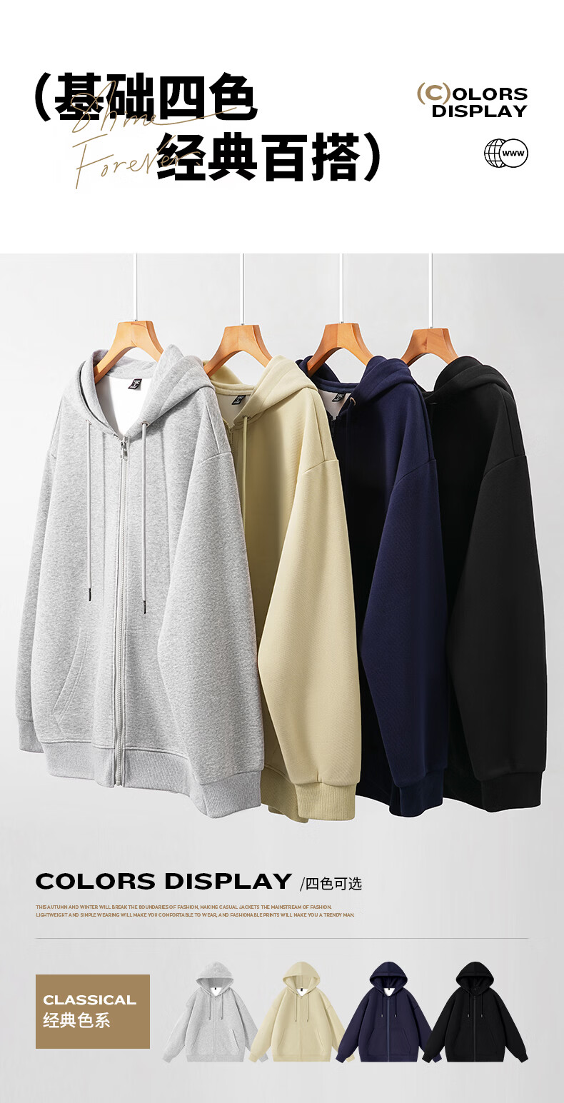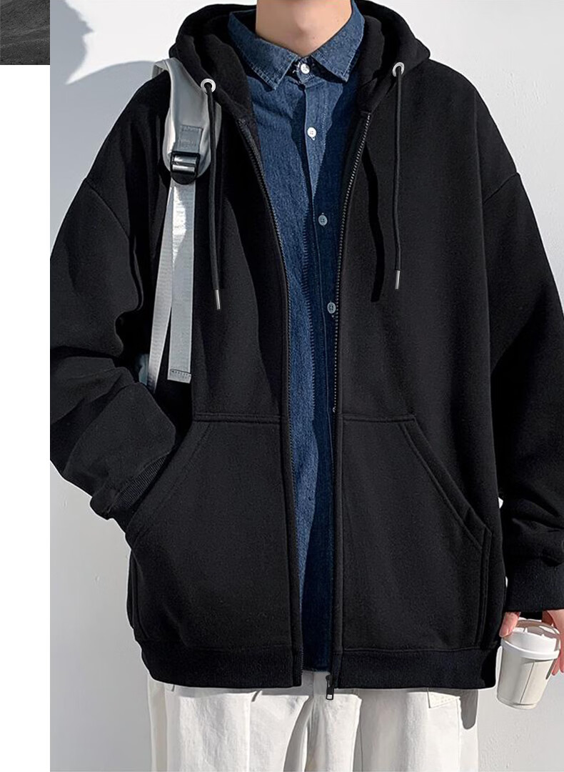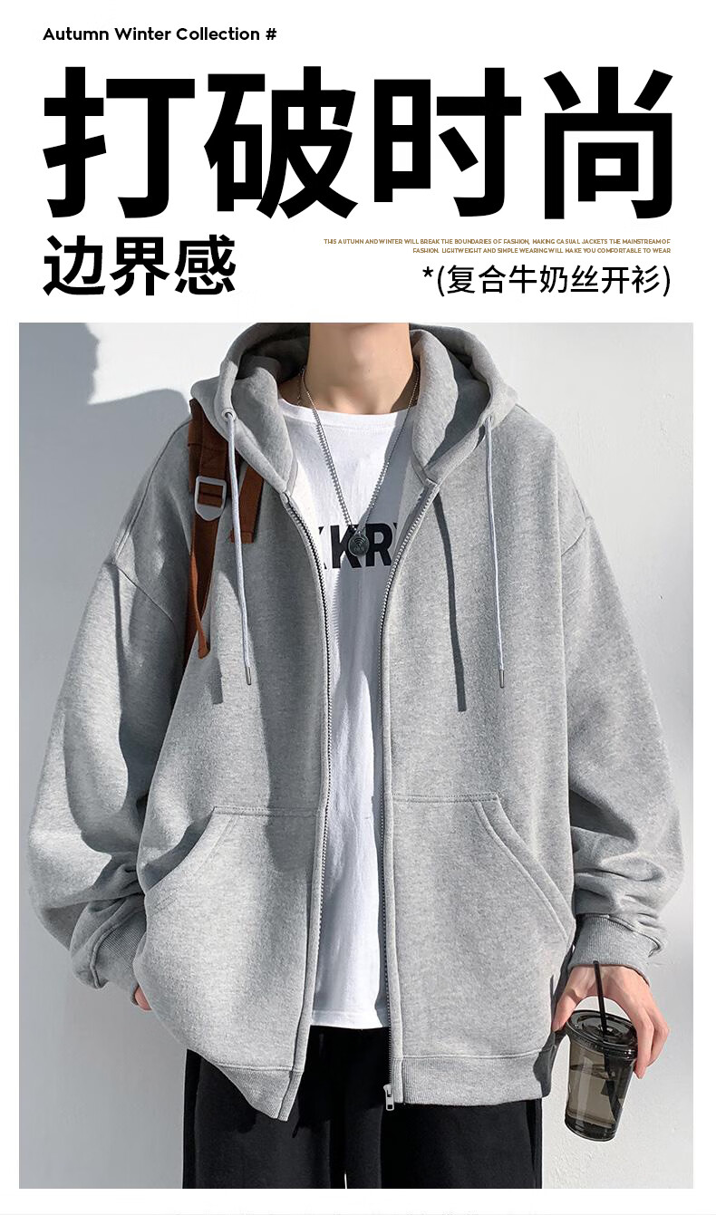 真维斯(Jeanswest)开衫连帽卫衣男春秋新款青少年重磅外套男装拉链上衣男士休闲夹克 杏色 纯色 M