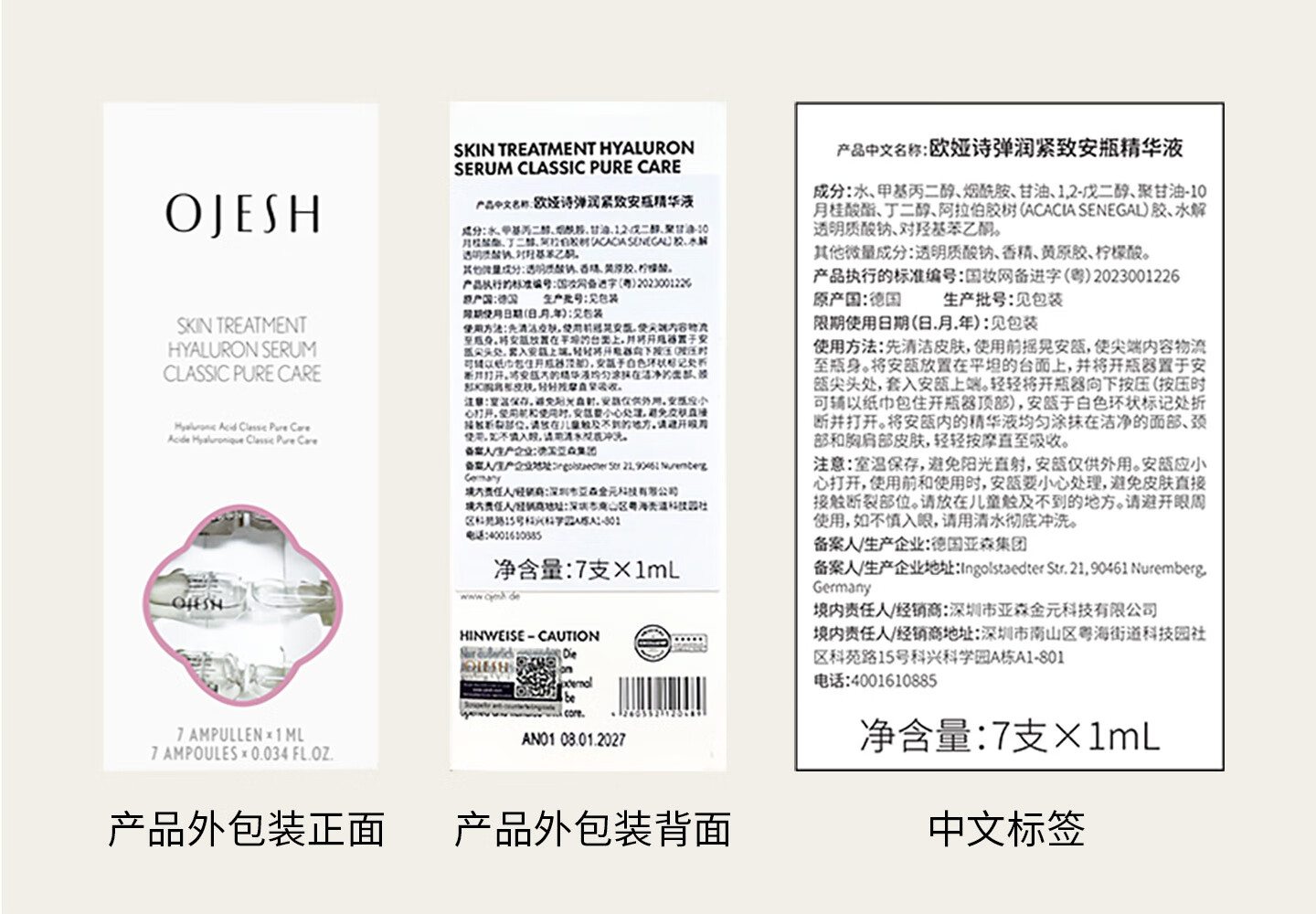 欧娅诗(OJESH)德国进口光感焕亮烟酰胺3D玻尿酸精华液弹润紧致次抛安瓶0.6PLUS