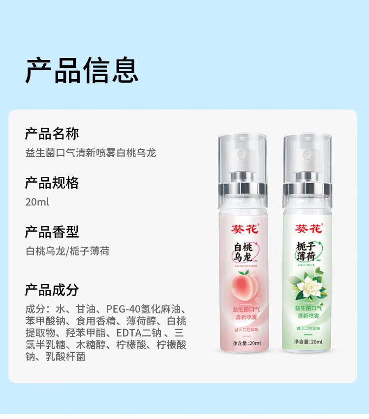 葵花口喷口腔清新剂喷雾口臭异味男女持久留香接吻神器 【全家适用】白桃乌龙2+栀子薄荷2
