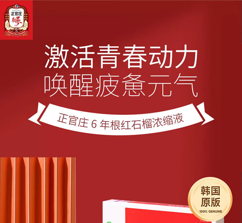 正官庄6年根高丽参人参补气血元气饮红石榴汁液饮品营养品年货节礼盒 红参石榴 30条*2盒 【效期到26年4月份】