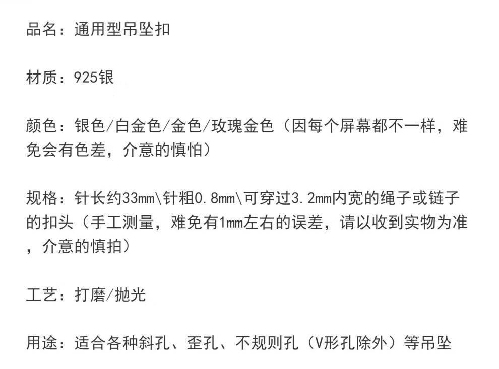 吊坠银扣头加厚歪斜孔翡翠S925扣平安扣夹扣玉坠挂件卡 白金色