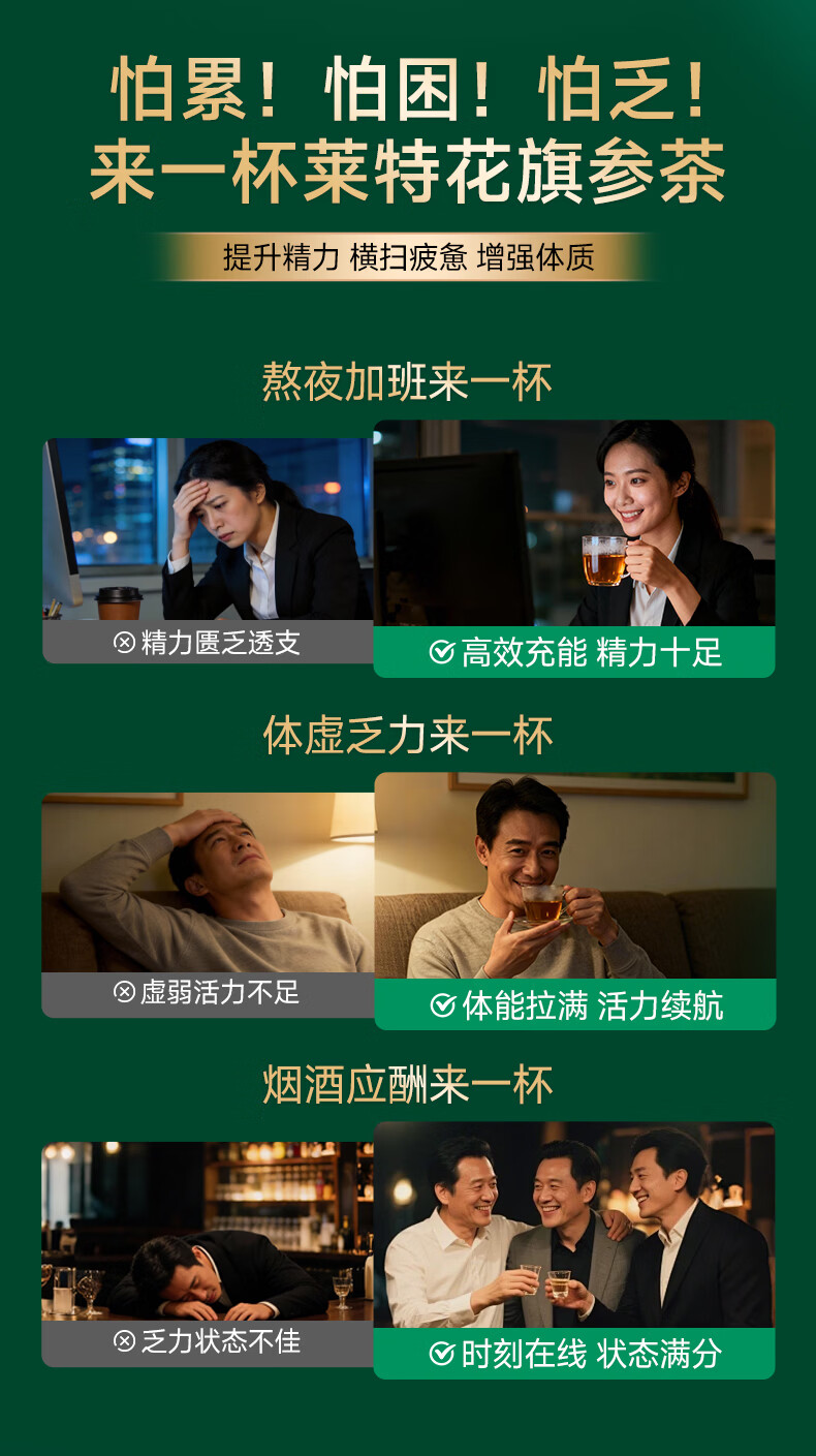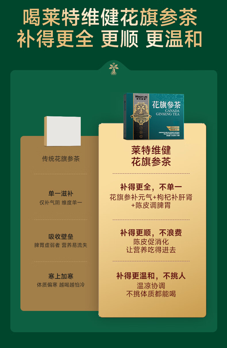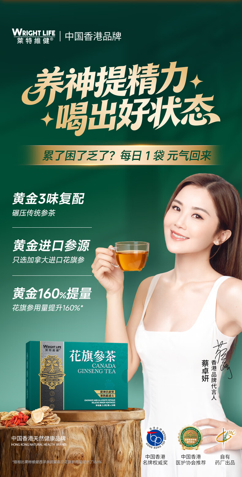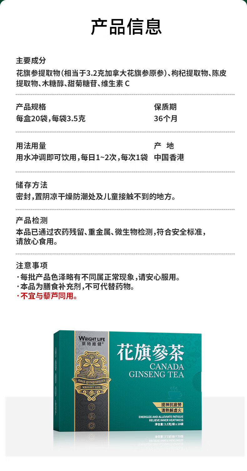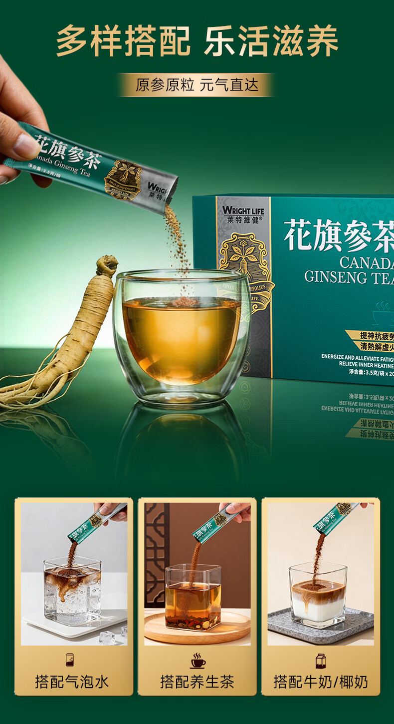 萊特維健(WRIGHT LIFE)花旗参茶3.2g西洋参人参皂苷抗疲劳提升免疫力送礼自用鹰同款牌 【男人加油站】 20袋*3盒