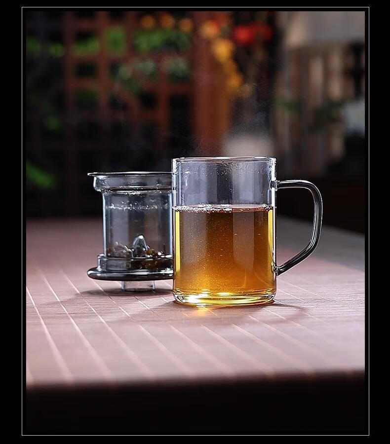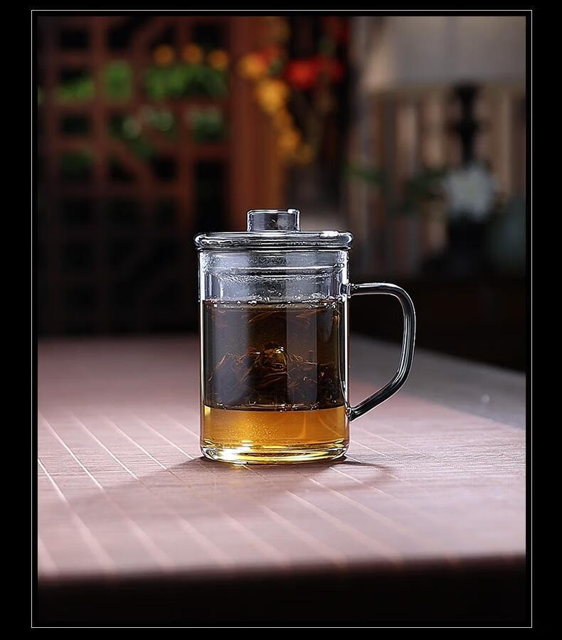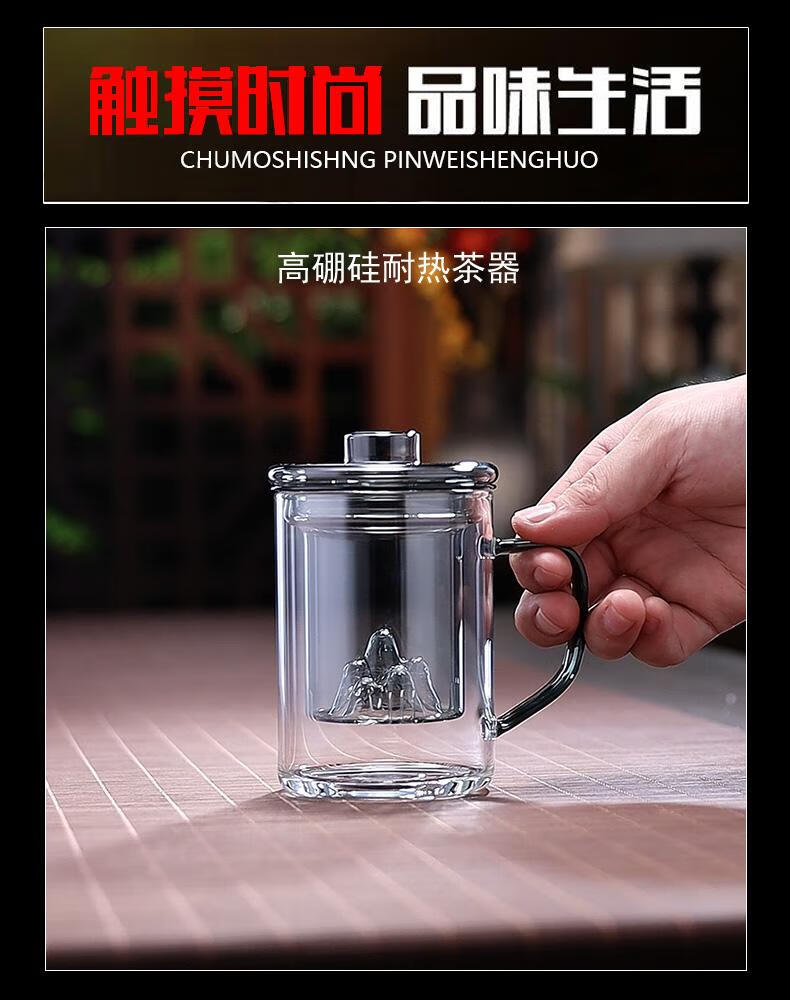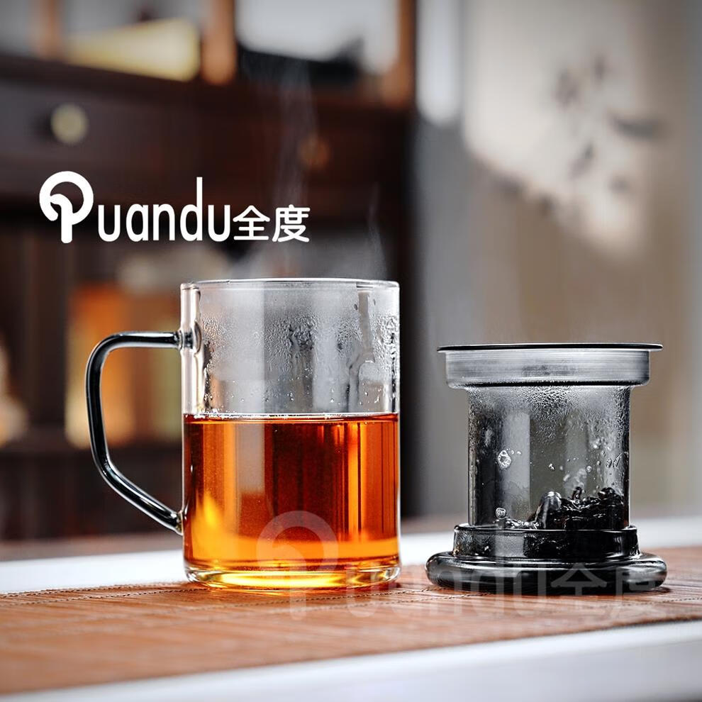 全度高硼硅耐热玻璃加厚茶杯办公室茶水分离三件式泡茶杯家用水杯 观山茶漏三件杯【钮盖】 400ml 1只