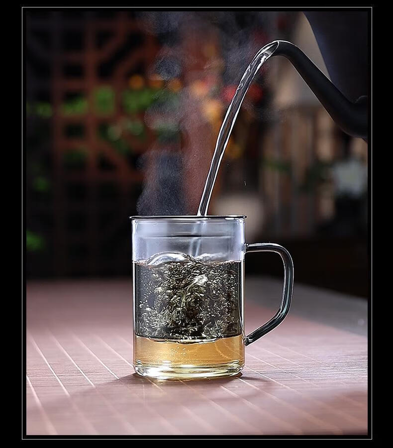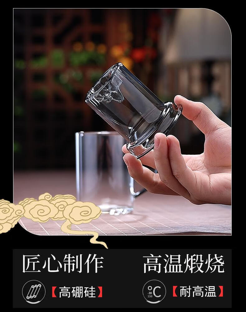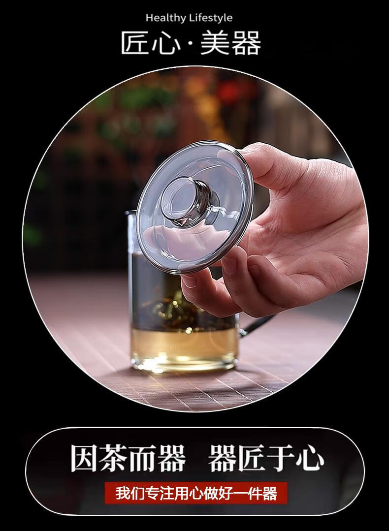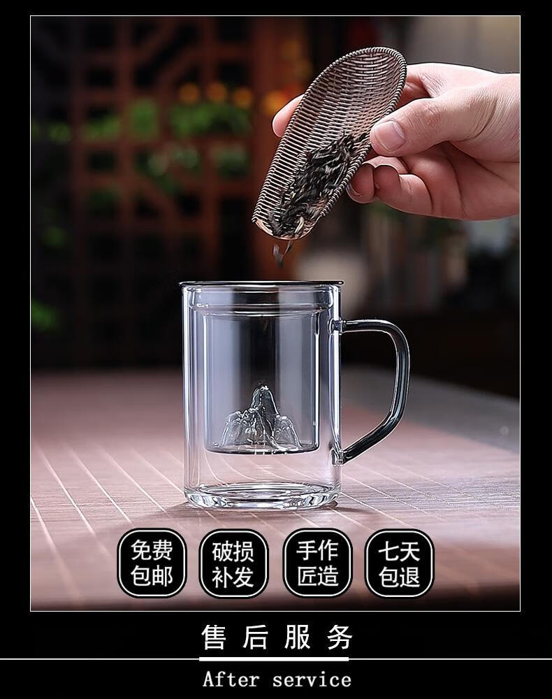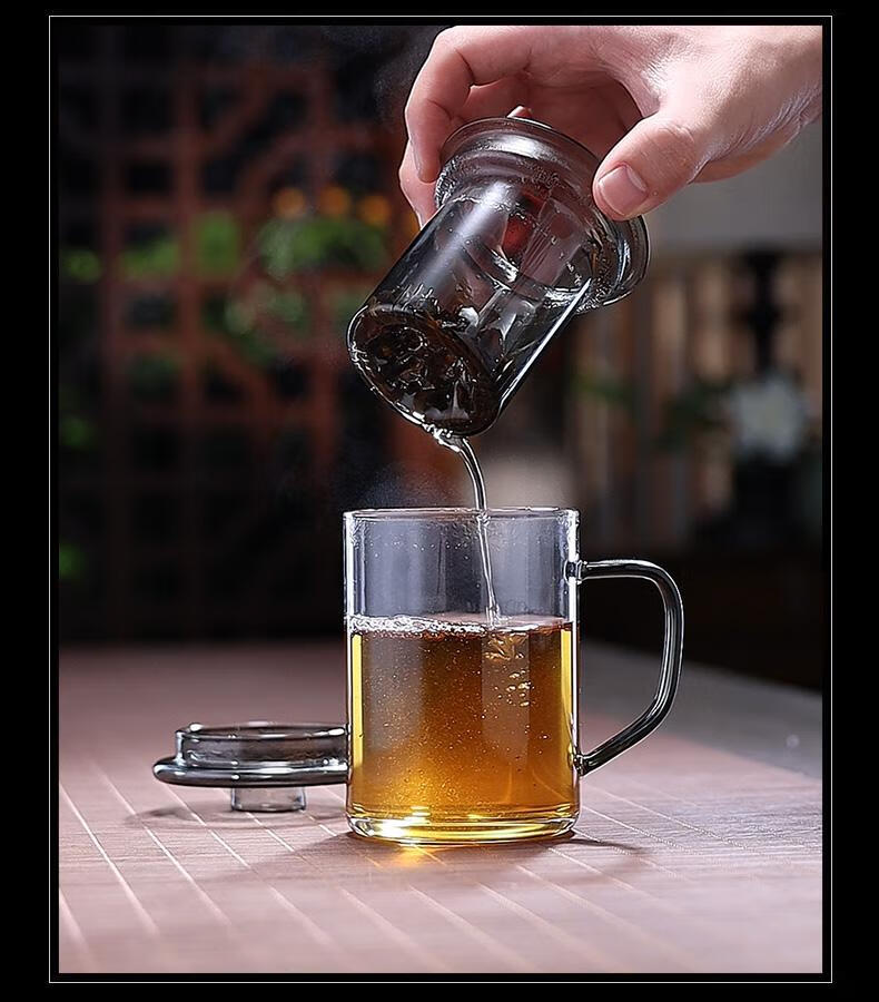 全度高硼硅耐热玻璃加厚茶杯办公室茶水分离三件式泡茶杯家用水杯 观山茶漏三件杯【钮盖】 400ml 1只
