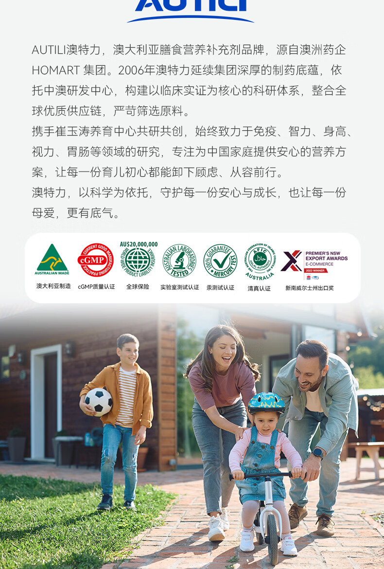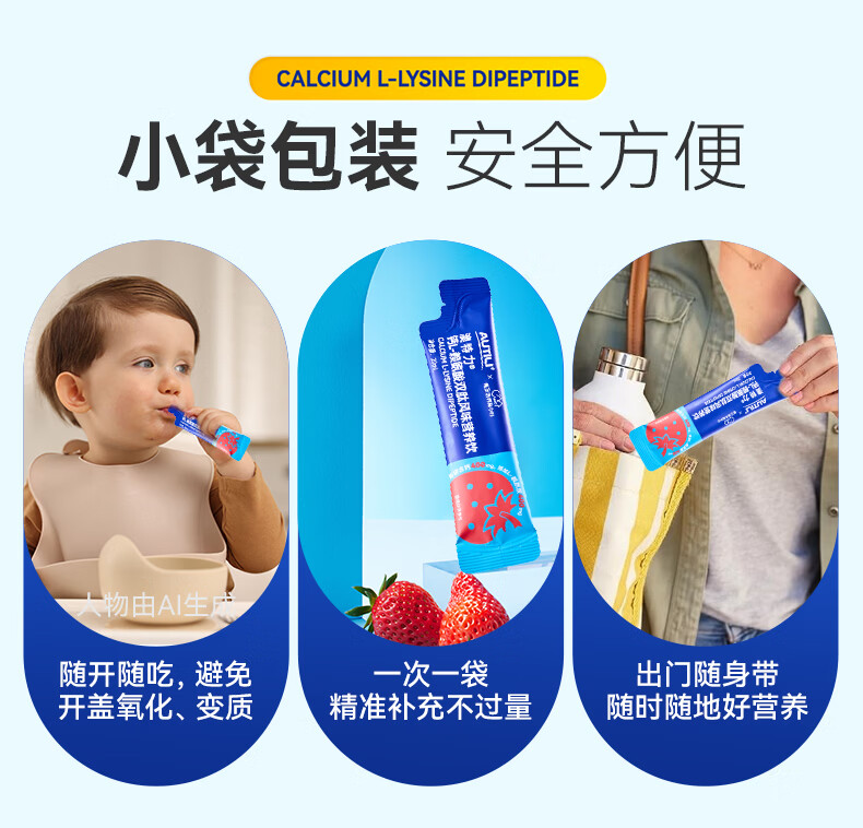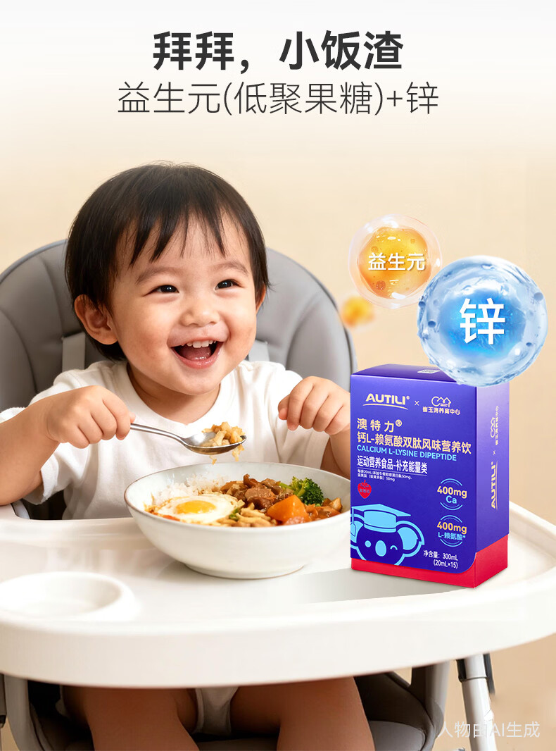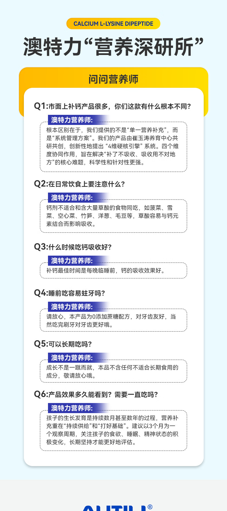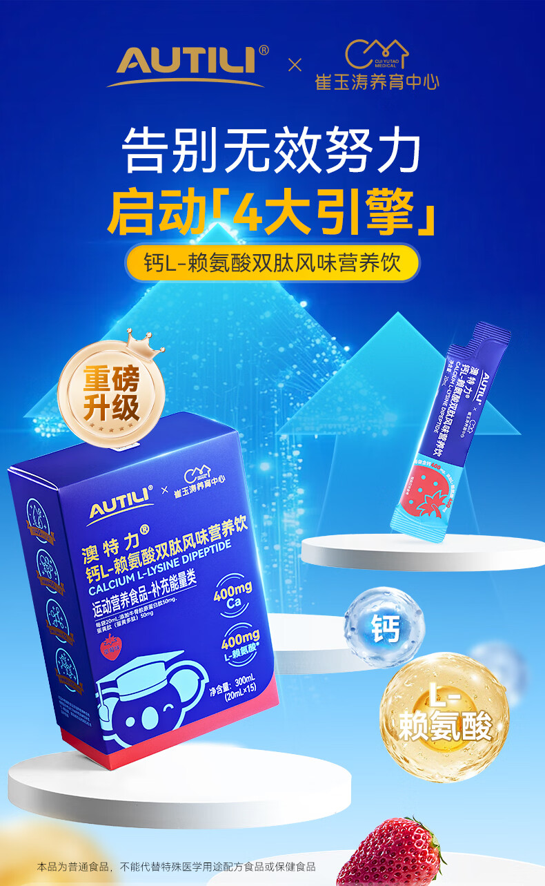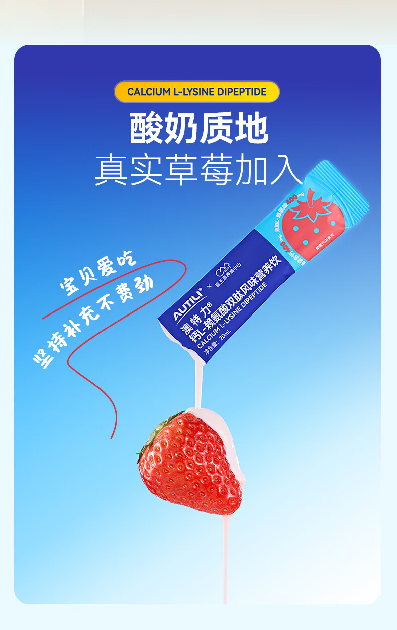 AUTILI澳特力【崔玉涛团队亲研】钙L-赖氨酸营养饮儿童成长液体钙春季补钙 【全程呵护】赖氨酸钙 15袋*6盒
