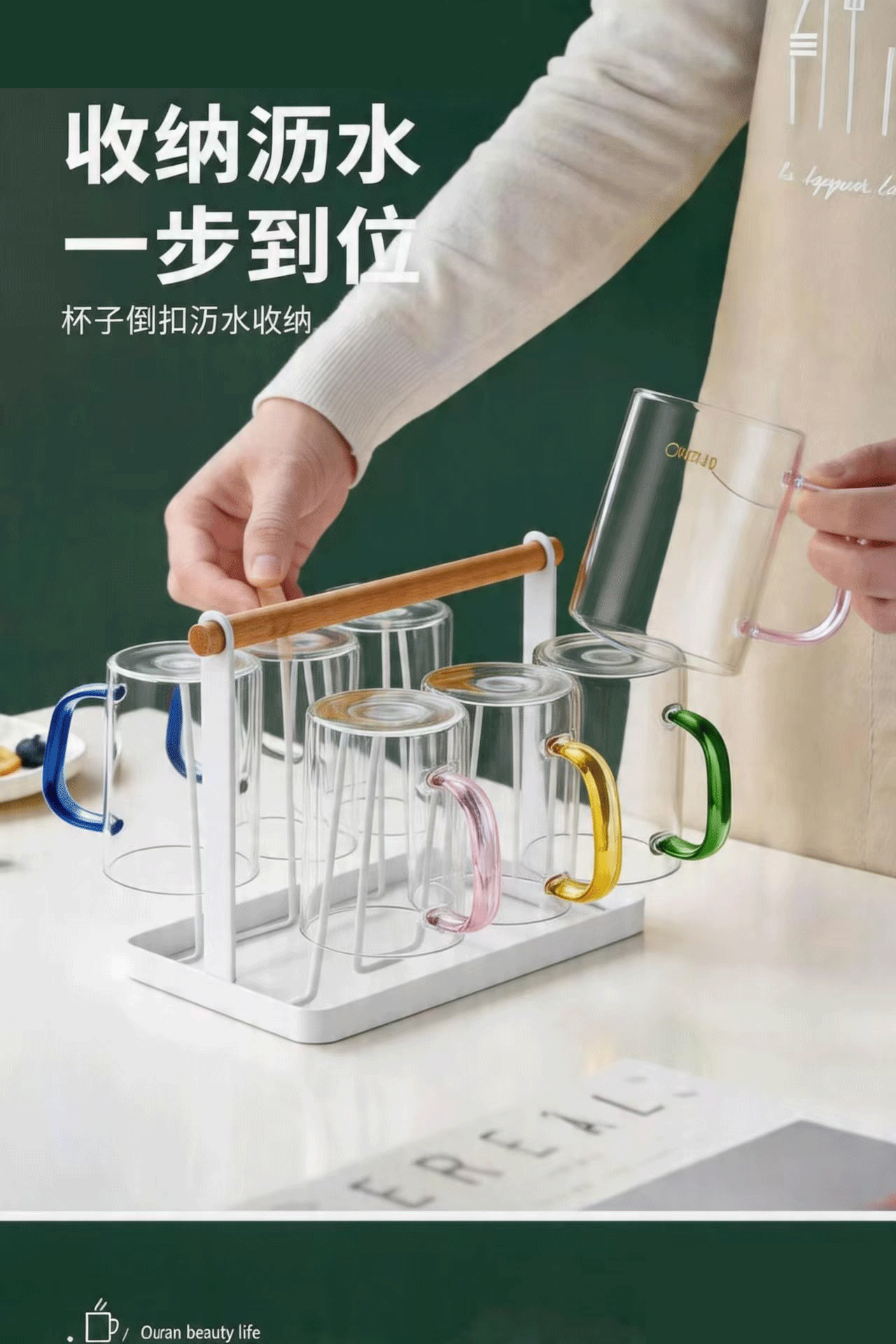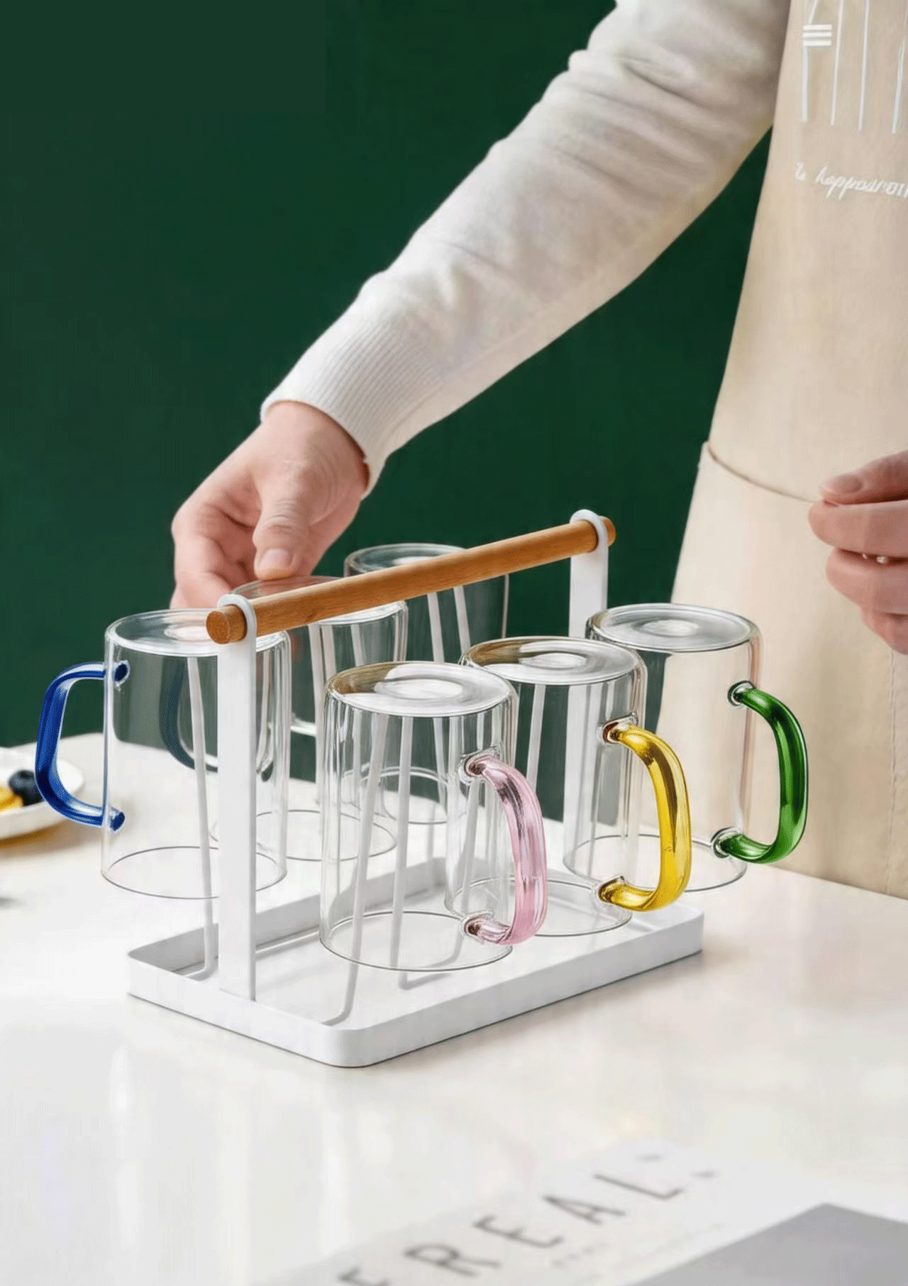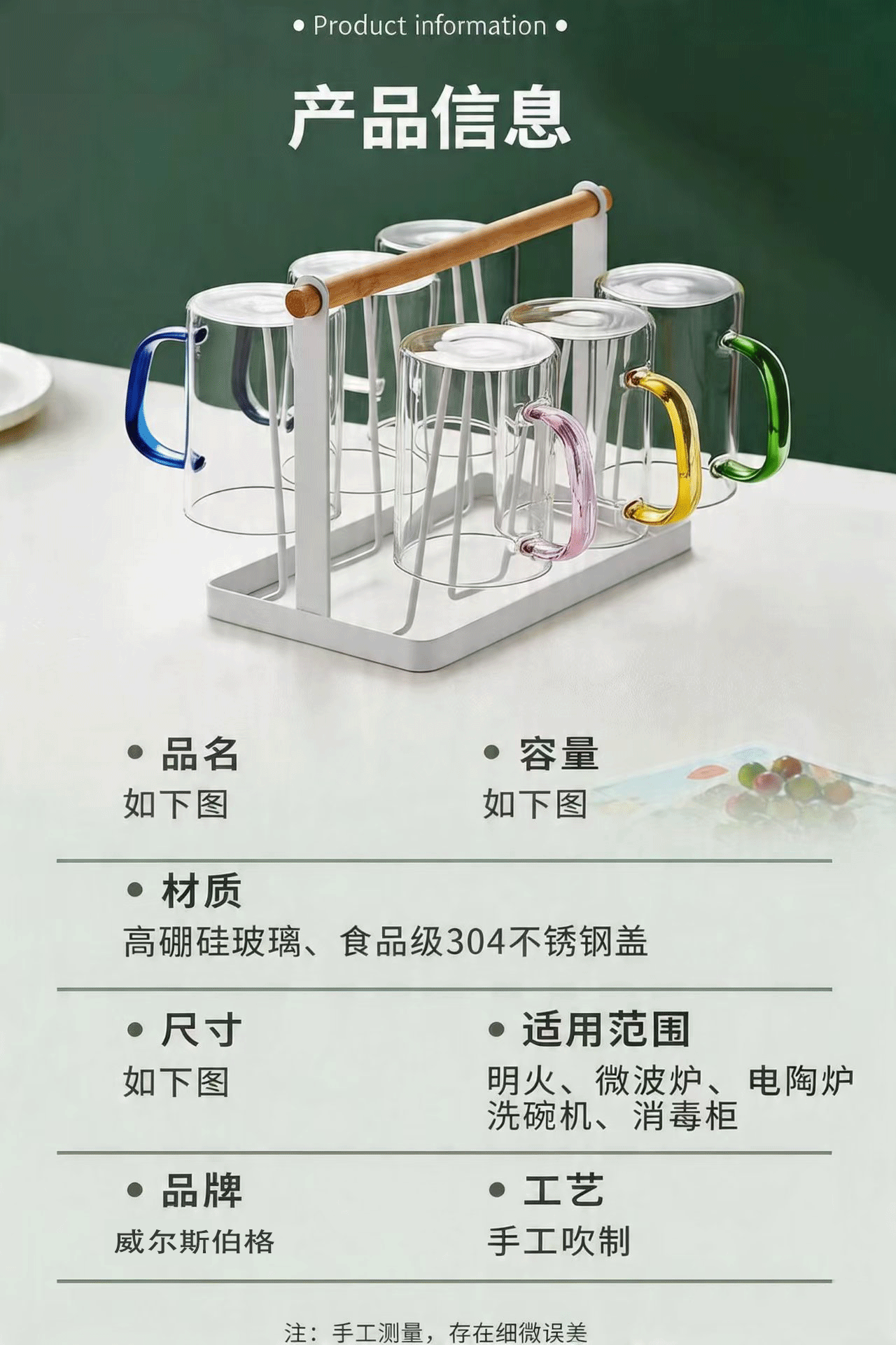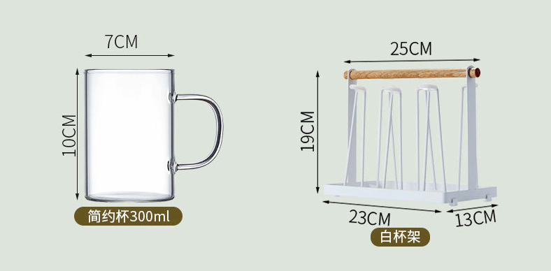 威尔斯伯格玻璃茶水杯子高颜值男女泡茶专用杯新款高硼硅混色款水杯套装 耐热六色款*6只+木柄杯架
