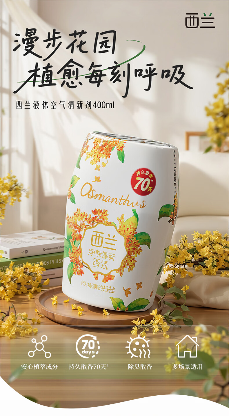 西兰浴室香氛丹桂香400ml液体空气清新剂室内香薰卫生间厕所除臭留香