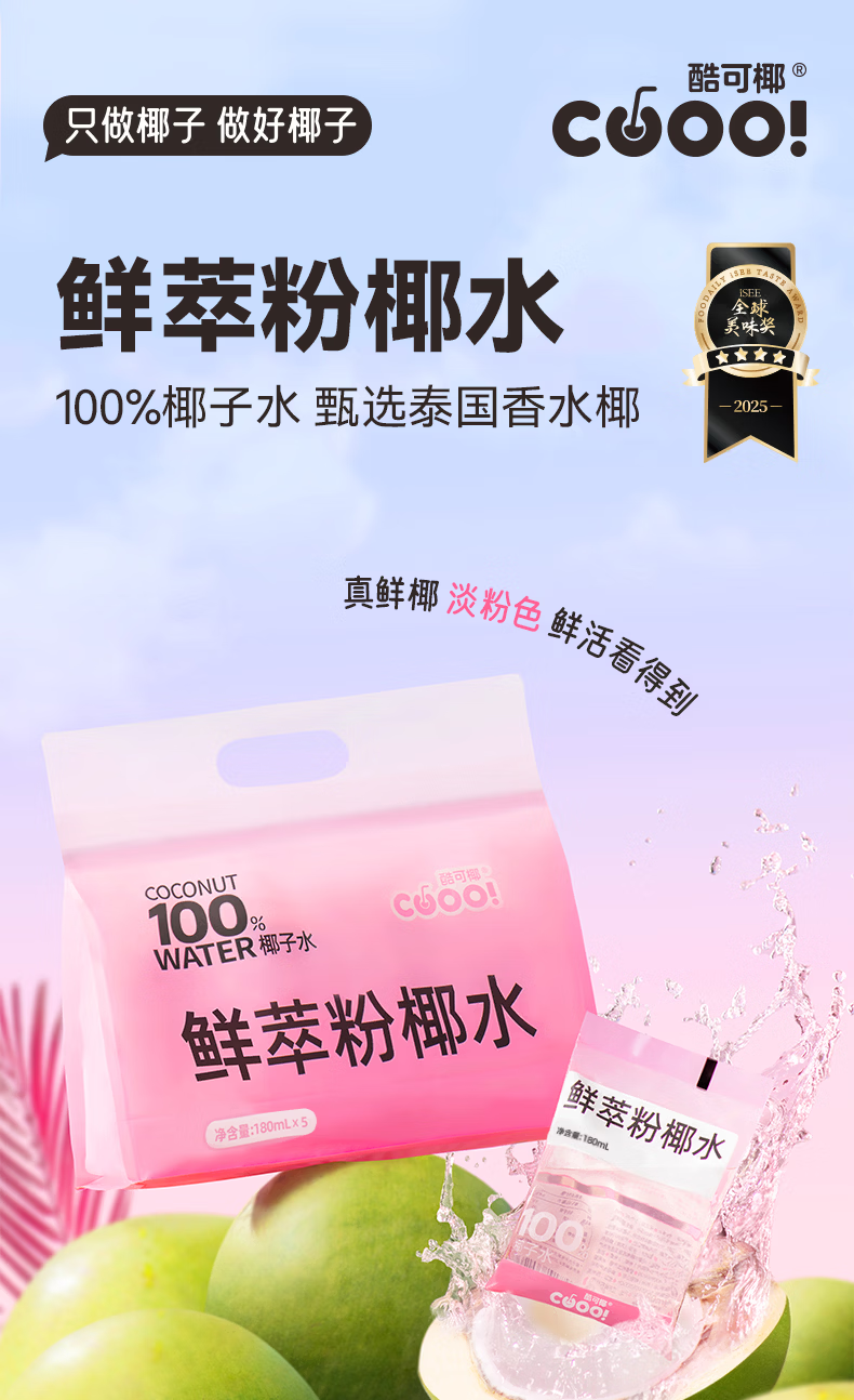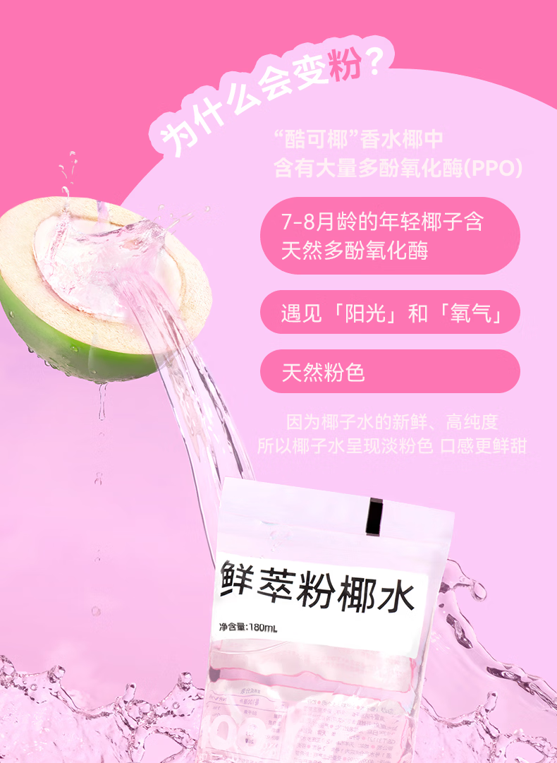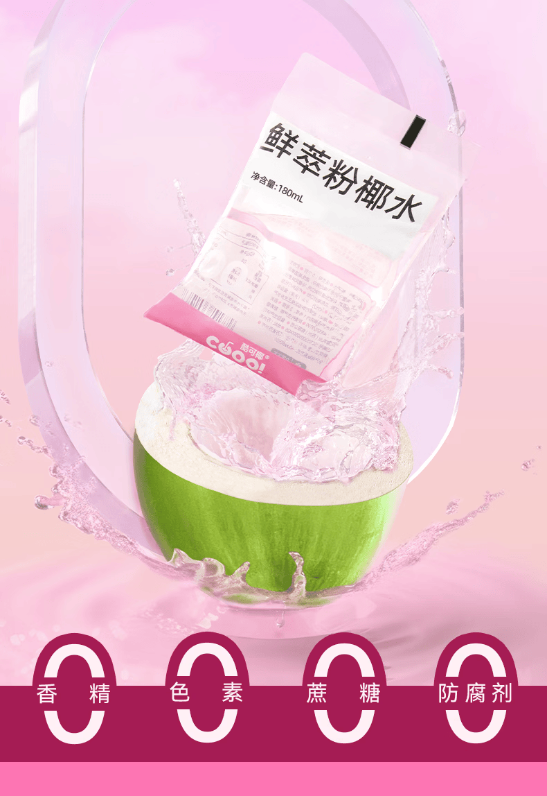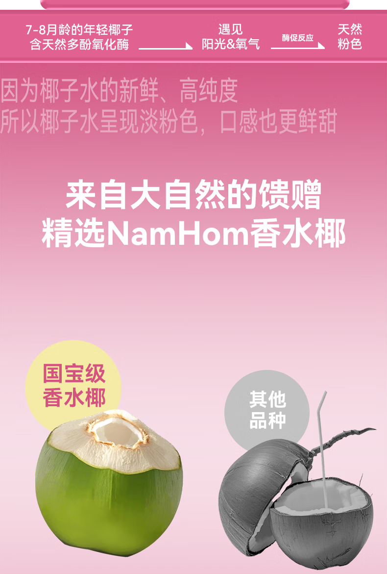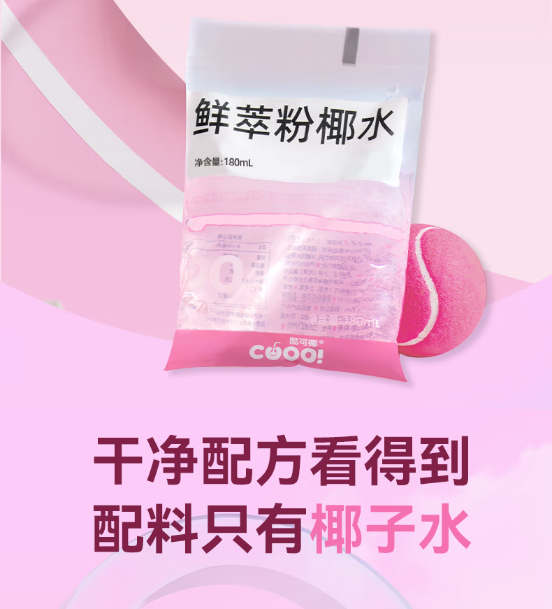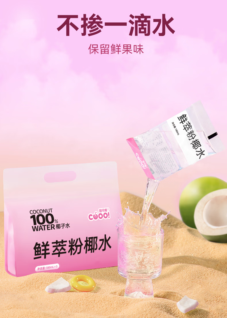 酷可椰100%粉红椰子水NFC非浓缩还原0添加色素电解质水补水聚餐团建饮品 【20袋装】100%粉红椰子水180ml/袋