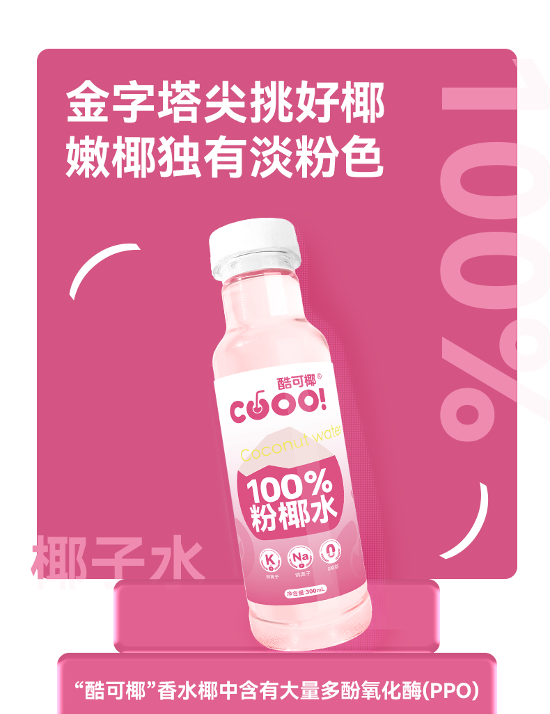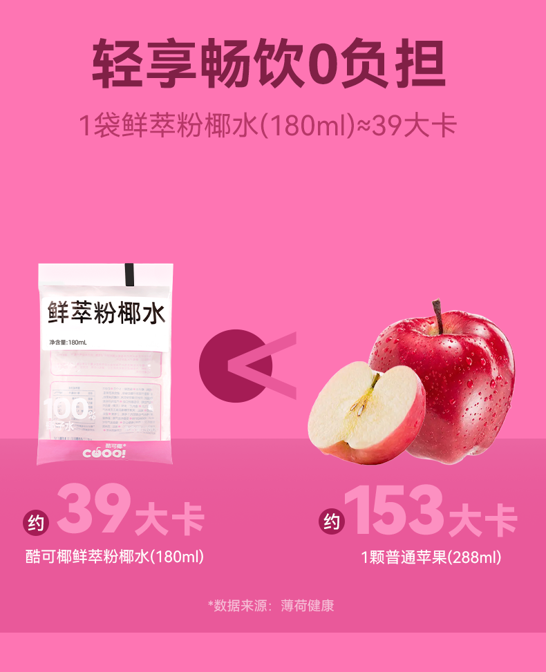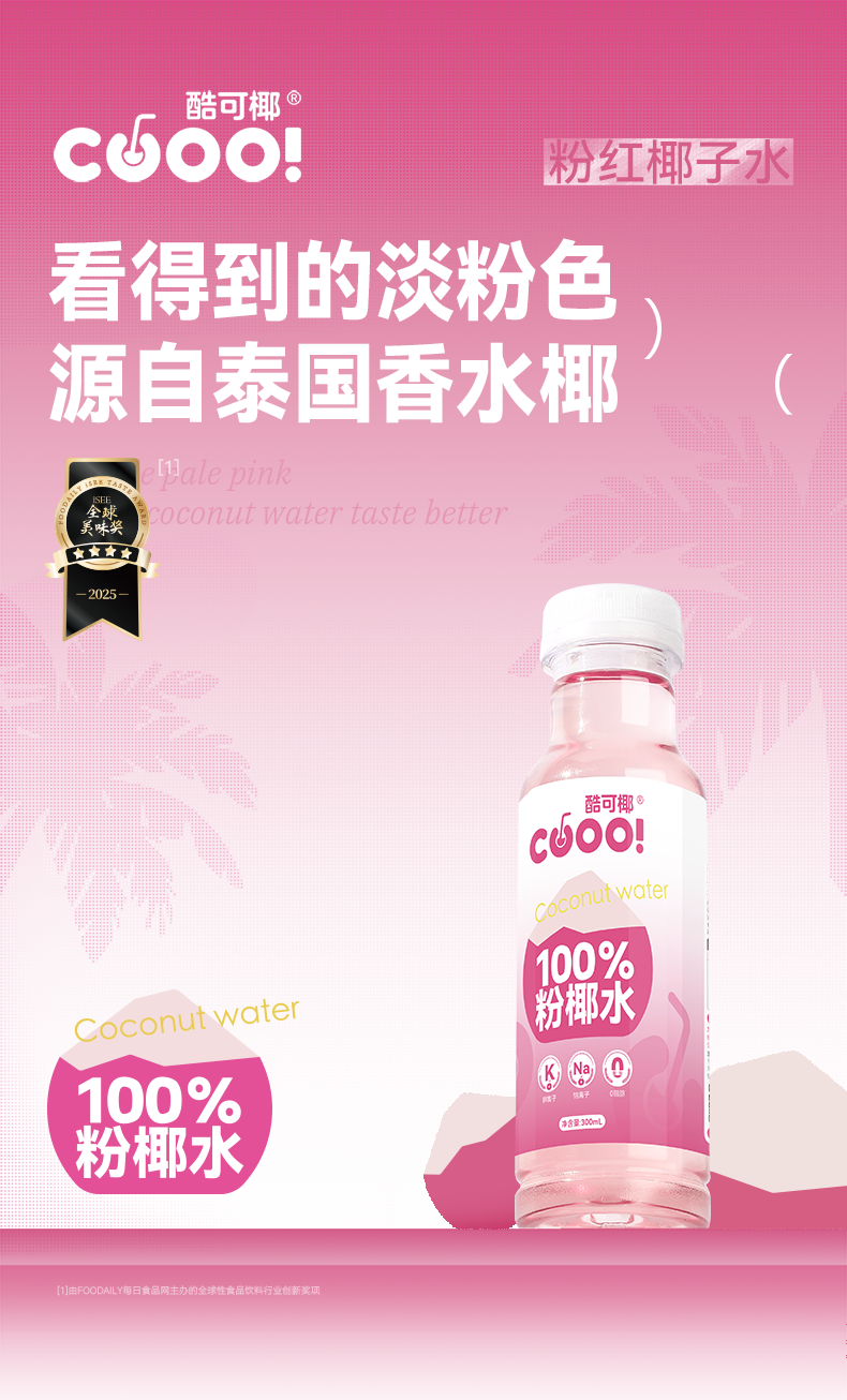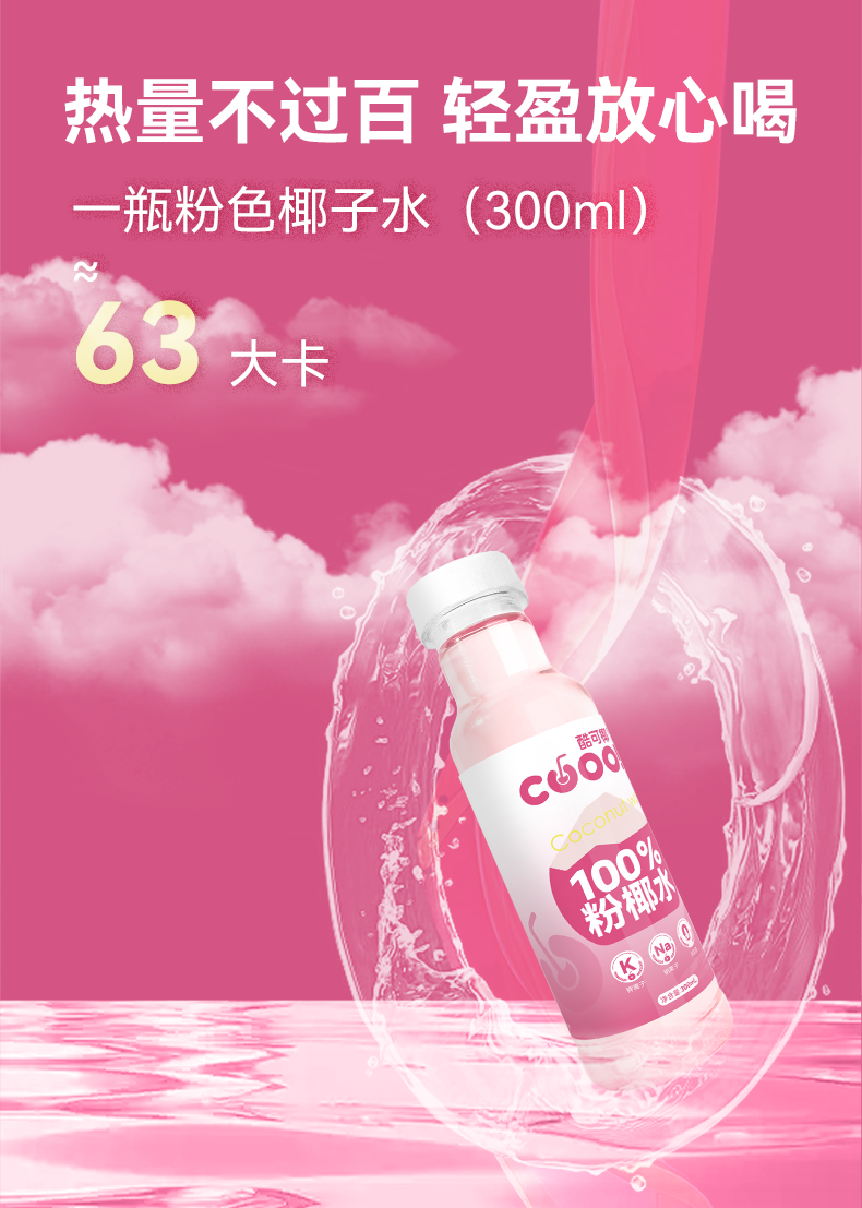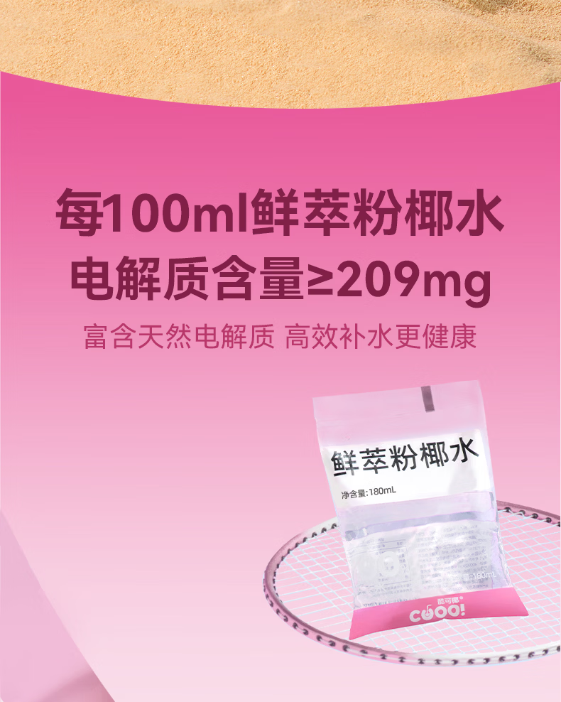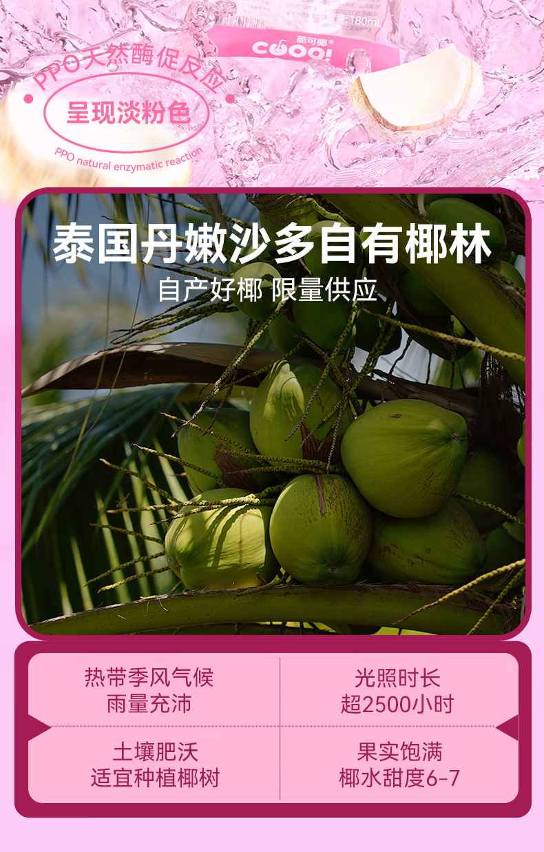 酷可椰100%粉红椰子水NFC非浓缩还原0添加色素电解质水补水聚餐团建饮品 【20袋装】100%粉红椰子水180ml/袋